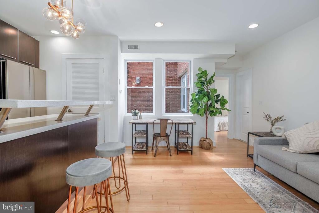 Sleek one-bedroom condo with ultra-low condo fee just off H Street! 1409 G St NE is a Deco-inspired, boutique building nestled along a row of historic row homes with classic, Capitol Hill brick sidewalks and vibes. Step inside and find Unit #4 just beyond the lobby - only a few steps up makes for easy in-and-out with groceries. The unit itself features an open floor plan with bamboo floors and a modern kitchen with quartz countertops and brand new appliances. The bedroom here is LARGE. Enjoy a king-sized bed and/or utilize two large wardrobe cabinets that convey, adding to the already ample closet space. In so many ways, the location is what makes this unit shine. Take the new, protected, Florida Ave bike lanes to reach Union Market in a jiffy. Head down 14th Street and North Carolina Avenue to reach Lincoln Park and Eastern Market in just over a mile. And head east to find yourself at the proposed new home of the Washington Commanders and all the development they will bring. Stay active with the Arboretum, Anacostia Riverfront Trail, Kingman Dog Park, Langston Golf Course, and Rosedale Pool all close by. Take easily accessible Metro, the Streetcar, Amtrak, or 295 to get where you're going. This is city living, simplified. You don't want to miss the opportunity to make 1409 G St NE #4 your home!