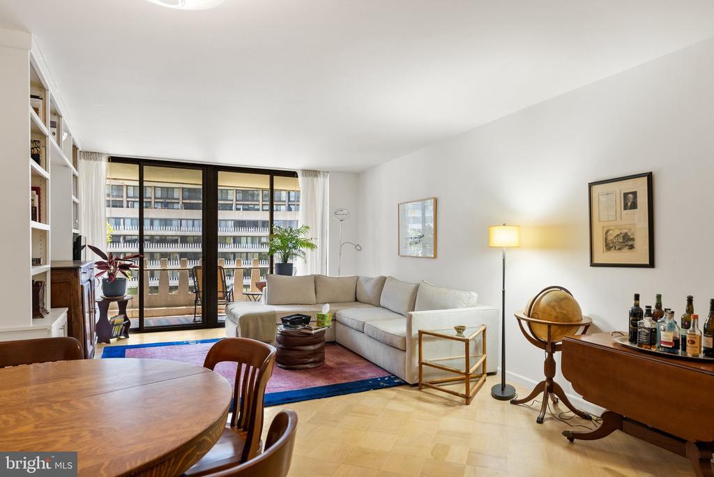One bedroom 932 sq ft with quiet courtyard and tree vista. Wide balcony and floor to ceiling windows across entire interior. Chef's kitchen with stone counters and lots of cabinetry. Custom built-ins. Private storage room included. One underground garage space included!! Fee includes property taxes, utilities, maintenance of HVAC, basic cable, internet, and parking. Watergate South amenities include 24-hour front desk & doorman service, outdoor saltwater pool & grill, newly renovated fitness center, newly renovated community room, beautifully landscaped gardens, roof terrace, dog spa room, plus on-site shops & restaurants. Walk to Foggy Bottom Metro, Kennedy Center, Whole Foods, and Georgetown Waterfront. High walk score near shopping, restaurants, Watergate Hotel, and many more conveniences.