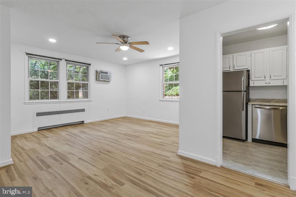 Remodeled Studio Apartment that faces scenic, quiet, courtyard. Has all new stainless steel appliances, ceiling fan and light, laminate floors, renovated bathroom, recess lighting, and freshly painted interior. The laundry room is next to the unit with a semi-private entrance/exit to beautiful courtyard. Has the lowest Condo fee in the area, which includes heat. Condo fees for other studio units are $100 to $500 higher without the inclusion of heat. Ideal for renting or the 3 to 4 day a week teleworker. Idyllic neighborhood next to Archbold Park and in between Georgetown and American University.
