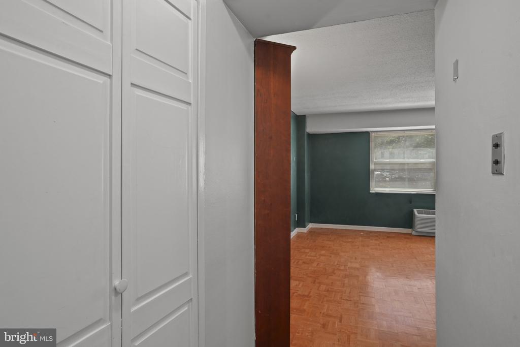 Welcome to #420 at the Saxony Cooperative—a light-filled studio tucked away on a quiet street in one of DC’s most vibrant neighborhoods. This open concept studio allows for unlimited possibilities to arrange your furniture. With nearly 450 square feet of well-designed space, this unit features classic parquet floors, a spacious walk-in closet, and a generous kitchen with a wall of cabinetry for ample storage and countertop space. The kitchen features a stainless steel gas range, a dishwasher and additional space for storage. The open concept kitchen and living room space allows for multiple design opportunities to create a comfortable layout and cozy living space. Large windows frame tranquil views of greenery and relaxing views of the landscaping in the front courtyard. The Saxony is a full-service building offering front desk staff with secured building access, a fitness room, a community room, bike storage, and shared laundry facilities. One of the standout features is the expansive, recently renovated rooftop, where residents enjoy breathtaking views of Rock Creek Park, the National Cathedral, and spectacular sunsets—an ideal setting to relax or entertain. The building is known for its warm, social community and beautifully landscaped grounds that feel like a peaceful retreat, all while being just steps from Rock Creek Park, jogging trails, the National Zoo, and an endless array of shops, restaurants, and the Red Line Metro. Parking is available for $200 / month through the building.