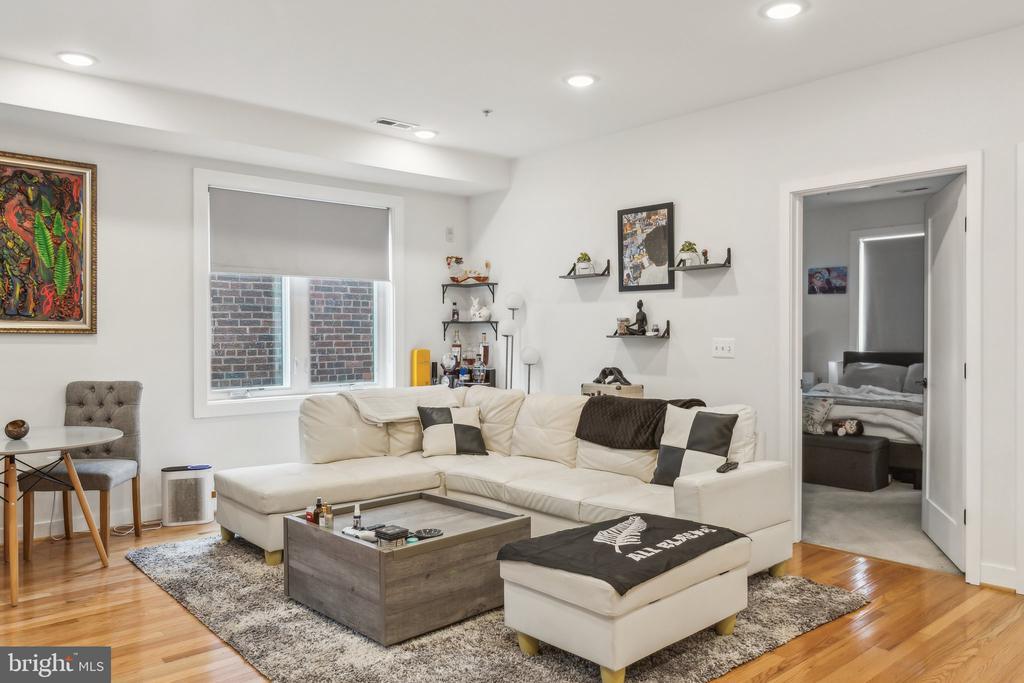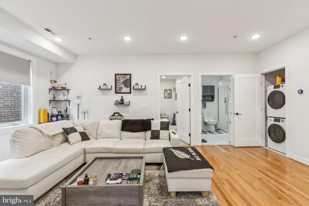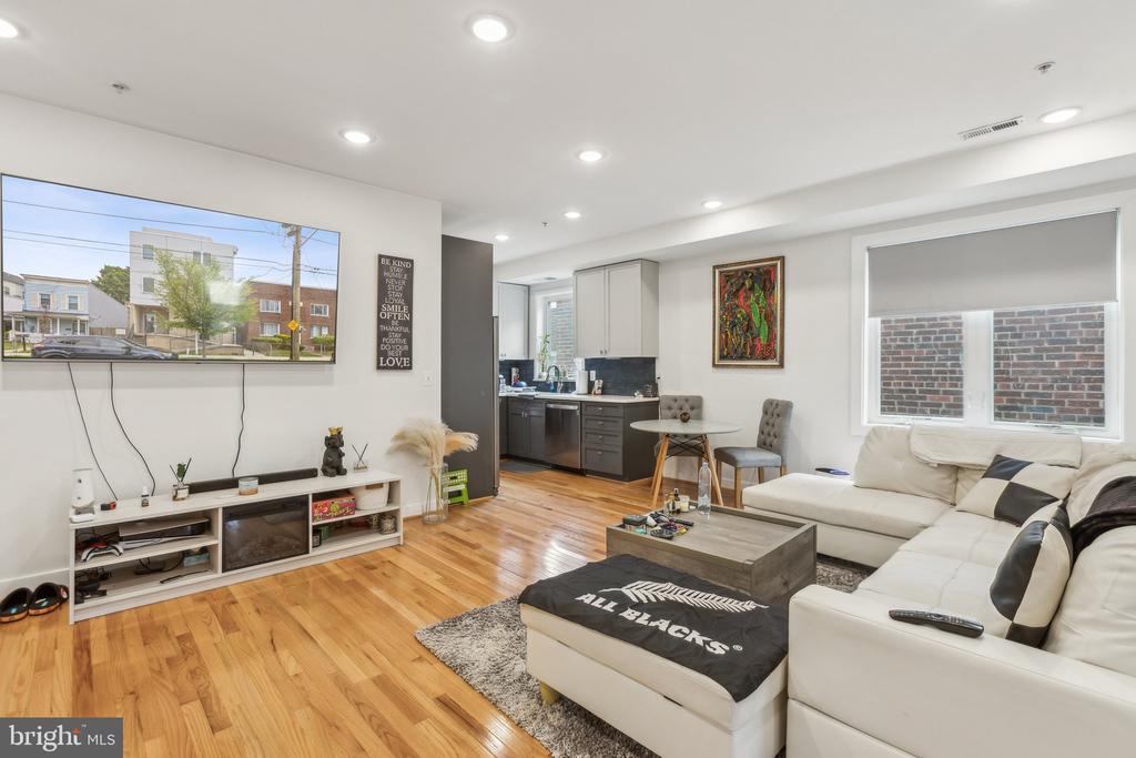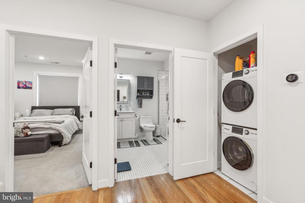 Welcome to this thoughtfully designed 1-bedroom, 1-bathroom condo nestled in a secure, elevator-accessible building constructed in 2022. The open floor plan is accentuated by 9-foot ceilings and hardwood floors, creating a spacious and inviting atmosphere. The updated kitchen features stainless steel appliances, and the large bedroom includes a walk-in closet with direct access to the modernized bathroom. Additional conveniences include an in-unit washer and dryer, as well as a dedicated storage unit. Residents enjoy access to a rooftop deck, perfect for relaxation and entertaining, along with the benefits of a well-maintained building. The location offers easy access to Anacostia Park, the Frederick Douglass National Historic Site, and the Anacostia Metro Station, providing seamless connectivity to downtown D.C. and surrounding areas. Nearby amenities include The Roost, Busboys and Poets, Trader Joe's, Safeway, and Lidl, ensuring a dynamic and convenient lifestyle. This move-in-ready condo combines modern updates with a prime location, offering an exceptional living experience in the heart of Washington, D.C.