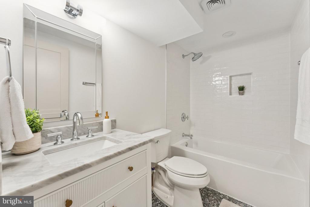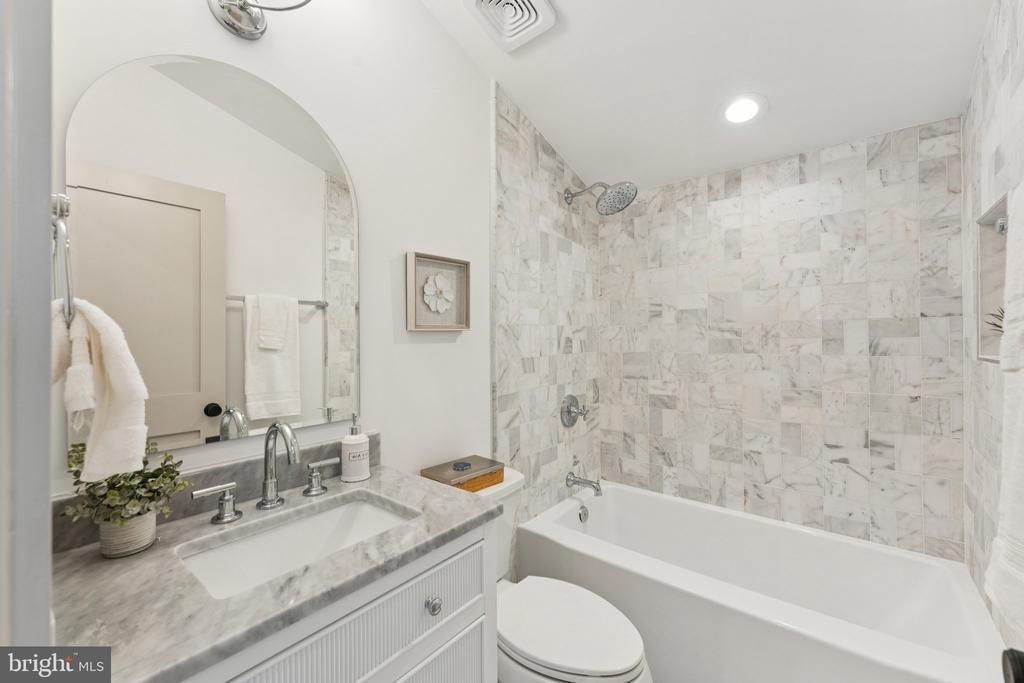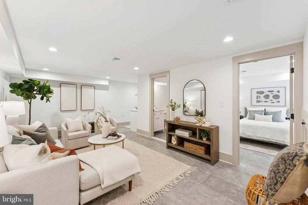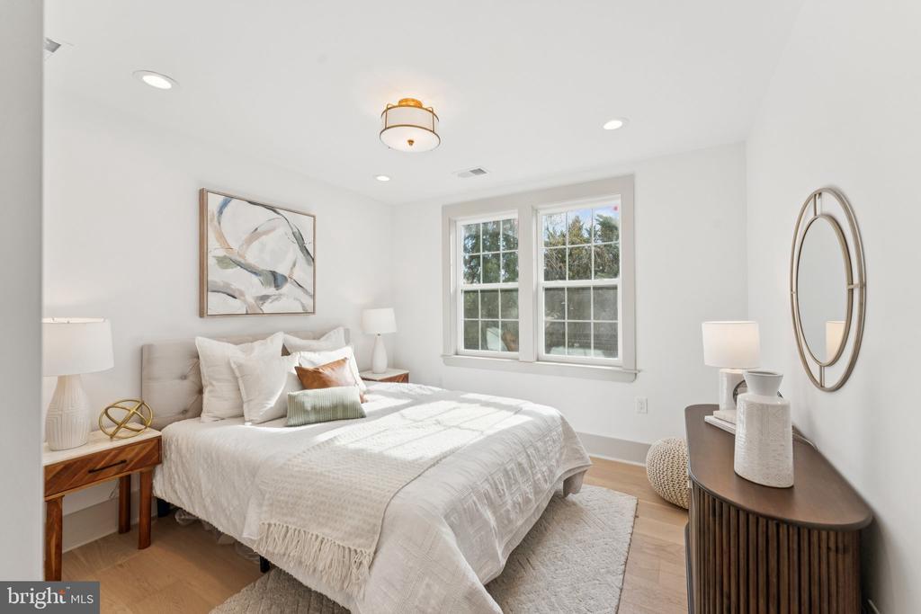 This is truly one of the most spectacular homes in Chevy Chase, DC — just half a block from the beloved Lafayette Elementary School. Dogwood Restoration has masterfully blended historic charm with modern luxury across nearly 4,000 square feet of beautifully finished space. From the moment you arrive on this manicured, tree-lined street, you’ll feel right at home. The extra-large front porch — complete with a classic porch swing — invites easy neighborly chats and quiet morning coffee moments. Inside, the main level offers an open, light-filled floor plan that’s both elegant and functional. The living room, anchored by a stunning marble fireplace, features custom built-ins that add warmth and sophistication. The dining room includes a beautiful wine bar, and the chef’s kitchen truly steals the show — with custom cabinetry, quartz countertops, a nine-foot island, two sinks, two dishwashers, and top-of-the-line Thermador appliances. A pantry, mudroom area, additional closet space, and a chic powder room complete this level. Upstairs, the primary suite feels like a true retreat, with two walk-in closets and a stunning marble bathroom featuring a double vanity and oversized shower. Two additional light-filled bedrooms and another beautiful marble bath complete this floor. The third level is an unexpected delight — a light-filled modern lounge with a wet bar, flexible spaces to relax, read, or stream your favorite shows, plus two additional light-filled treetop bedrooms and a full marble bath. The lower level offers even more: a spacious family room, another wet bar, a guest bedroom, and a full bath — perfect for visitors or an au pair suite. Out back, a large Trex deck and landscaped yard provide room for play, entertaining, or simply unwinding. The property also includes a detached garage and a versatile paver parking pad that can double as an outdoor entertaining space or accommodate two additional cars — complete with an electric car charger. Every detail of this home has been thoughtfully curated — from its soaring ceilings and restored architectural details to its modern flow designed for both everyday living and refined entertaining. It’s that rare combination of elegance, comfort, and location — and it’s truly one of a kind. All this just steps from Lafayette Elementary School and Park, the neighborhood tennis courts, and only a five-minute stroll to Broad Branch Market. Square Foot Estimated based on floor plan.
