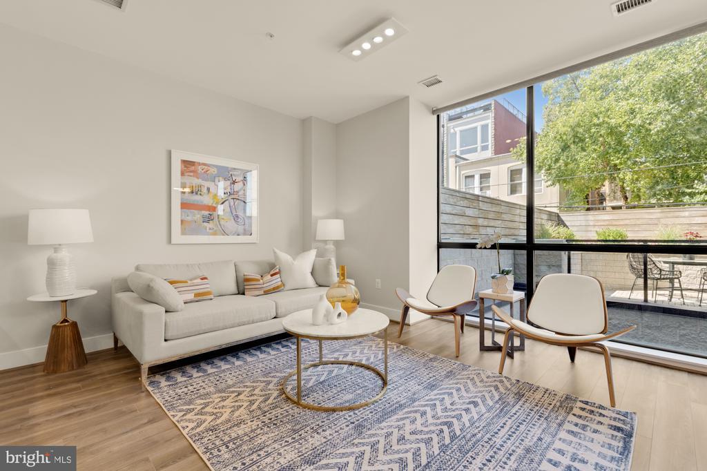 Indulge in the ultimate urban living experience with this exquisite 3-bedroom home in the coveted 11Park community. This boutique building is ideally situated in close proximity to the vibrant Logan Circle and 14th Street neighborhoods. Boasting a west-facing duplex townhome layout, this residence exudes modern luxury with its soaring ceilings, floor-to-ceiling windows with custom remote controlled shades, and wide-plank flooring. The open-concept kitchen and dining area are a chef's delight, featuring a gas cooktop, wine fridge, custom Porcelanosa cabinetry with soft-closed doors, and a deep Kraus kitchen sink. The second level offers a versatile living space and three generously sized bedrooms with expansive closets. The bathrooms are meticulously designed with custom Porcelanosa cabinets, luxury tile, and Waterworks hardware. Every detail of this exceptionally well maintained home has been thought out with dual-zone HVAC, high quality insulated windows, custom closet systems, and the finest finishes. This exceptional property goes above and beyond with not one, but TWO outdoor spaces - a serene courtyard adjoining the primary bedroom and a spacious private roof deck off the living room. As part of the esteemed 11Park community, residents enjoy the convenience of garage parking, an additional private storage unit, a rooftop lounge and deck complete with grilling stations, a well-equipped gym, Butterfly app controlled entry, and secure bike storage. The building offers a pet grooming station for the beloved furry companions and is just moments away from the Shaw Dog Park and Dog Daze. Don't miss this rare opportunity to embrace a lifestyle of unparalleled luxury and convenience in the heart of the city!