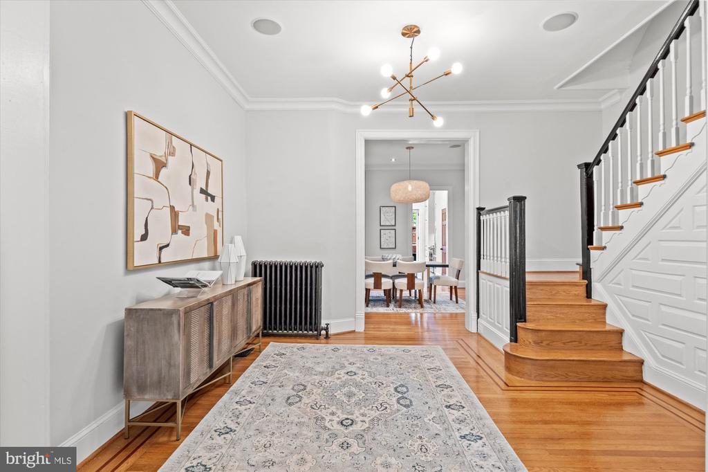 This beautifully updated rowhouse, nestled on a picturesque block in the historic Bloomingdale neighborhood, exudes timeless charm. High ceilings and original details enhance the home’s character, while the thoughtful restoration ensures modern comfort. The spacious first floor features gracious living areas, including a fully renovated kitchen. Upstairs, you'll find four bedrooms and two full baths. An accessible basement apartment, complete with a Certificate of Occupancy (C of O), provides flexible living options or the potential for rental income. The private terrace off the kitchen leads to an enclosed one-car garage, adding convenience to this already exceptional home. An unfinished attic offers the potential for future expansion, with the possibility of adding a stunning roof deck to take full advantage of the surrounding views. Just steps from popular spots like The Red Hen, Big Bear Cafe, The Park at LeDroit, and Crispus Attucks Park, this special home is not to be missed!