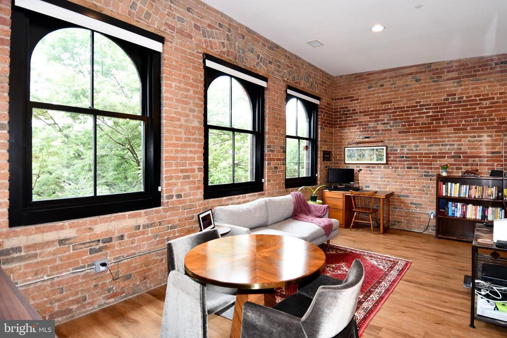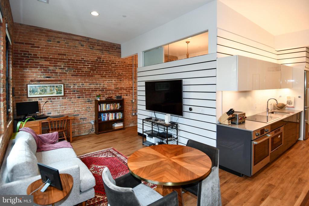 Step into history in DC’s iconic Chapman Stables. This 1-bed, 1-bath condo blends historic character—11′ ceilings, original exposed brick, and three grand arched windows—with sleek modern finishes. The open layout features a Bosch kitchen, quartz countertops, and in-unit washer/dryer across 725 sq ft of refined space. The custom built-ins add an elegant level of storage as well. Primary bedroom also has a rare find in the building with a custom closet to provide even more storage. Located in a nationally registered landmark, the building showcases unique architectural touches like the restored car-elevator lobby with original pulleys. Residents enjoy luxury amenities including a rooftop terrace with Capitol views, a landscaped courtyard, concierge service, lounge, and secure elevator access. Garage parking and storage are available for purchase. A true bonus of the building is having a great restaurant at your front door, Republic Cantina. Set in the heart of Truxton Circle, between NoMa and Shaw, you’re moments from the metro, top restaurants, and downtown. Chapman Stables offers the rare opportunity to live in a modern home with soul—where heritage meets elevated urban living.
