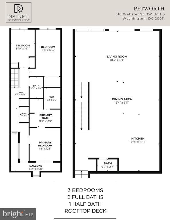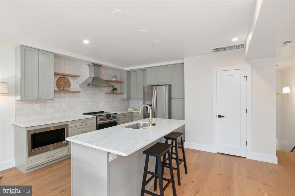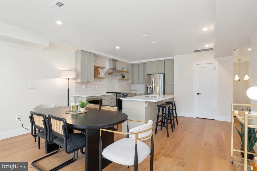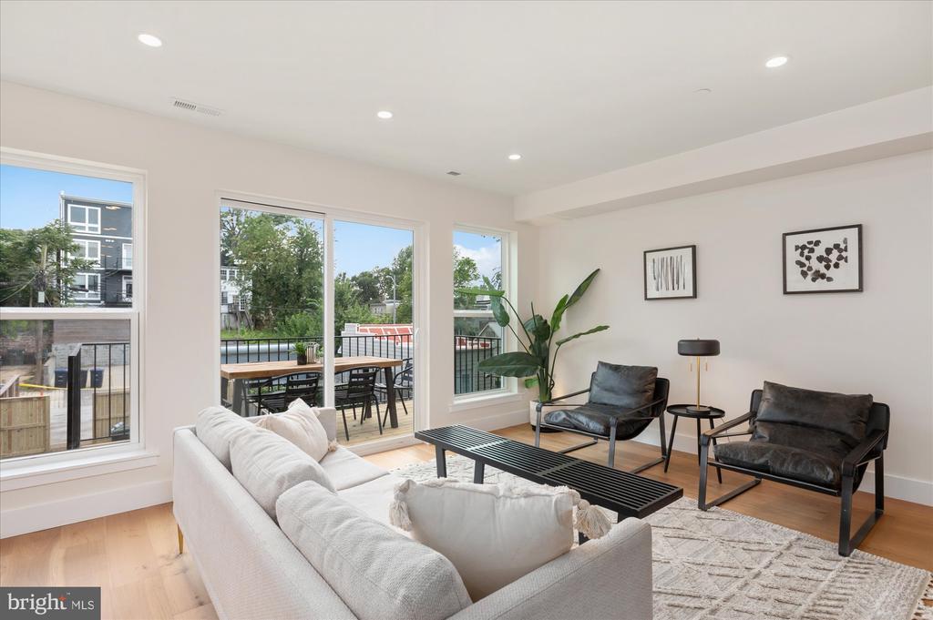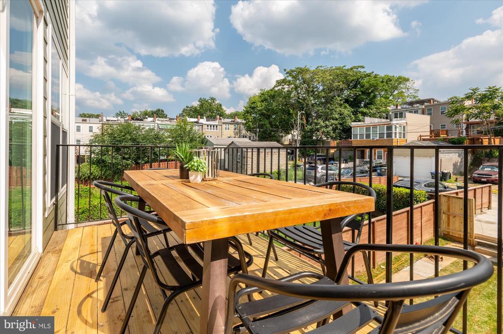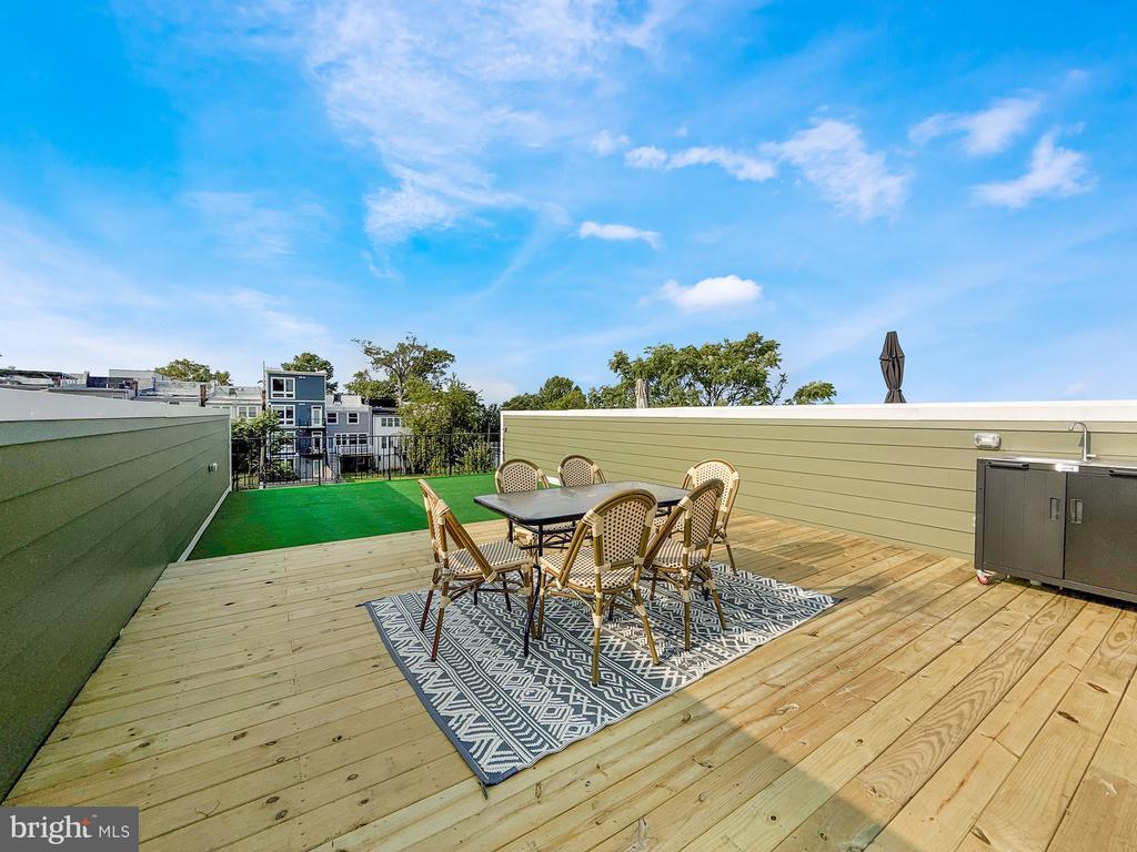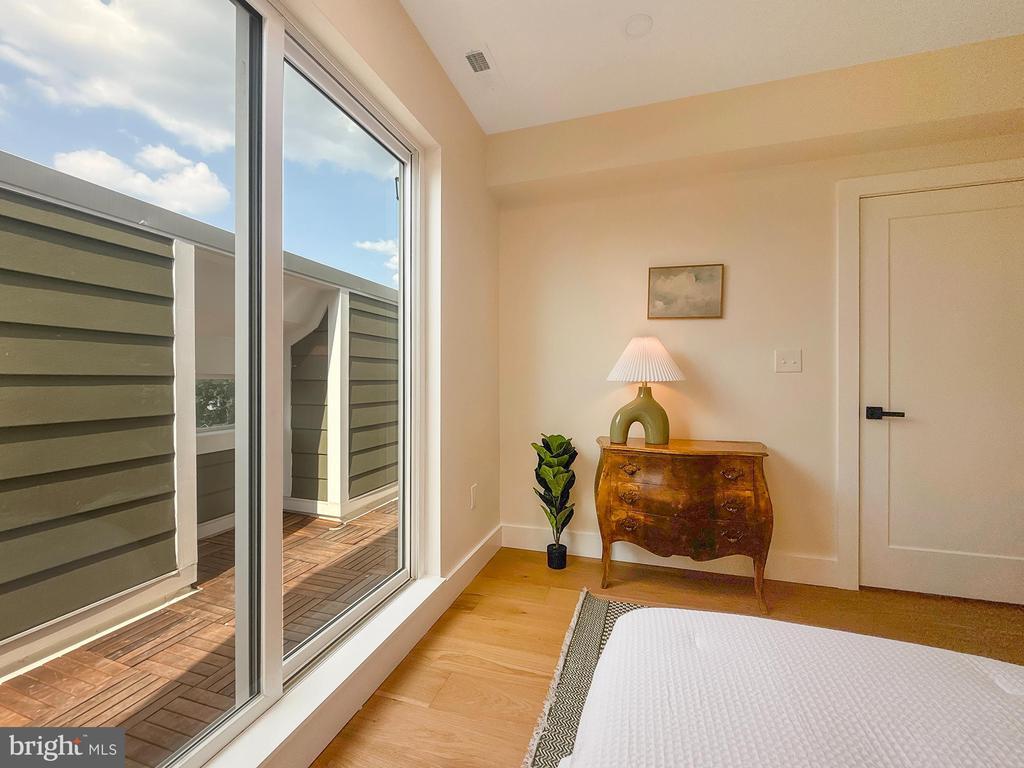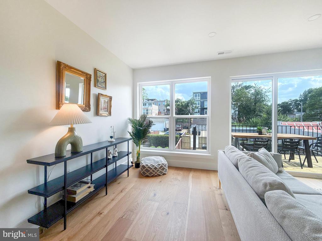 This top-floor 3-bedroom, 2.5-bath condo brings space, style, and sunlight—plus a private rooftop deck that sets it apart. Everything is brand new and thoughtfully designed with warm hardwood floors, tall ceilings, and oversized windows that flood the home with natural light. The open main level features a generous living and dining area that opens to a private balcony, along with a sleek kitchen boasting soft-close cabinetry, floating shelves, quartz counters, and a bold tile backsplash. The large island is perfect for prepping, serving, or just hanging out. A modern powder room rounds out this level. Upstairs, the king-sized primary suite offers its own balcony, walk-in closet, and spa-like bath with double vanity and walk-in shower. Two additional spacious bedrooms, a second full bath, and laundry complete the upper level. The private rooftop deck tops it all off—ideal for sunset drinks, yoga, or movie nights under the stars. What makes this condo unique? It’s one of the few buildings in DC that allows mid-term rentals. Most condos in the city restrict owners to year-long leases, but here you can rent to traveling professionals with a 30-day minimum stay. With its proximity to several hospitals, it’s an excellent option for traveling nurses—and a smart long-term investment. All of this in the heart of Petworth, where local coffee shops, parks, and neighborhood favorites like the Petworth Porchfest and Celebrate Petworth Festival are just steps away. Off-street parking included!