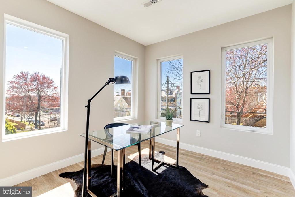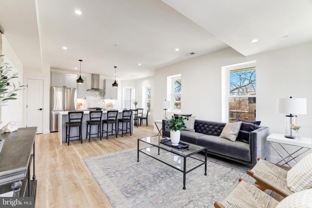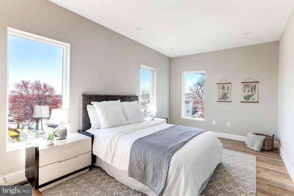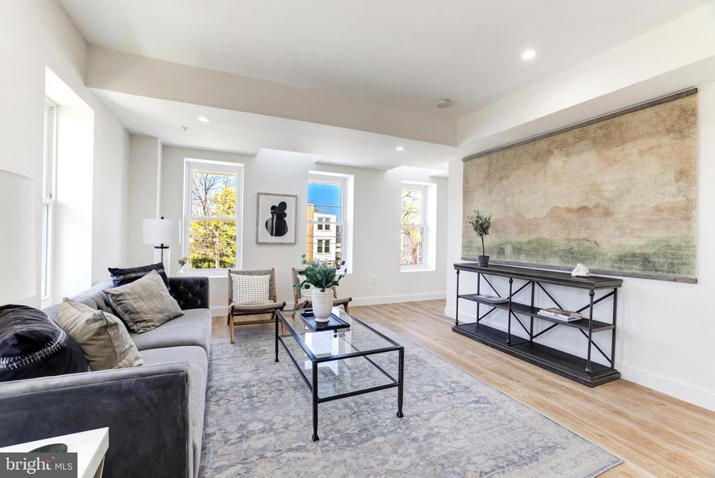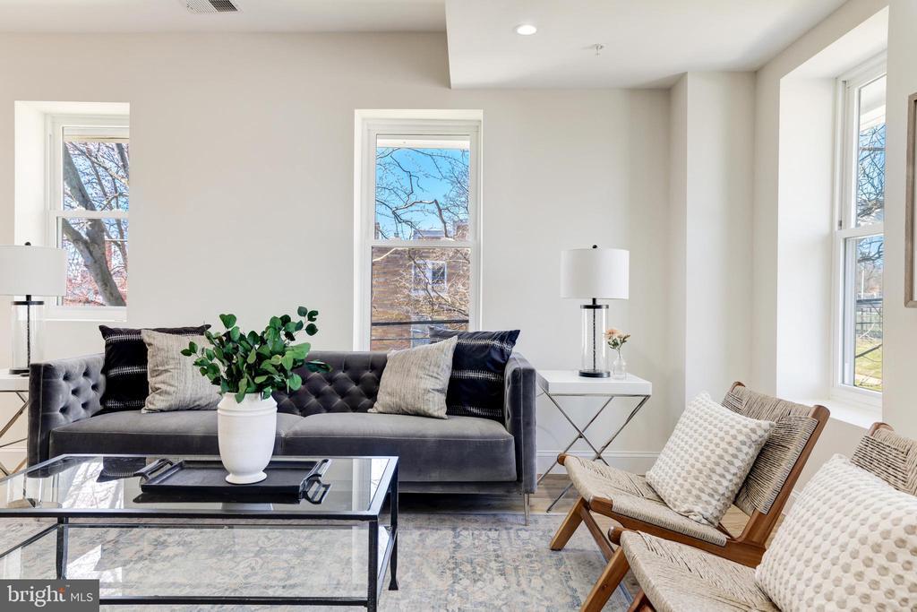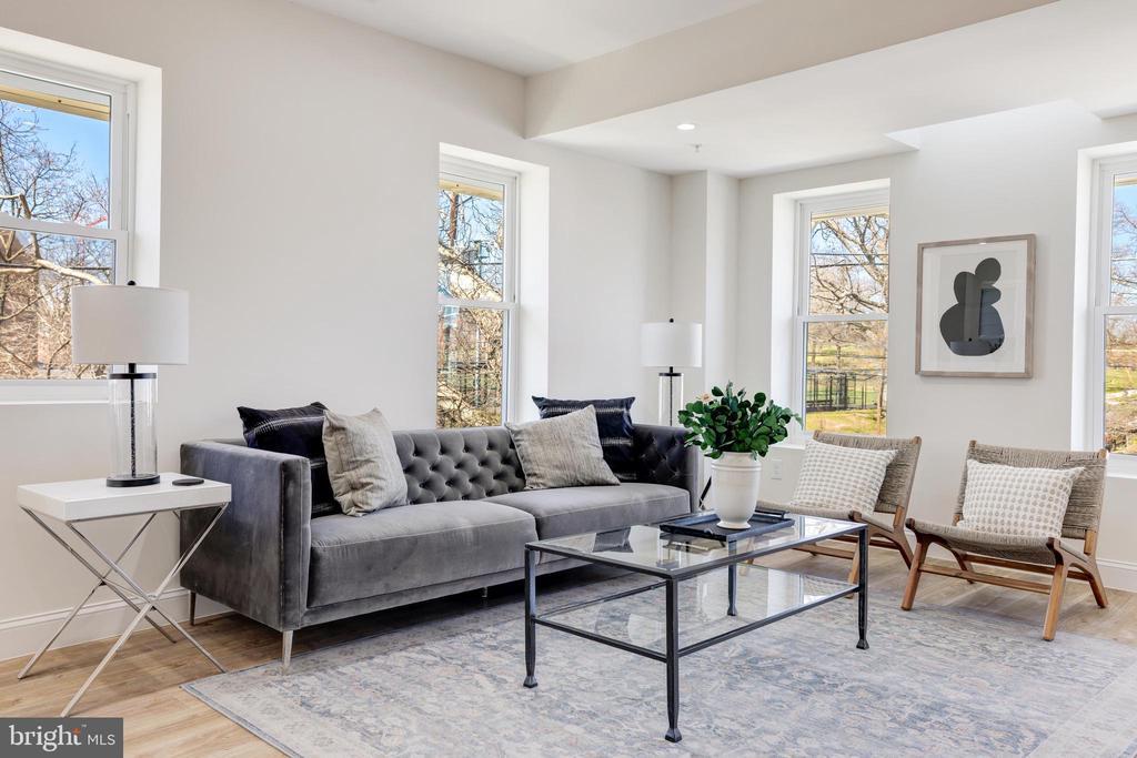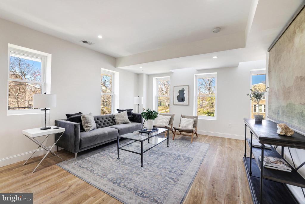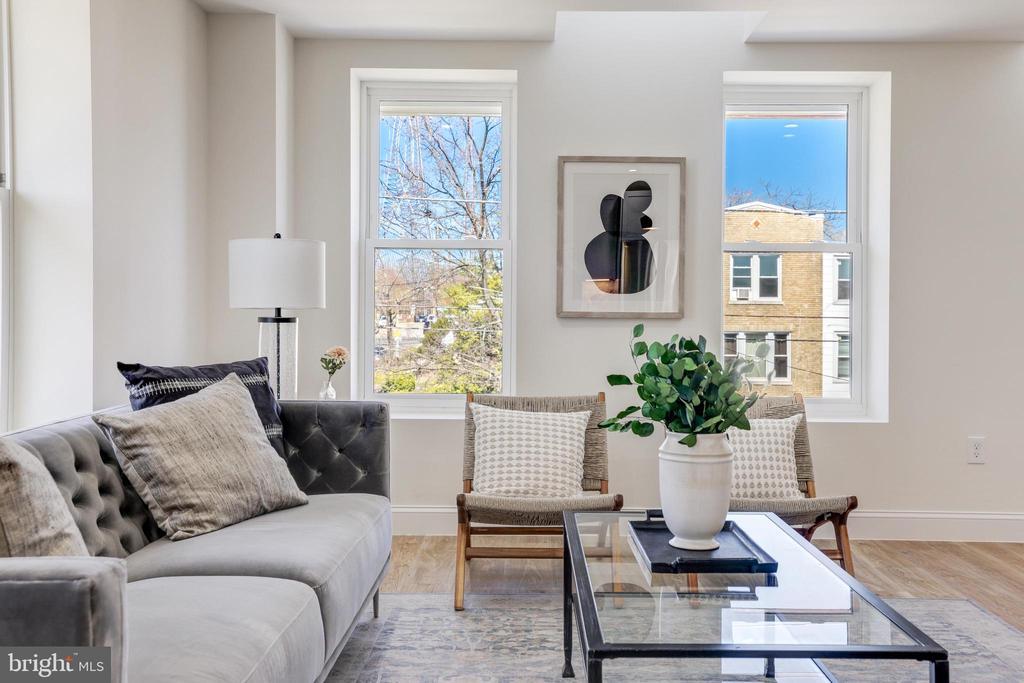 A stunning, two-level penthouse condo with a townhouse feel. This corner-lot gem offers the perfect blend of luxury, comfort, and low-maintenance living in one of D.C.'s most vibrant areas, situated between the Petworth & Crestwood neighborhoods. Boasting 3 spacious bedrooms (+ den) and 3 full spa-inspired bathrooms, this home is designed with both style and functionality in mind. Wake up to sweeping skyline views and unwind in your private en-suite retreat featuring a luxurious dual-head walk-in shower. Each additional bedroom includes its own en-suite bathroom, offering maximum privacy for family and guests. Step inside and experience designer finishes and high-end materials throughout. The open-concept layout is ideal for entertaining, while oversized windows flood the space with natural light. Outside, enjoy beautifully landscaped green spaces that create a serene, private atmosphere-perfect for relaxing or hosting. A private, bricked driveway leads to two off-street parking spaces. Owner is DC Licensed Real Estate Agent.