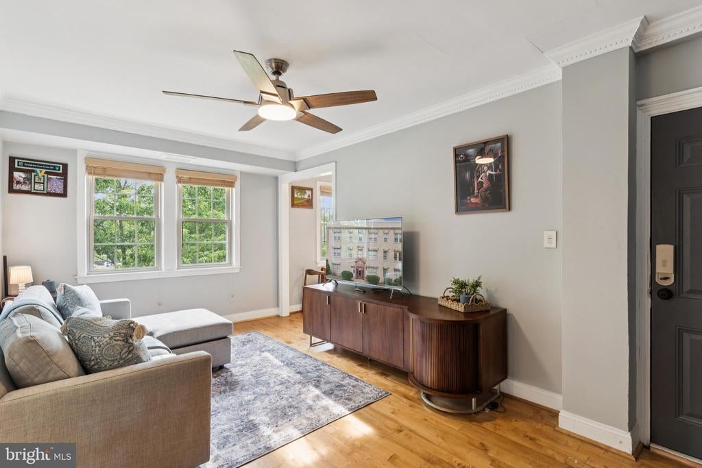 Top-floor 1BR in Brookland with bright western exposure overlooking a quiet, green courtyard. Inside, the home has been thoughtfully updated with all new windows, a new HVAC system, and a completely gut-renovated bathroom with clean, modern finishes. It’s also been freshly painted, giving the space a refreshed and move-in ready feel. The eat-in kitchen features stainless steel appliances, granite countertops, and crown molding. Wood floors run throughout, and a custom closet system adds efficient storage. A separately deeded parking space is included with this unit as well! Laundry room is located on the first floor. Water is included in the condo fee. The building is pet-friendly for dogs and cats under 60 lbs. The location offers a unique mix of residential calm and city convenience. Just next door is the brand-new Edgewood Recreation Center, which features a fitness center, gymnasium, rooftop garden, community kitchen, and more—providing useful neighborhood amenities right at your doorstep. A Capital Bikeshare station is located just outside, making commuting or exploring the area easy. Within a few blocks, you’ll find Monroe Street Market, home to restaurants like Busboys & Poets and Brookland Pint, as well as galleries and local shops. Both the Brookland-CUA and Rhode Island Avenue Metro stations are nearby, connecting you to the Red Line for easy access to downtown DC, Union Station, and beyond. The upcoming Bryant Street development will bring additional dining, retail, and entertainment options, including an Alamo Drafthouse Cinema, adding to the area’s continued growth.