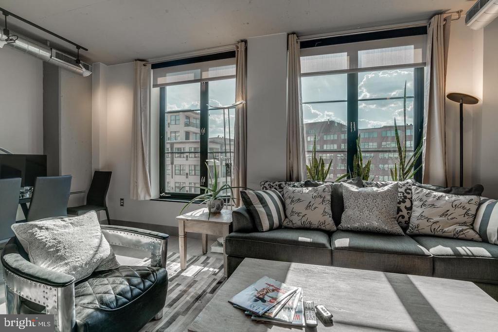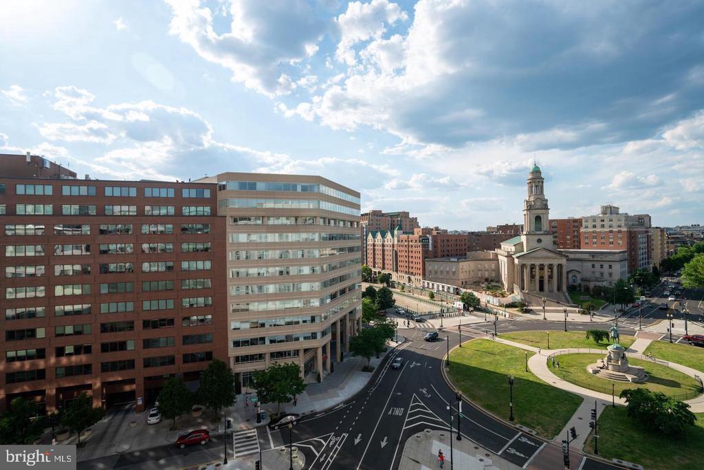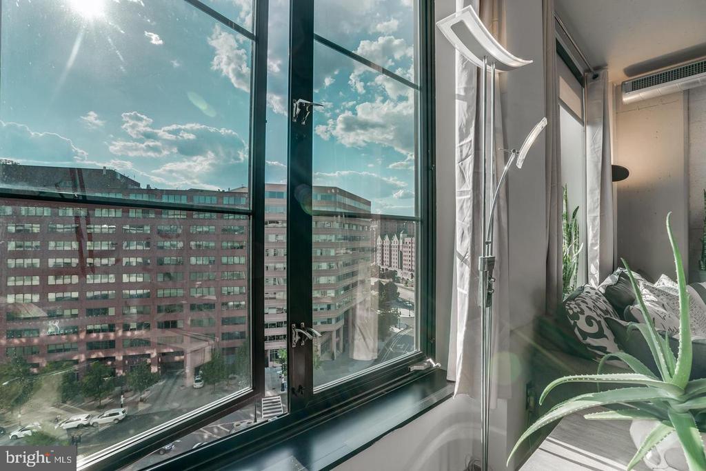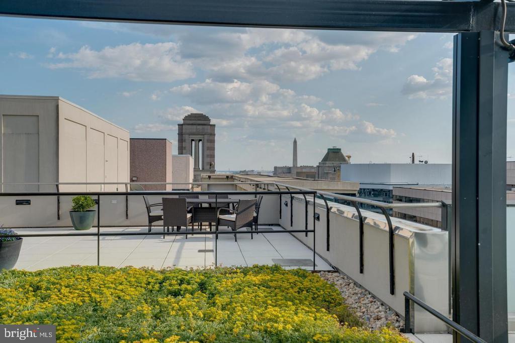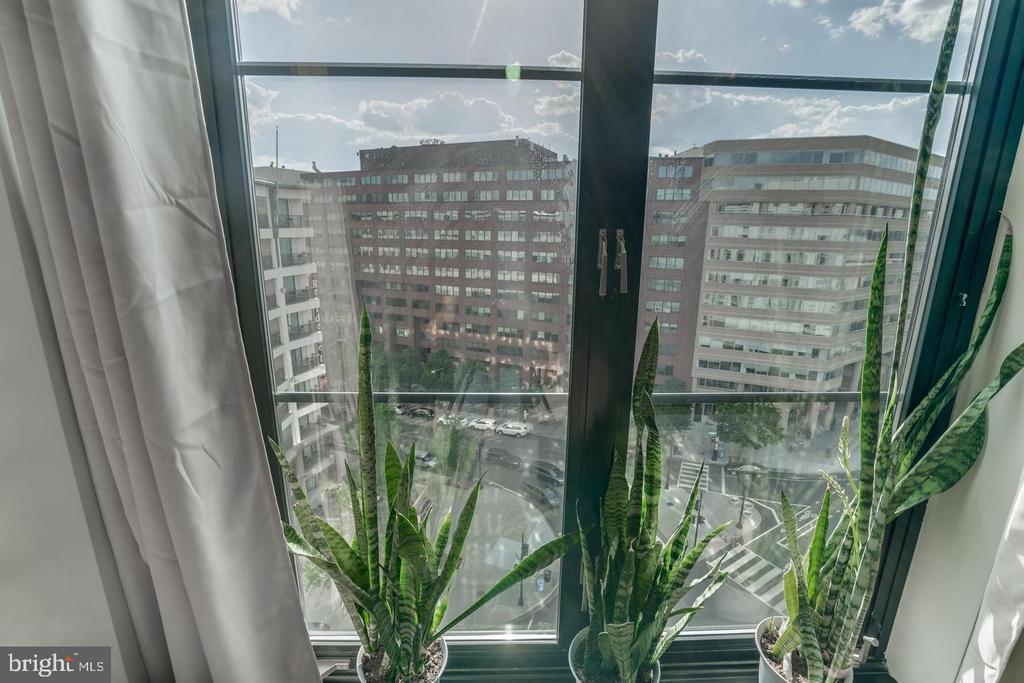 Amazing opportunity to own a sun-drenched contemporary 1 BR/1BA in the heart of Washington, DC/Thomas Circle. Located in the prestigious, LEED-certified Alta Condominium building, extra large, 750 square foot one bedroom corner unit is situated right off Thomas Circle and just south of Logan Circle and walking distance to the McPherson Square Metro. Built in the style of a modern, industrial loft, this unit features floor-to-ceiling windows, exposed concrete ceilings and ductwork and an open floor plan. Natural light pours in from the window wall, while the European-style kitchen is completely open on three sides, with maple cabinets, granite counter tops and stainless steel appliances. The spacious living area is large enough for separate living and dining areas. The full bath features an oversized pedestal sink and large, glass-enclosed shower. Building amenities are plentiful and include a vast roof terrace boasting a garden and overhead steel pergola with views of the Washington Monument, party room with fireplace and enormous flat screen tv, sky lounge with 20 foot windows, which also offer phenomenal city views. The views from the rooftop terrace/lounge are breathtaking - you will have to come see with your own eyes! This pet-friendly building has condo fees of $579 which include water, sewer, trash and internet, and concierge. As if this home wasn't calling your name already, there is more to it! Deeded garage parking in building included in price and condo fee. Newly installed HVAC system, NEW combined washer and dryer, NEW kitchen sink, faucet and garbage disposer and NEW bathroom light control mirror. The epitome of modern design coupled with an unbeatable location makes this home a must-see!
