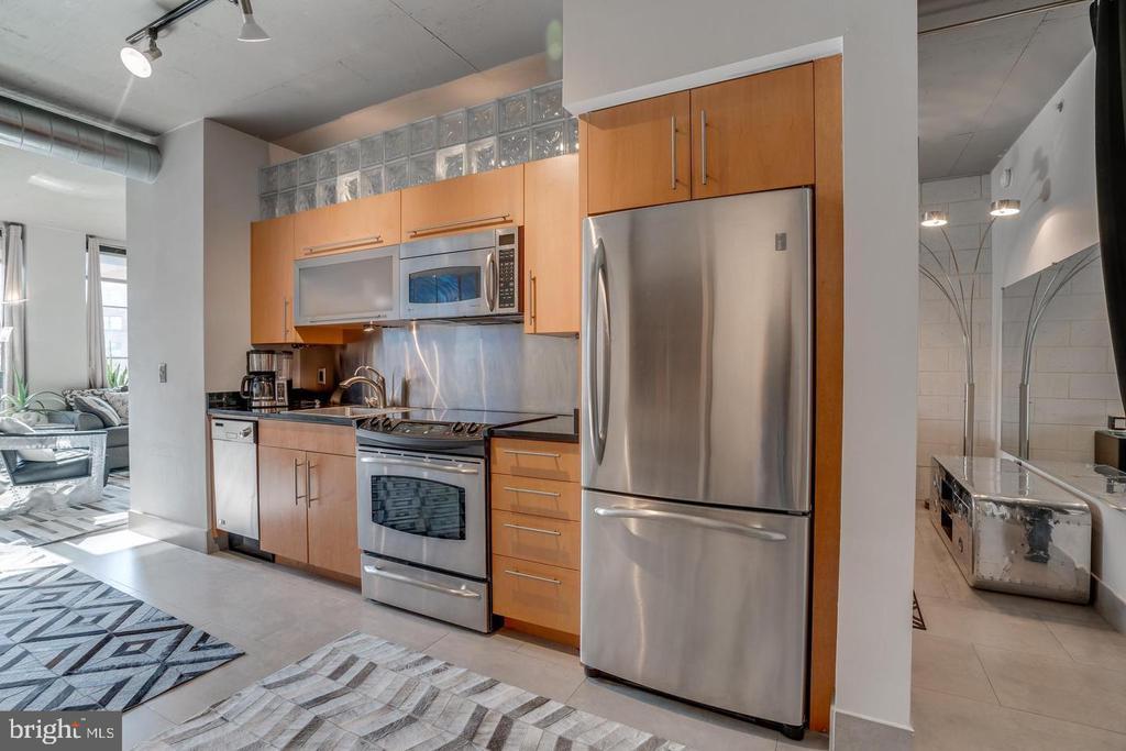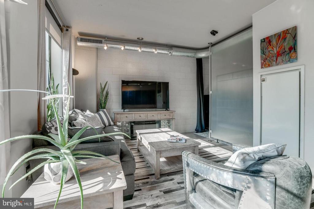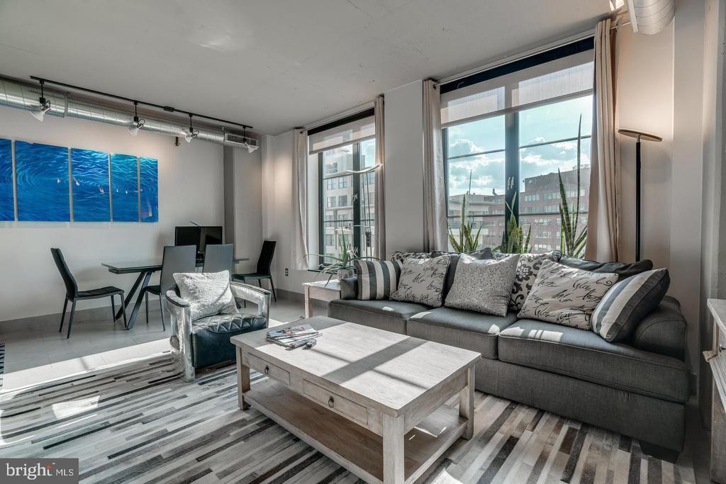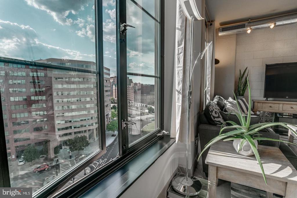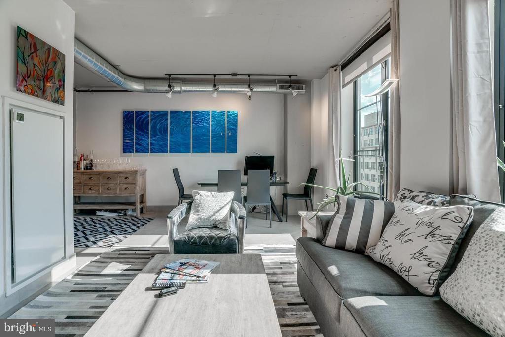 Amazing opportunity to own a sun-drenched contemporary 1 BR/1BA in the heart of Washington, DC/Thomas Circle. Located in the prestigious, LEED-certified Alta Condominium building, extra large, 750 square foot one bedroom corner unit is situated right off Thomas Circle and just south of Logan Circle and walking distance to the McPherson Square Metro. Built in the style of a modern, industrial loft, this unit features floor-to-ceiling windows, exposed concrete ceilings and ductwork and an open floor plan. Natural light pours in from the window wall, while the European-style kitchen is completely open on three sides, with maple cabinets, granite counter tops and stainless steel appliances. The spacious living area is large enough for separate living and dining areas. The full bath features an oversized pedestal sink and large, glass-enclosed shower. Building amenities are plentiful and include a vast roof terrace boasting a garden and overhead steel pergola with views of the Washington Monument, party room with fireplace and enormous flat screen tv, sky lounge with 20 foot windows, which also offer phenomenal city views. The views from the rooftop terrace/lounge are breathtaking - you will have to come see with your own eyes! This pet-friendly building has condo fees of $579 which include water, sewer, trash and internet, and concierge. As if this home wasn't calling your name already, there is more to it! Deeded garage parking in building included in price and condo fee. Newly installed HVAC system, NEW combined washer and dryer, NEW kitchen sink, faucet and garbage disposer and NEW bathroom light control mirror. The epitome of modern design coupled with an unbeatable location makes this home a must-see!