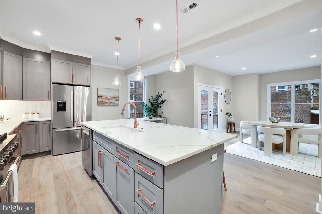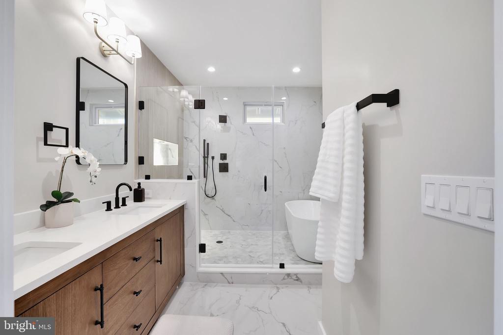 Welcome to 3740 Kanawha St NW, a stunning, fully reimagined luxury residence in the heart of Chevy Chase, DC. This 5-bedroom, 4.5-bathroom home spans over 3,400 square feet of meticulously designed living space, offering an unparalleled combination of modern elegance, high-end finishes, and thoughtful craftsmanship. Unlike anything else in the neighborhood, this home has been completely rebuilt from the ground up—not a single detail was overlooked. From the brand-new floors to the brand-new roof and everything in between, the entire interior and most of the exterior of this residence is brand-new. Premium materials were used throughout and every inch of this home exudes sophistication and style. The open-concept layout is perfect for both entertaining and everyday living, featuring expansive living and dining areas filled with natural light, a chef’s kitchen with massive island, and seamless indoor-outdoor flow. The upper level boasts a luxurious primary suite with a spa-inspired en-suite bathroom, along with generously sized secondary bedrooms and a second full bathroom on this level. You will love having the laundry on this level for added convenience. On the upper-most level, you'll find the 4th bedroom suite with walk-in closet and luscious bathroom - perfect for an in-law or au pair suite. The fully finished lower level offers additional living space and a bedroom, ideal for a media room, home gym, or guest bedroom, as well as a full bathroom. The outdoor living space is unmatched, with a wrap-around front porch, back patio off of the main level, and a fenced-in backyard. A truly rare find, this is the only home on the block with an attached garage - and one of the only few with off-street parking, adding both convenience and curb appeal. Nestled in one of DC’s most coveted neighborhoods, this home is just minutes from renowned schools, charming shops, top-rated dining, and the natural beauty of Rock Creek Park. Enjoy the perfect blend of tranquility and urban convenience, with easy access to the heart of DC, Metro, and major commuter routes.