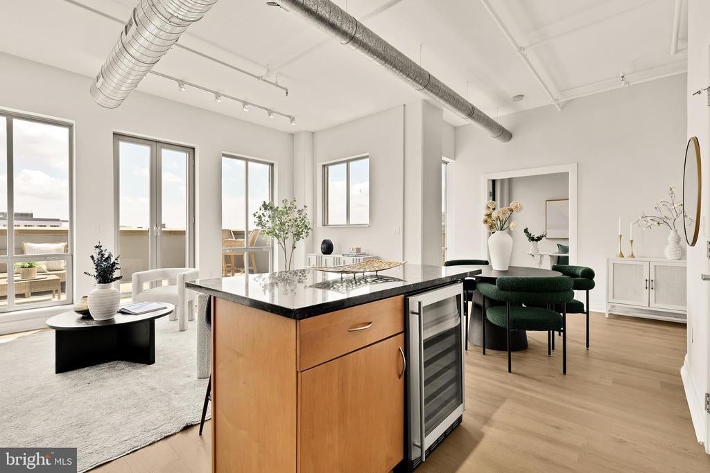 Penthouse perfection awaits at 301 Massachusetts Ave NW #1103, where high ceilings, oversized windows, and sweeping city views create a dramatic backdrop for everyday living. This 2-bedroom, 2-bath, 1-den stunner spans over 1,200 square feet of open, sun-soaked space with chic industrial touches and a smart, flowing layout. The sleek kitchen features stainless steel appliances, gas cooking, kitchen island, and built-in wine fridge, ideal for casual dining or cocktails with friends. A proper foyer, ample closet space, newer HVAC, and updated flooring round out the comforts. Set in The Sonata—a boutique, pet-friendly building with concierge service, an included garage parking space, and a rooftop deck with skyline views—this home puts you blocks from Union Station, Metro, NoMa hotspots, and Mount Vernon Square. Bold, bright, and beautifully elevated.