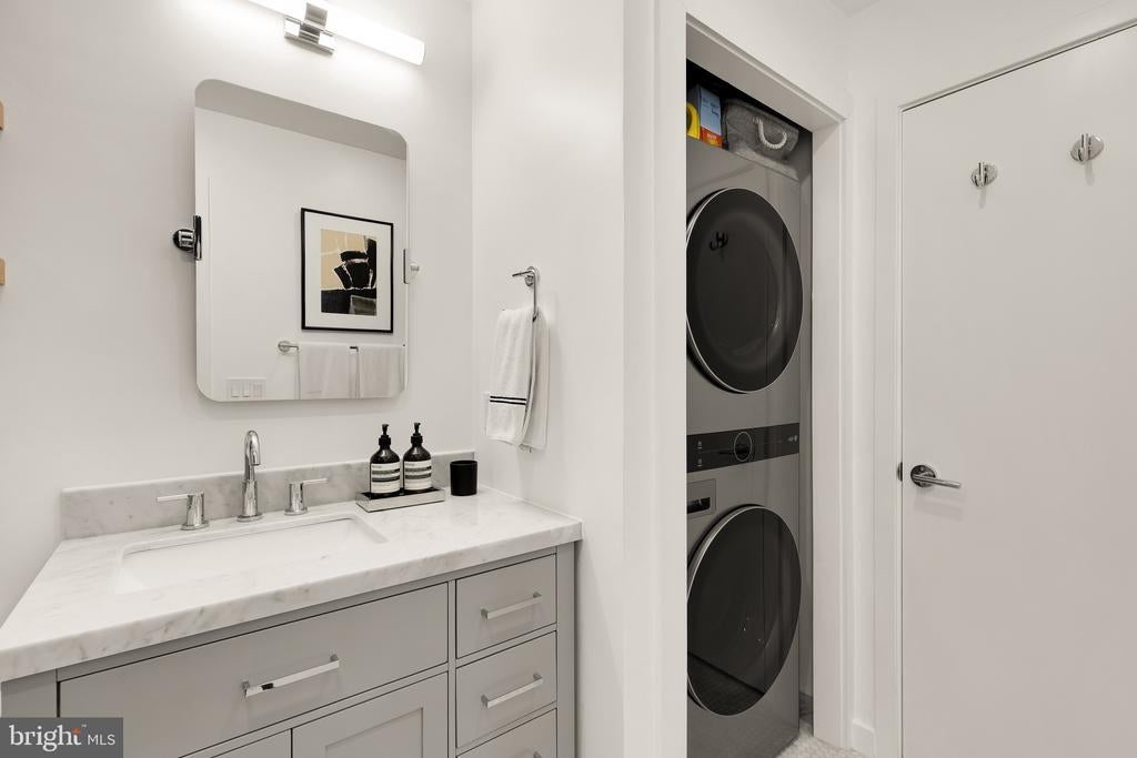 1BR+DEN I PARKING I Welcome to Residence 501 at The Rhapsody—a bright and stylish one-bedroom + den condo featuring modern upgrades and thoughtful design. This home offers a fully renovated bathroom, new appliances and HVAC system, custom shades, and more. The open-concept layout is enhanced by east-facing, floor-to-ceiling windows that fill the space with natural light. The kitchen is designed for both function and style, with a large island with seating, granite countertops, and stainless steel appliances—perfect for cooking, dining, and entertaining. The spacious den provides a versatile flex space, ideal for a home office, dining area, or additional living space. The fully renovated bathroom includes a walk-in shower with marble tile, while the in-unit washer and dryer add everyday convenience. The bedroom features a generous walk-in closet, offering ample storage. Two Juliet balconies bring in fresh air and neighborhood views, and an assigned underground garage parking space completes this exceptional home. Condo fee includes Water, Trash, Sewer, Gas, Hot Water. Beyond your doorstep, the building offers top-tier amenities such as concierge, fitness room, package room, bike storage, and on-site management. The expansive rooftop, complete with a grill area and breathtaking views of the District, is perfect for unwinding or hosting friends. Newly refreshed hallways and lobby! Just across the street from Whole Foods and steps away from the Metro (Green/Yellow Line), you’ll have effortless access to all the city has to offer. Whether you're hopping on Capital Bikeshare, exploring the vibrant U Street Corridor, or enjoying the nightlife, dining, and shops along 14th Street, you'll love the convenience and energy of this prime location. Square footage is estimated and based on 3rd party measurements.