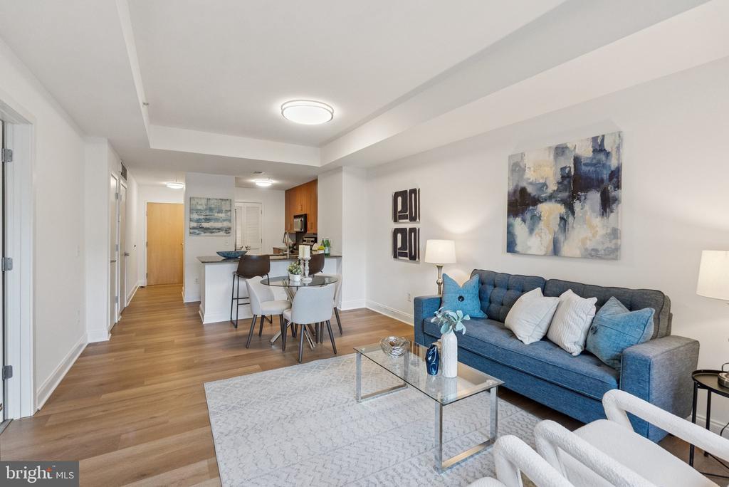 Located just a few blocks from Logan Circle, The Whitman is a luxurious high-rise condominium that boasts an impressive array of amenities and a spacious one-bedroom, one-bathroom layout. As you step inside, you are greeted by a modern kitchen complete with stainless steel appliances and ample storage. Tucked away behind double doors, you will find the coveted stacked washer and dryer. The kitchen's breakfast bar seamlessly flows into the spacious living room, which is filled with natural light streaming through the large picture windows. The large bedroom is located off the living room and features two windows that flood the space with natural light. The renovated ensuite bathroom is accessed through double doors and boasts a generous walk-in closet, as well as a private area for the commode and shower. In addition to offering in-unit laundry and ample storage, this home also includes private garage parking, making it a rare find in DC. The building's amenities are just as impressive, with a rooftop that offers stunning views of the city, lounge areas, a pool, and grills. The gym and welcoming lobby with multiple common spaces are additional perks, and the friendly front desk concierge ensures that your guests will always be greeted kindly and your packages accounted for. The unbeatable location puts some of DC's most popular restaurants, such as All Purpose, Unconventional Diner, and San Lorenzo, just a few blocks away. The DC Convention Center and numerous metro stops are also conveniently located nearby. Don't miss your chance to experience all that DC has to offer from the comfort of this amazing condo at The Whitman. Public record reflects total square footage of 708. All measurements are approximate. Property details and square footage should be independently verified, and not used for property valuation.