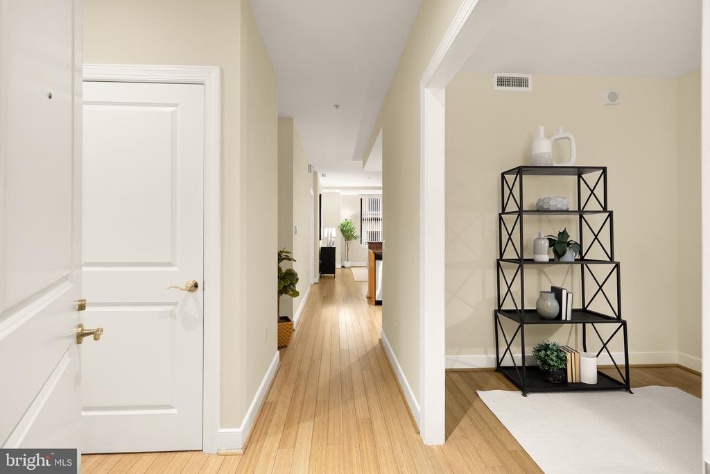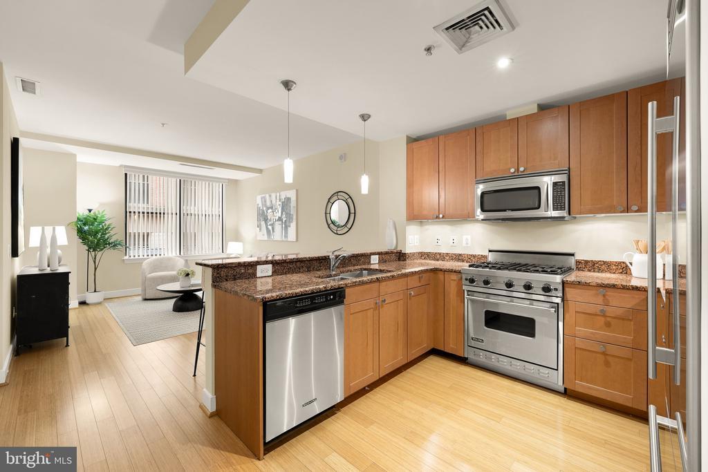 Prominently occupying a large parcel in the heart of Washington’s glittering West End is The Columbia, a 2006 reinterpretation of a historic 1918 building, creating 225 luxury condominiums of the highest caliber. Approached by a sweeping, verdant crescent drive, the building’s classic red brick facade is flanked by twin contemporary glass additions to create a dramatic, architecturally significant first impression. Within this rarified air is Residence 234, a one bedroom and den unit spanning a generous 812 square feet of immaculately maintained, sumptuously appointed living space. A vestibule provides a dignified entrance to the home. Immediately adjacent is the private den, a quiet space tucked away and ideally suited for a private office, reading nook, or yoga studio. At the heart of the floor plan is the chef’s kitchen. Elegant Poggenpohl cabinetry, granite countertops, and an integrated breakfast bar open up to the main living space. A commercial-grade Viking range and full-size SubZero refrigerator represent top-of-the-line equipment and are an indicator of the no-expenses-spared ethos found throughout. Bright and airy, the main living area is flooded with natural light from a large double window. Likewise, the bedroom suite features floor-to-ceiling glass through which the private balcony can be accessed. A pass-through dressing area framed by ample walk-in closet space leads to the primary bath. Clad in marble, the luxurious retreat boasts a large vanity and a combination tub and shower. A private, underground parking space conveys. An amenity-rich building, The Columbia features a rooftop swimming pool and sundeck, state-of-the-art fitness center, 24-hour front desk with security, billiards room, recreation room, business center, on-site management and maintenance, as well as available extra storage units for a true turnkey lifestyle. A Trader Joe’s is accessible from within the building, and the location is convenient to West End’s famous restaurants, shops, and public transit. Blending historic character with a contemporary lifestyle, Residence 234 at The Columbia represents the apex of upscale urban living.
