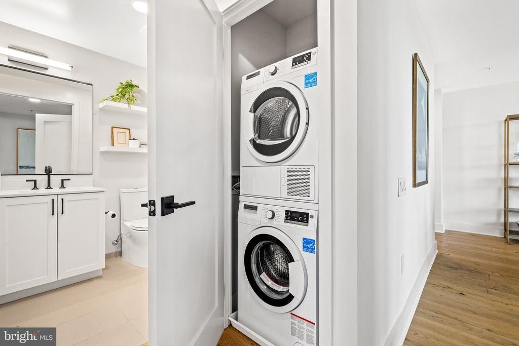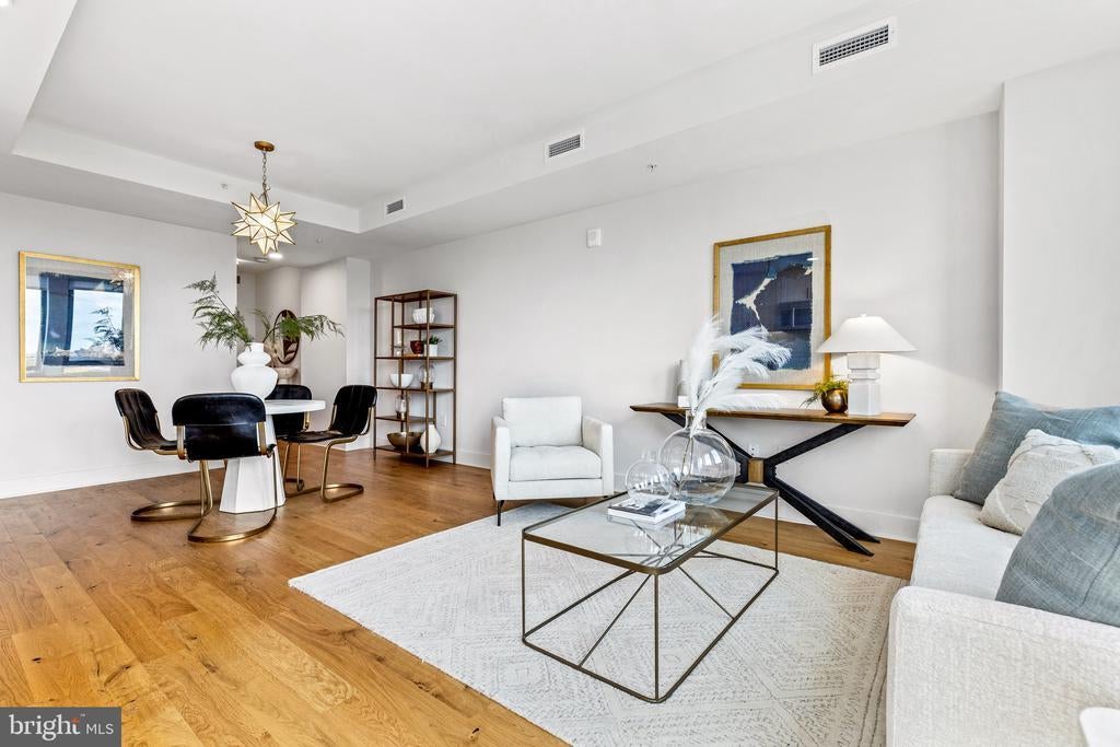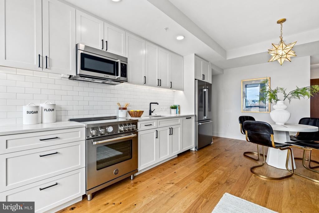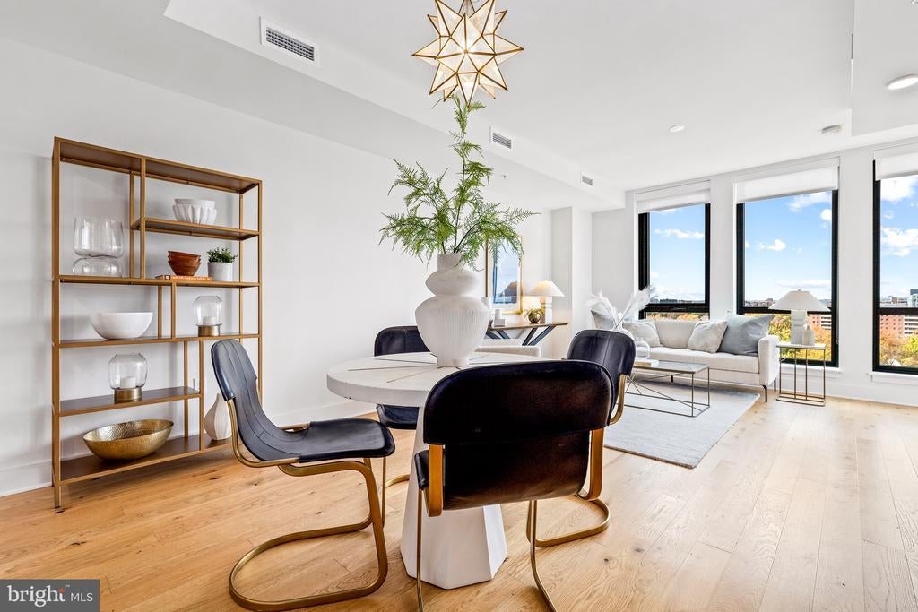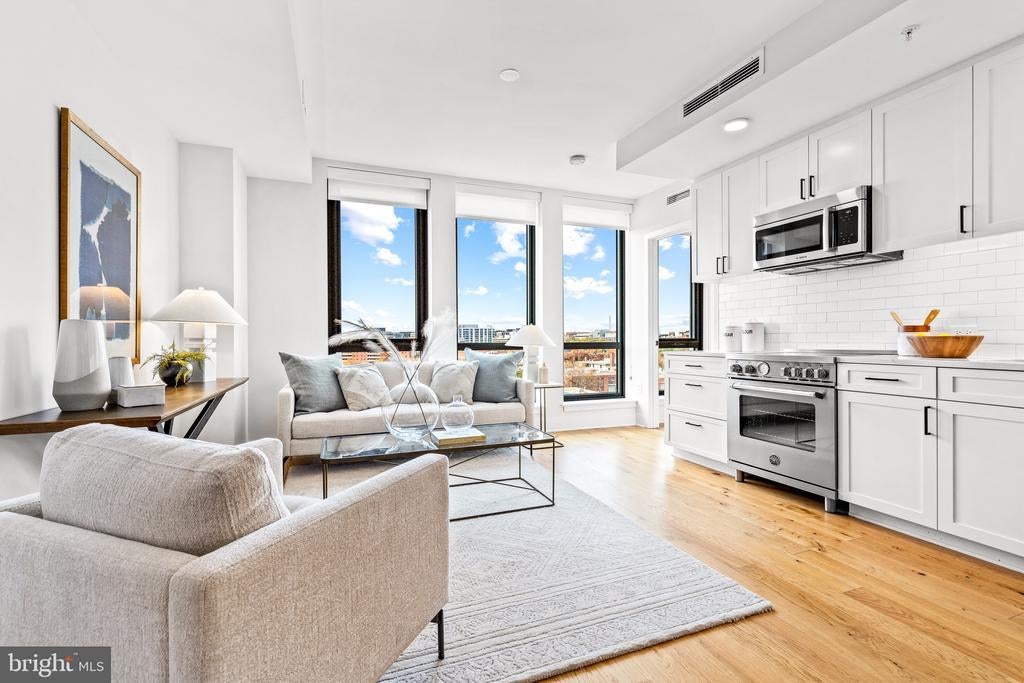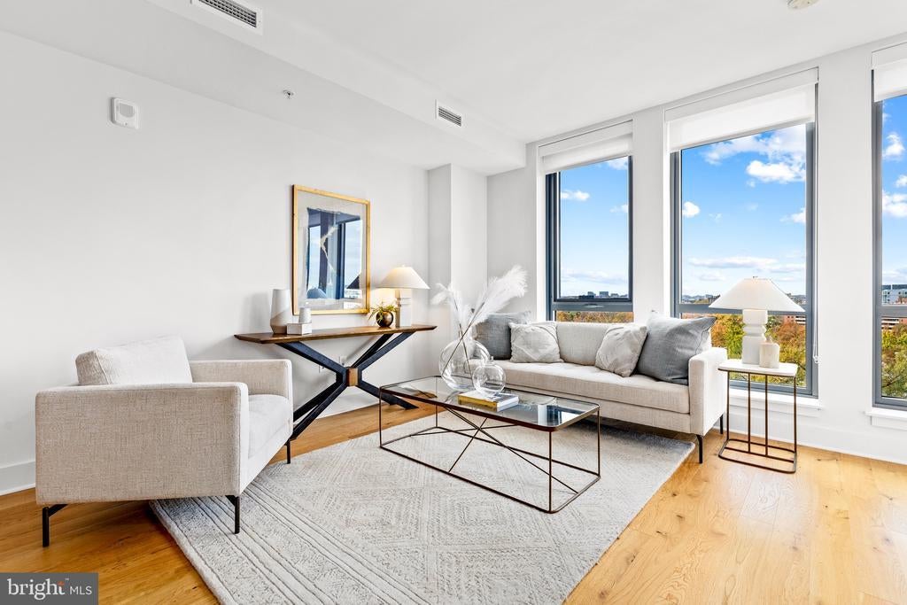 Experience Elevated Living at The Avidian Located on the 7th floor of The Avidian, this exceptional two-bedroom, two-bathroom residence offers sweeping, unobstructed views, including a direct line of sight to the iconic Washington Monument and planes soaring over Reagan Airport. A flood of natural light pours through expansive windows, highlighting the home's modern design and creating an inviting, airy atmosphere. Step into the home through a proper entry hallway, which leads into the expansive, open-concept kitchen, dining, and living areas — ideal for both entertaining and everyday living. The chef’s kitchen features high-end appliances, including a Bertazzoni range, Blomberg refrigerator, and a panel-ready Bosch dishwasher, all seamlessly integrated with striking quartz countertops, custom cabinetry, and a contemporary backsplash. The primary suite is a tranquil retreat, complete with its own private balcony — the perfect spot to unwind. The ensuite bathroom is a spa-inspired sanctuary, featuring double vanities and refined finishes. The second bedroom is generously sized with a spacious closet, and the second full bathroom, easily accessible from both the bedroom and main living areas, serves as a stylish guest bath. The Avidian offers an unparalleled level of luxury with a full suite of amenities, including a pet-friendly indoor dog run and a pet-washing room. Enjoy 24/7 concierge and security services, a penthouse lounge with a fully-equipped kitchen, and a rooftop pool and sun deck complete with grilling stations, a bar, and prep areas. Outdoor lounges with fire pits provide the perfect setting to enjoy stunning city views. Secure underground parking and additional storage are available for purchase. Conveniently located just half a block from the Navy Yard Metro, The Avidian places you within walking distance of all the area’s best offerings. Discover the perfect blend of luxury, convenience, and breathtaking cityscapes at The Avidian.