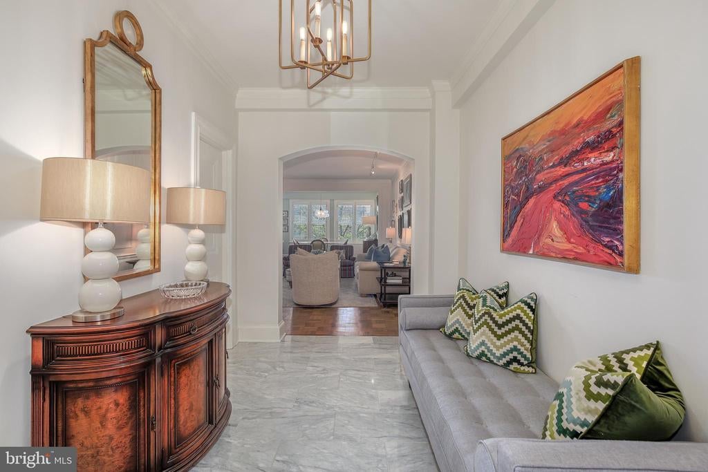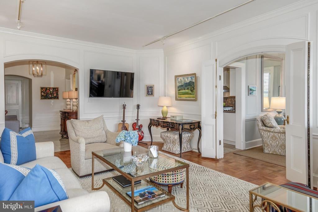 *** Welcome to Apartment #311B. Don’t miss this beautifully renovated, turnkey residence. *** A bright and spacious corner apartment with 2 bedrooms & 1 bathroom – completely move-in ready with premium finishes, fixtures, and designer lighting (a full list of lighting fixtures is included in the listing documents). *** 2 exposures – north and west – provide lovely natural light and views of Glover Archbold Park. *** The high-end, gourmet kitchen features top-of-the-line appliances – Viking, Liebherr, and Bosch – along with sleek countertops and a window. *** The full bathroom is luxuriously appointed with a walk-in glass shower – elegant and spa-like. *** Highlights of the flexible floor plan include a large entry foyer with marble flooring, a generous living room with paneled bifold double doors with elegant hardware, and low-profile ceiling picture lighting, plus a den and dining room (with 6 windows!) - which could be interchanged depending on owner preference. *** Both well-proportioned bedrooms have walk-in closets and enjoy abundant natural light. *** Additional features include plantation shutters, crown moldings, picture moldings, a large linen closet, coat closet, additional storage closet, original parquet wood floors, and approximately 9' ceilings. *** Approximately 1,350 square feet – size estimated. *** Fee includes utilities (except internet/cable) & property taxes. *** The Westchester is a true urban oasis, located on approximately 10 acres of beautiful, well-kept grounds that includes a beloved, tiered sunken garden. *** The building offers many amenities - convenience market, guest rooms, library, hair salon, barber shop, dry cleaners & gym/fitness room. MetroBus stop directly in front of the property - D90 route (formerly the N2) with the D96 (formerly the N4) route no more than a block away. *** Restaurants, retail shopping & neighborhood points of interests are nearby - Foxhall Square, Cathedral Commons, City Ridge, neighboring Glover Park - there is a Giant, Trader Joe's, Wegmans, Wagshal's, a community victory garden & Washington National Cathedral and grounds.