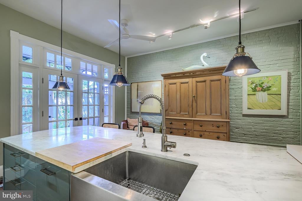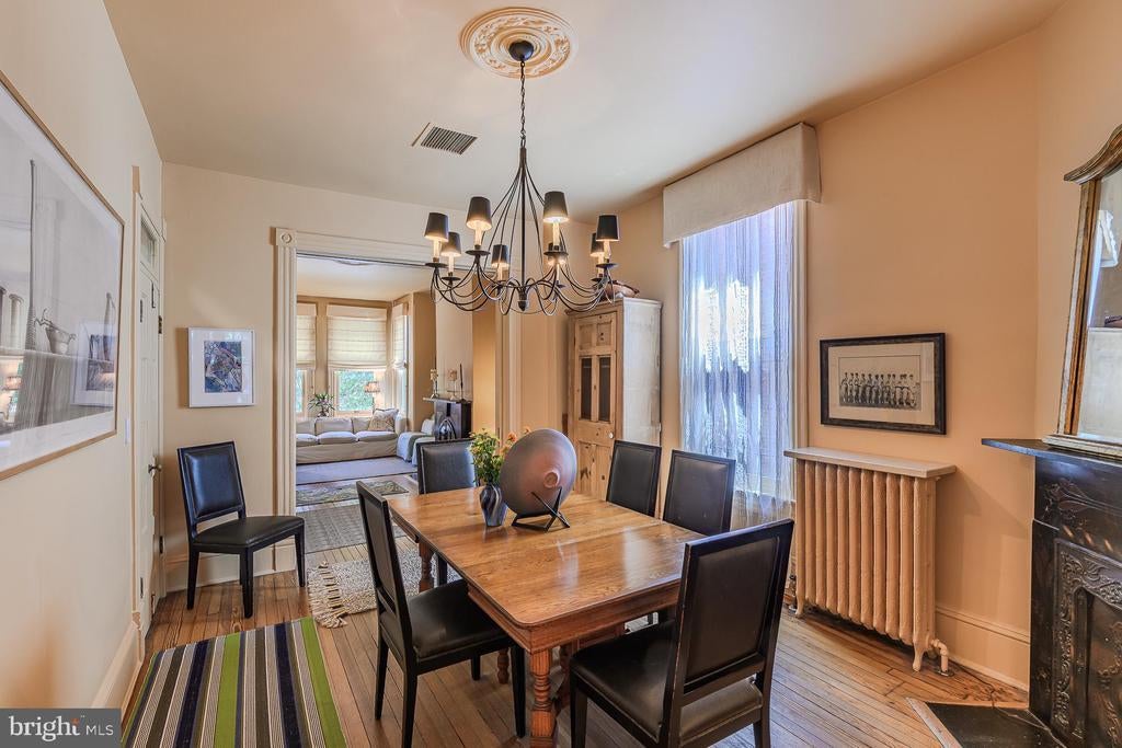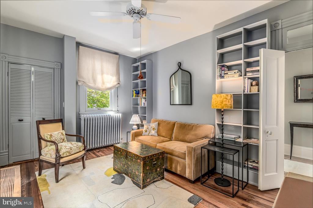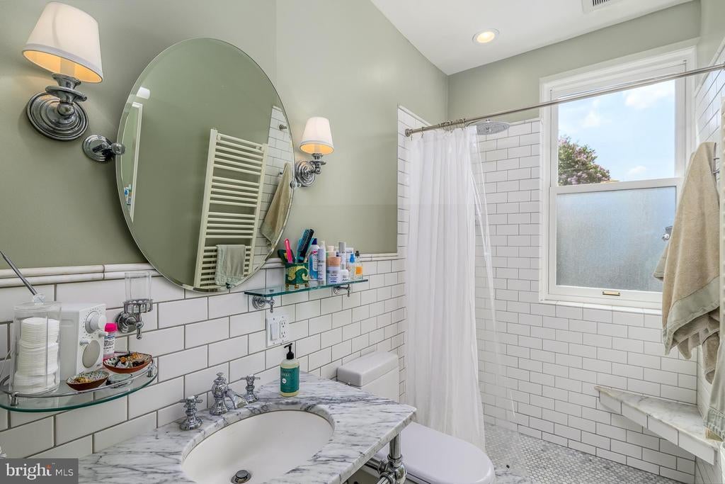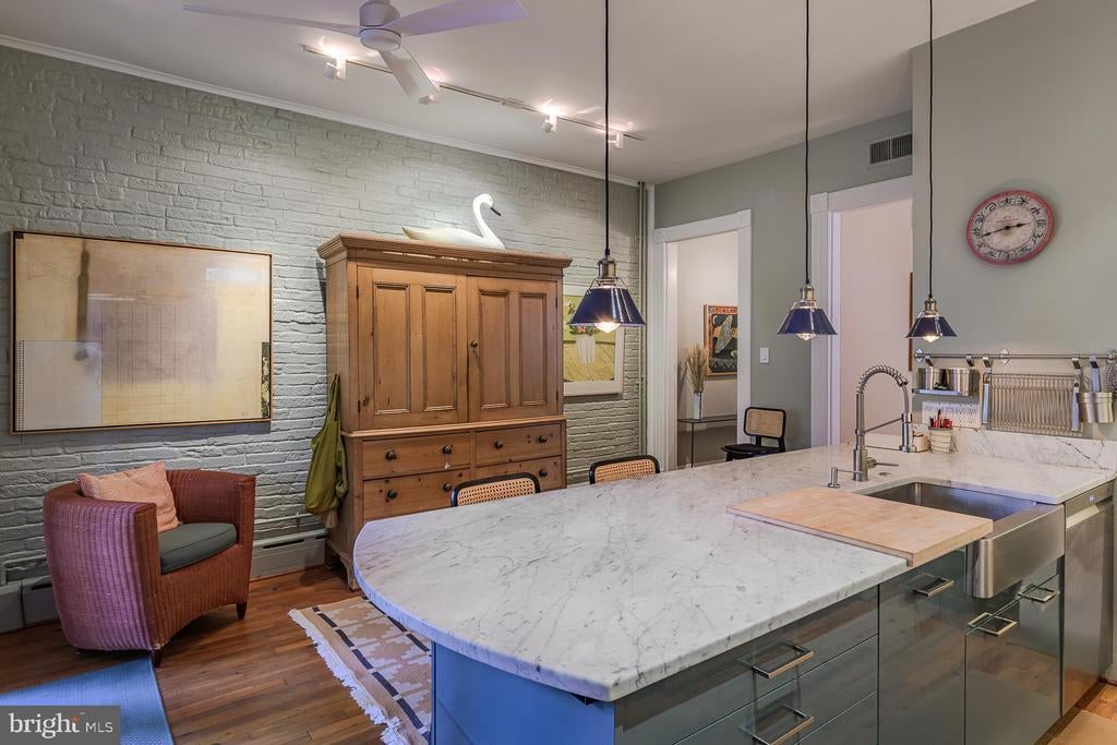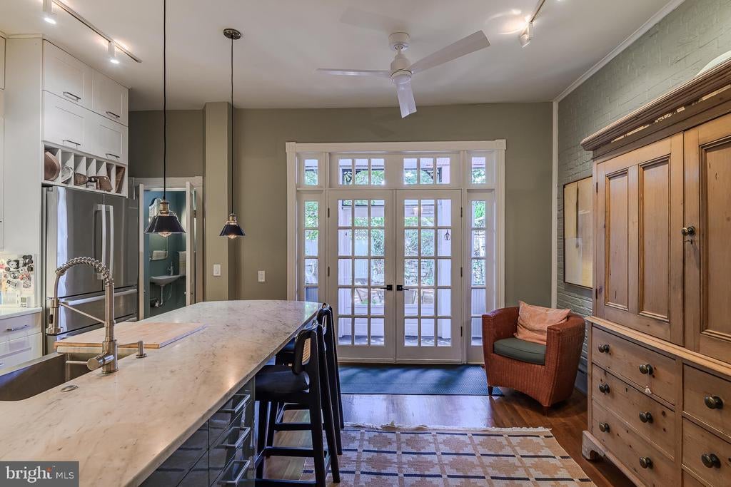 Price reduced $100K! Elegant 2.5-story semi-detached townhouse in the Capitol Hill Historic District blends historic charm with modern updates. Sun-filled with windows on 3 sides and 10-ft ceilings. Main level offers bay-windowed living room with fireplace, large dining room with pocket doors, and renovated kitchen with Bosch & GE Café appliances, marble counters, and island. Screened porch opens to private brick patio with gardens and shed. Upper level has primary suite with skylit bath, 2 add’l BRs and full bath. Lower level efficiency suite with kitchen, bath, fireplace, and private entrance—great for guests or short term rental. Updates include roof, skylights, AC, windows, appliances, and lighting. Steps to Stanton Park, Union Station, Supreme Court, Eastern Market & H Street dining.