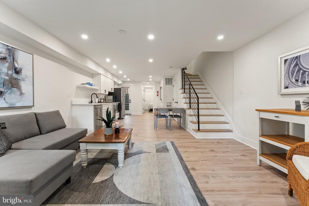PRICE REDUCTION ON THIS PRISTINE PORCH-FRONT LOCALE - Live in Luxury, perfectly positioned halfway between lively H Street and thriving Union Market! Step inside to a sun-drenched sanctuary, where meticulous millwork and materials frame a bright, open floor plan and three TALL levels. The gleaming gourmet kitchen stands as the star - with tremendous counter and cabinet space and South-facing sink windows. Flow beyond to the rear bonus room featuring a dramatic 3-panel glass wall and sliding door to deck, patio, and secure parking area. Upstairs, three big bedrooms with a true primary suite retreat - soaring 14-foot VAULTED CEILING, oversized walk-in closet, and a spa-like bath. The fully finished lower level apartment features a fourth bedroom, full bath, convenient kitchenette, second laundry, and direct walk-outs front and rear. This crisp home -- a COMPLETE renovation just 2 years young - showcases curated finishes, smart systems, and premium features—including Wolf and Thermador appliances, energy-efficient windows, dual-zone HVAC, tankless water heater, custom lighting, and built-ins. Call to schedule a tour TODAY!