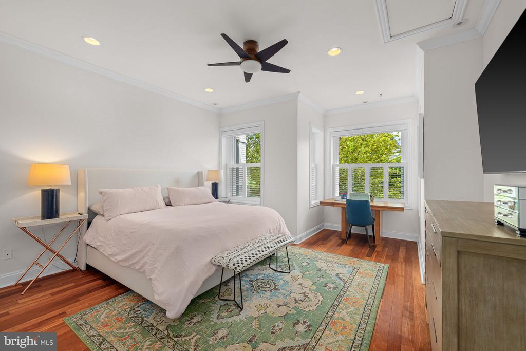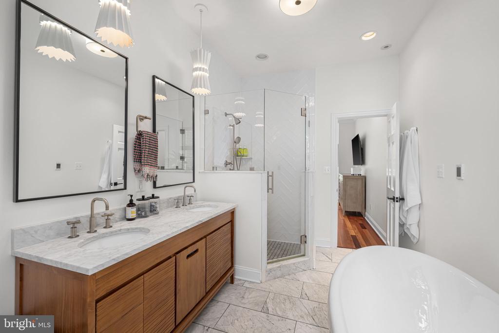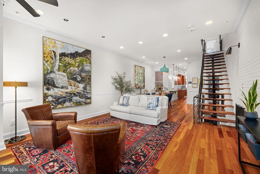 Welcome to 58 S Street NW, a meticulously renovated and exquisitely designed three-bedroom, two-and-a-half-bath row home located on a quiet, tree-lined block in the heart of Washington, DC’s sought-after Bloomingdale neighborhood. This high-end residence offers an unparalleled blend of luxury, craftsmanship, and modern sophistication—perfect for the discerning buyer. From the moment you enter, you'll be captivated by the thoughtful attention to detail. Wide-plank cherry flooring, custom millwork, and sleek designer finishes set a refined tone throughout. The open-concept main level is ideal for entertaining, featuring a spacious living area, a generous dining space, a convenient powder room, and a truly exceptional chef’s kitchen outfitted with top-of-the-line stainless steel appliances, granite countertops, and custom cabinetry. Upstairs, one finds two luxurious bedrooms, including a primary that offers a spa-like en-suite bathroom with marble tile, glass-enclosed showers, and floating vanities. The lower level offers the option of a third bedroom space, features an additional powder room that could easily be converted to a full bath, and a dedicated laundry room. Step outside to a beautifully landscaped private patio —perfect for dining al fresco or relaxing with a glass of wine under the stars -- and off-street parking. Located just blocks from popular dining like Big Bear Cafe, Red Hen, Boundary Stone (and so many more), local markets, and neighborhood parks, 58 S Street NW is the epitome of refined urban living. Don’t miss your chance to own this exceptional property in one of DC’s most vibrant and connected communities. Schedule your private showing today.