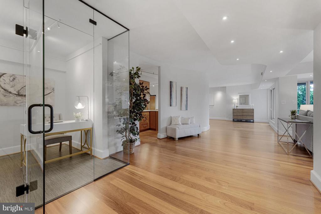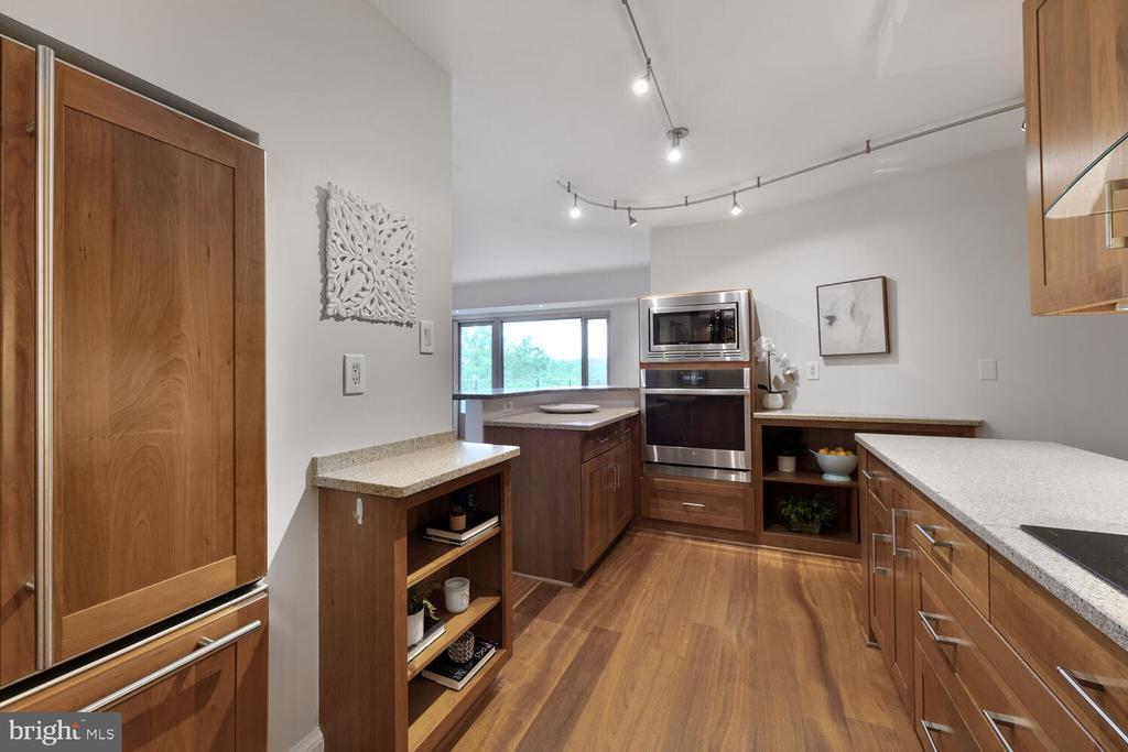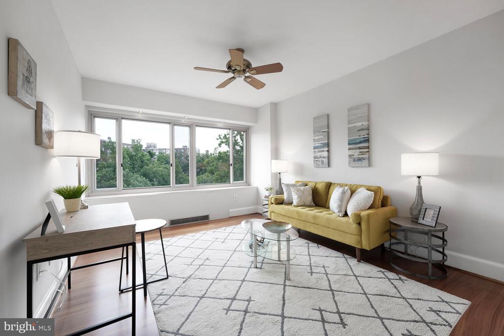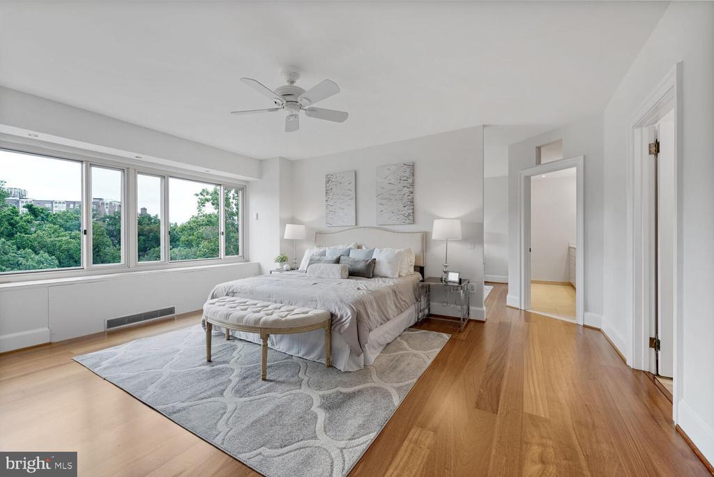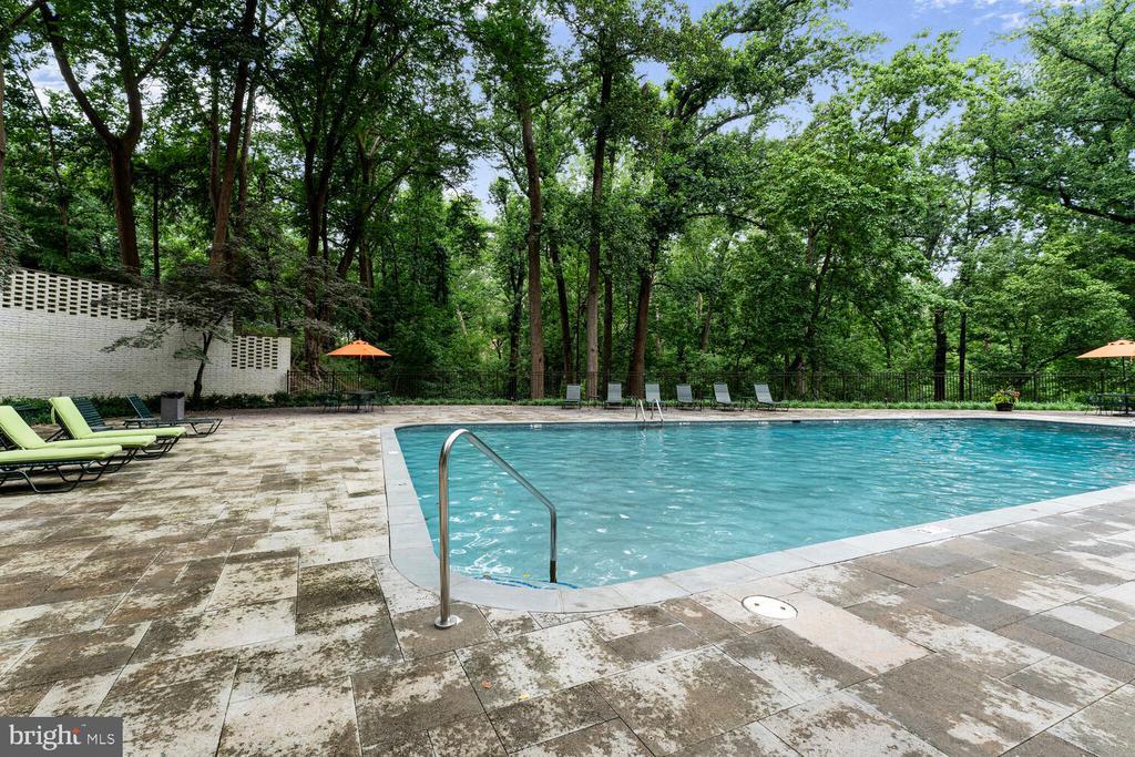 Drop dead gorgeous...this one will exceed all your expectations! Stunning 3 bedroom, 2 1/2 bath in luxury building with 24 hour front desk. One level–perfect flow for entertaining plus tree top views all around. Gracious foyer with two large closets, generous living room, kitchen with curved breakfast bar and pantry, dining room with wall of deep storage, sitting room, powder room and balcony. Enjoy the sparkling light from the large windows and the warm glow of the cherry wood. Primary bedroom with two walk-in closets, second bedroom with pocket doors, third bedroom/ office den, separate laundry room with sink, counter and cabinets. Two convenient garage parking spots plus two storage spaces, fitness center, and bicycle storage available. Two cats permitted. The pool area is an amazing oasis which stays cooler even in the hottest days of summer thanks to the surrounding national park. Amazing location close to trails, a bus stop right in front of the building, grocery stores, restaurants shopping and more!