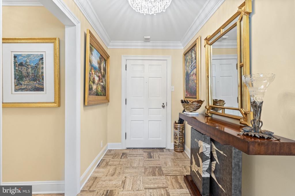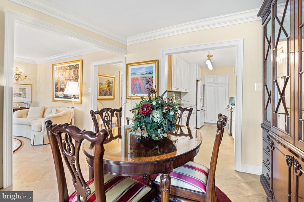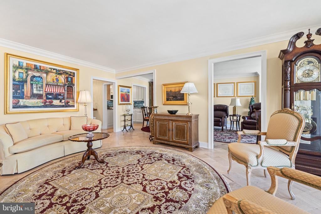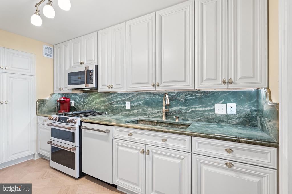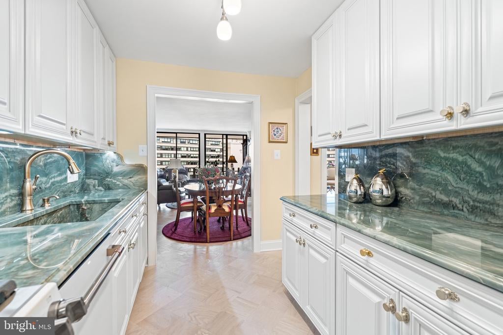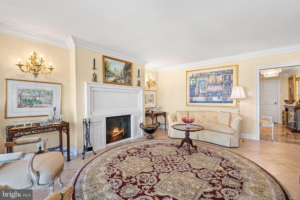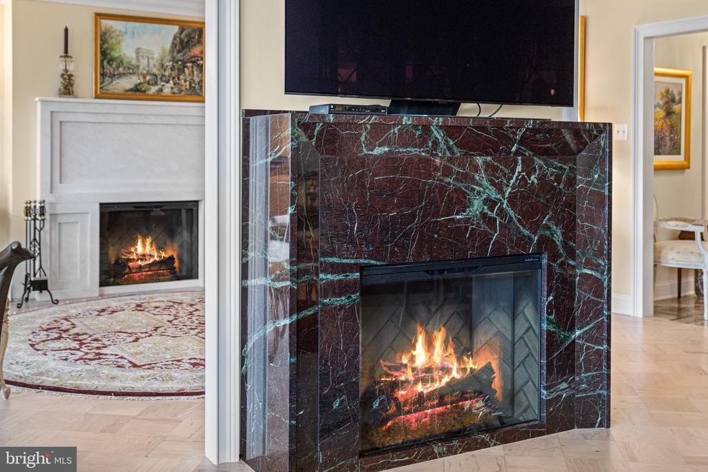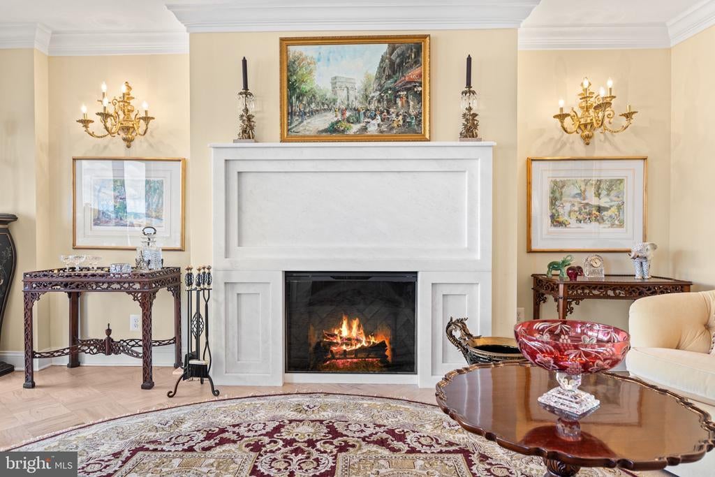 Renovated river view residence. 1338 square feet. 1 bedroom, 1 & 1/2 bath. • Over 35 foot long balcony across entire perimeter facing the Potomac River and Georgetown waterfront. • New energy efficient floor-to-ceiling windows. • Separate dining area and den space. • Two Dimplex Revillusion 36" electric fireplaces with marble surround and remote control feature. • Gourmet kitchen with Quartzite (Stella Maestro) counters, back splash and integrated sink, GE Monogram appliances, Kraft Maid cabinetry, beautiful fixtures. • Superb appointed baths featuring stunning marble walls, granite counters with integrated Cambria sinks, large vanities and hand picked hardware. White cabinetry storage in second bath and designer flooring. Primary bath features spa shower, marble flooring. • Ample Custom California closet systems. • New Marvin interior doors and crown molding. • Light refinished oak parquet floors. Additional storage room. One underground garage space included. Fee includes property taxes, utilities, maintenance of HVAC, basic cable, internet, and parking. Watergate South amenities include 24-hour front desk & doorman service, outdoor saltwater pool & grill, newly renovated fitness center, newly renovated community room, beautifully landscaped gardens, roof terrace, dog spa room, plus on-site shops & restaurants. Walk to Foggy Bottom Metro, Kennedy Center, Whole Foods, and Georgetown Waterfront. High walk score near shopping, restaurants, Watergate Hotel, and many more conveniences.