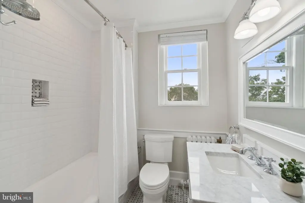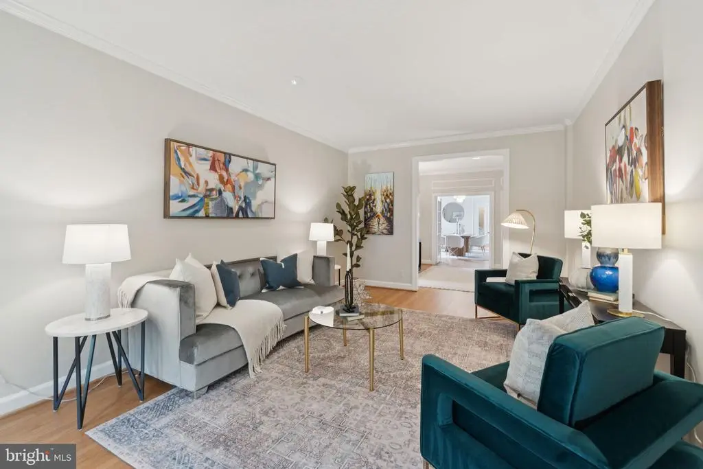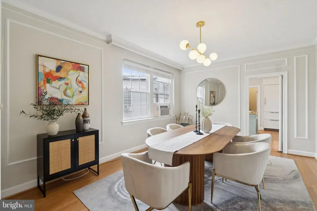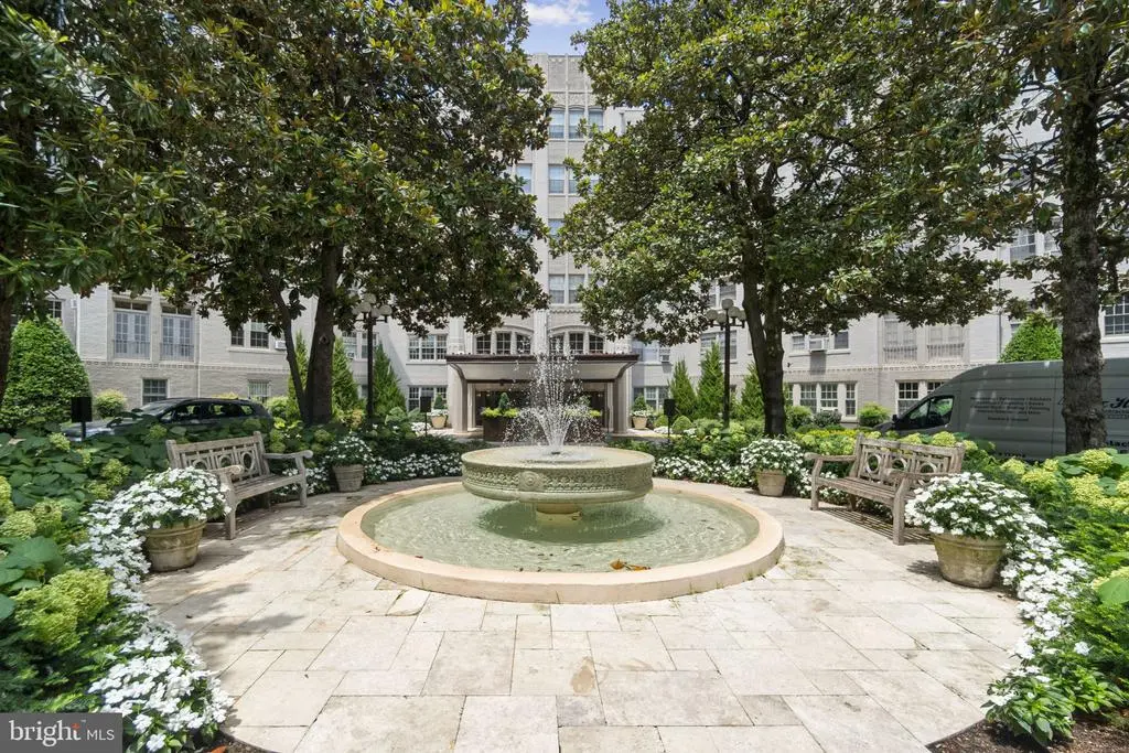 Find your spacious NW DC sanctuary in one of James Goode's "Best Addresses" landmark buildings designed by Louis T. Rouleau in the golden age of Connecticut Avenue corridor Architecture. A cool and leafy retreat, this fully renovated, top floor 2-bedroom 2 full bathroom condo in the renowned Aztec Art Deco Woodley Park Towers overlooks tranquil Klingle Valley, yet is only a short stroll from the charming, town-like Cleveland Park and Woodley Park shops and Metros as well as the National Zoo and the National Cathedral. The residence features a sun-filled solarium expanding on a spacious living room, entry foyer with a walk-in coat closet, and a sunny formal dining room all with re-finished oak floors, grand pointed arches and 9'+ ceilings. The thoughtfully renovated kitchen features a charming arched window architrave, solid wood cabinetry, stone counters, built-in Liebherr refrigerator, butler pantry and separate service entrance. The primary suite continues the treehouse theme with canopy views, a beautifully renovated marble bathroom and a large, walk-in closet. One must see it to experience the smart layout and flow that this unit has to offer. The doorman building also boasts a park-side patio within earshot of the babbling creek, featuring grills and a community herb garden for the last minute bouquet garni. It also features a 24-hour concierge, reasonable rental parking, unparalleled onsite management, formidable reserves, exercise rooms, saunas, party room, separate storage and more. Dogs of all sizes and cats are allowed; the WPT pet co-op is very popular with pet owners. And don't forget about the easy access to the Klingle Valley Trail and Tregaron Conservancy; not one, but two peaceful, natural oases in your backyard. Do not miss the very best that DC apartment living has to offer!