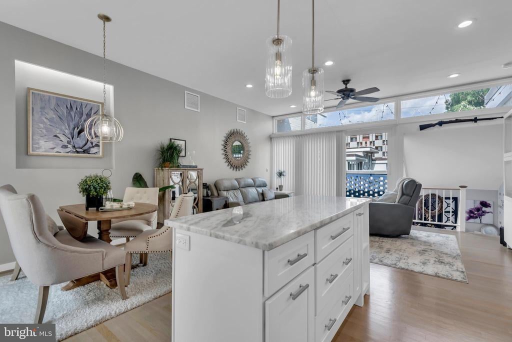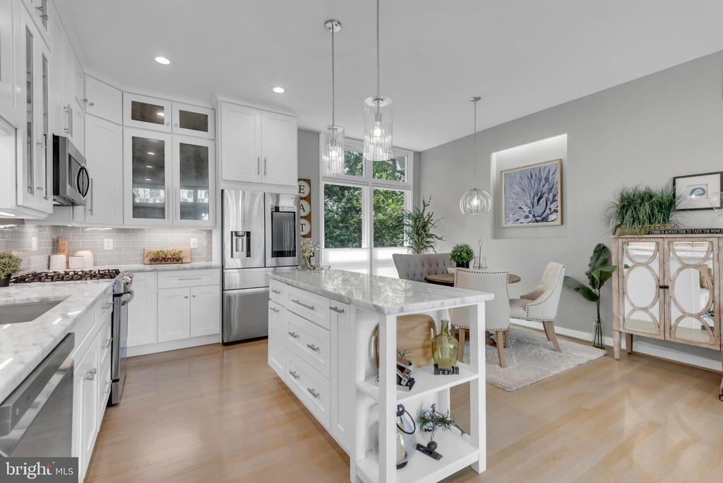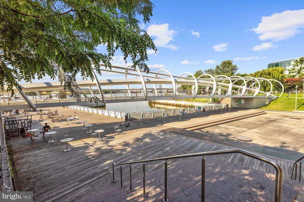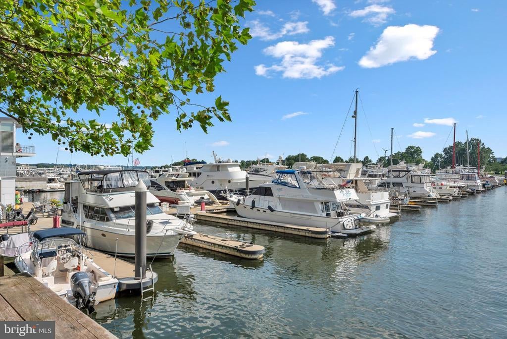 City Living at its best within a Sylvan Setting. This beautiful three-level brick townhouse in the exciting Southwest Waterfront neighborhood is undoubtedly the best on the block! With 3 bedrooms and 3 full baths, this home provides immaculate living areas with optimized use of space. A simply stylish open floor plan has a well-appointed gourmet kitchen, separate dining area, large living room, wood floors, floor to ceiling windows, and a very private deck accessible through sliding glass doors. The second level boasts 2 spacious bedrooms, 2 full bathrooms (one ensuite), wood floors, large windows, walls of closets, and full sized washer & dryer. This townhouse model in Capitol Park IV Condominium Association has a unique feature; a lower level studio, au pair suite, or family room with walk out to private patio. Added Bonus: 2 dedicated parking spaces. The Wharf, The Yards, and Buzzard's Point all provide numerous options for dining, shopping, and relaxing by our two rivers. The Anthem Music Venue, world-renowned Arena Stage, Nationals Ballpark, and Audi Field are all close neighbors. Just .2 miles from Federal Center SW metro stop and .4 miles from Waterfront Station, the Orange, Blue, Silver, and Green Lines are just steps away. Virginia Railway Express is .8 miles away. Major highway routes to get you out of town quickly are all around. Capitol Park IV is a well run and pet friendly community.