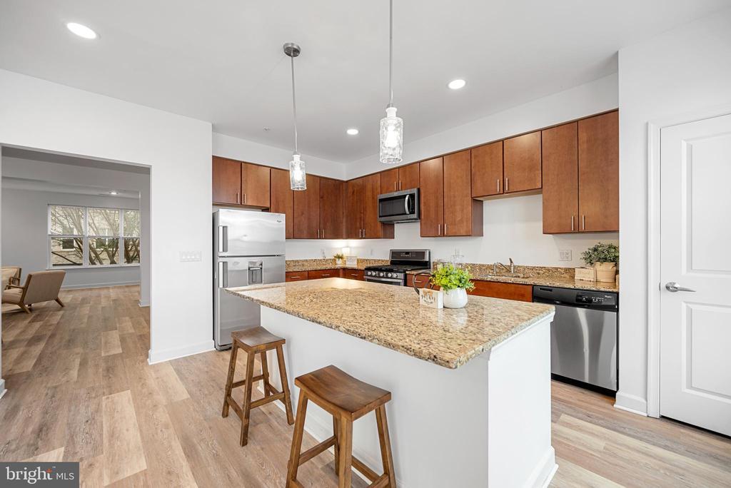 Beautiful townhome-style condo in Sheridan Station! On the main level, an open floorplan with brand new luxury vinyl plank flooring and fresh paints creates a warm, cohesive flow throughout the living and dining areas. The spacious kitchen features rich wood cabinetry, stainless steel appliances, and sleek granite countertops, with an oversized island breakfast bar that opens seamlessly into the living space—perfect for both everyday meals and entertaining. Upstairs, three generously sized bedrooms with new carpeting offer ample storage, including a comfortable primary suite, while two full bathrooms provide modern style and convenience. Enjoy the convenience of an attached garage for easy parking and Anacostia Metro Station less than half a mile away makes commuting a breeze. Just minutes to Harris Teeter, Giant, Barry Farm Recreation Center, The Wharf, Nationals Park, Audi Field, Navy Yard, Joint Base Anacostia-Bolling, and The Pentagon. Quick access to Suitland Parkway, I-395, Route 1, I-295, I-695, GW Parkway, and Route 66. Schedule a private tour of your gorgeous new home today!