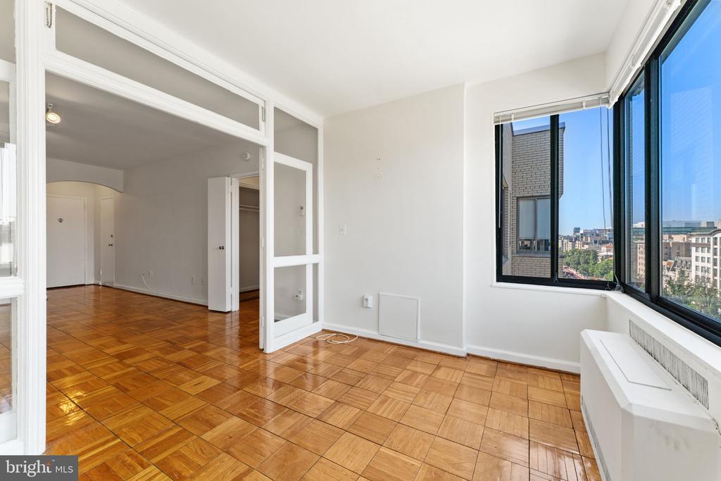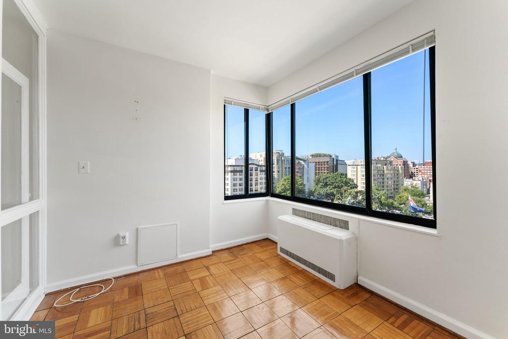Bright and inviting junior one-bedroom condo in the historic General Scott building, ideally located between Dupont Circle and Logan Circle — just five blocks north of the White House. This 8th-floor unit offers southwest-facing views of Scott Circle and features classic parquet wood floors, a defined sleeping area with a glass wall separator and French doors, and a smart, space-efficient layout. The unit includes three generously sized closets — two of them walk-in — including one off the living room near the bathroom, offering excellent storage. A light-filled bathroom and open living area complete the thoughtfully designed interior. The building features a 24-hour front desk, a landscaped green roof deck with sweeping city views, and condo fees that include heat, A/C, water, and more (electricity excluded). Exceptional location with a Walk Score of 98 — close to three Metro stations, Whole Foods, top restaurants, gyms, and shops. Ideal for a low-maintenance city home or pied--terre. Don’t miss this rare opportunity to own in one of D.C.’s most sought-after neighborhoods — at an exceptional value.