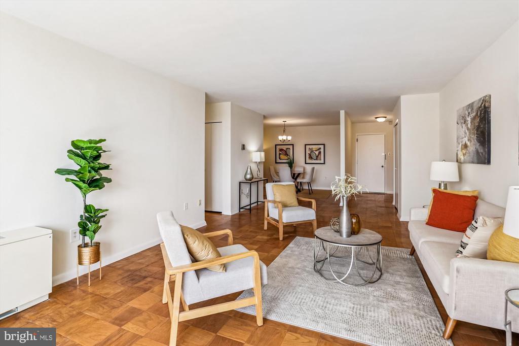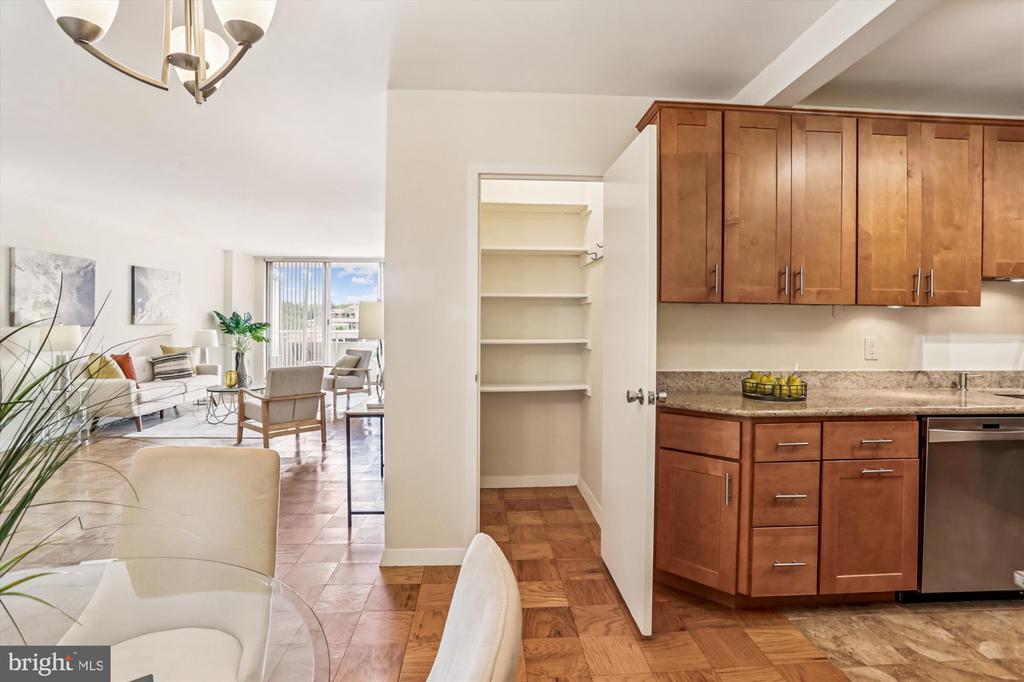 Price adjustment in accordance with motivated seller's instructions!!! Take advantage of this opportunity to acquire this impeccably renovated and maintained unit. #1508 is perched on a high floor, offers a sun-filled western exposure and a comfortable lifestyle and location. Featuring an oversized living room and dining room, two renovated baths, two generous bedrooms and a gourmet kitchen with abundant cabinet and counter space, you'll also discover excellent closet space including not one but two walk-in closets. Hardwood floors throughout main living space and ceramic tiled kitchen floor are welcome additions to this comfortable new home. With friends and family, you can enjoy a morning coffee or a sunset filled cocktail hour from your balcony. VNNC offers a rich amenity package including 24-hour front concierge desk and security, an in-house library, fully-equipped fitness center, two outdoor pools, men's and women's saunas, a generous party/meeting room with full catering kitchen, laundry facilities on each floor and underground access via Giant to METRO is just steps away. Residents are invited to join community activities -- among them a vegetarian supper club, free movie nights, book clubs, and current event discussion groups. Conveying with the unit are an underground garage space and secure additional storage area. You have discovered not just a place to live but a community to enjoy and an enviable lifestyle!