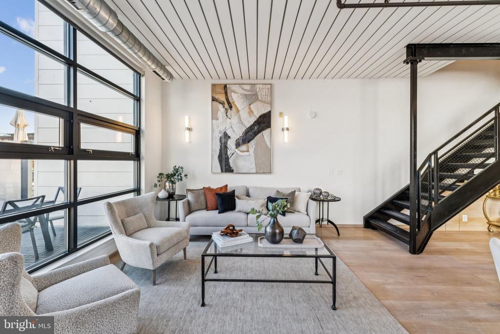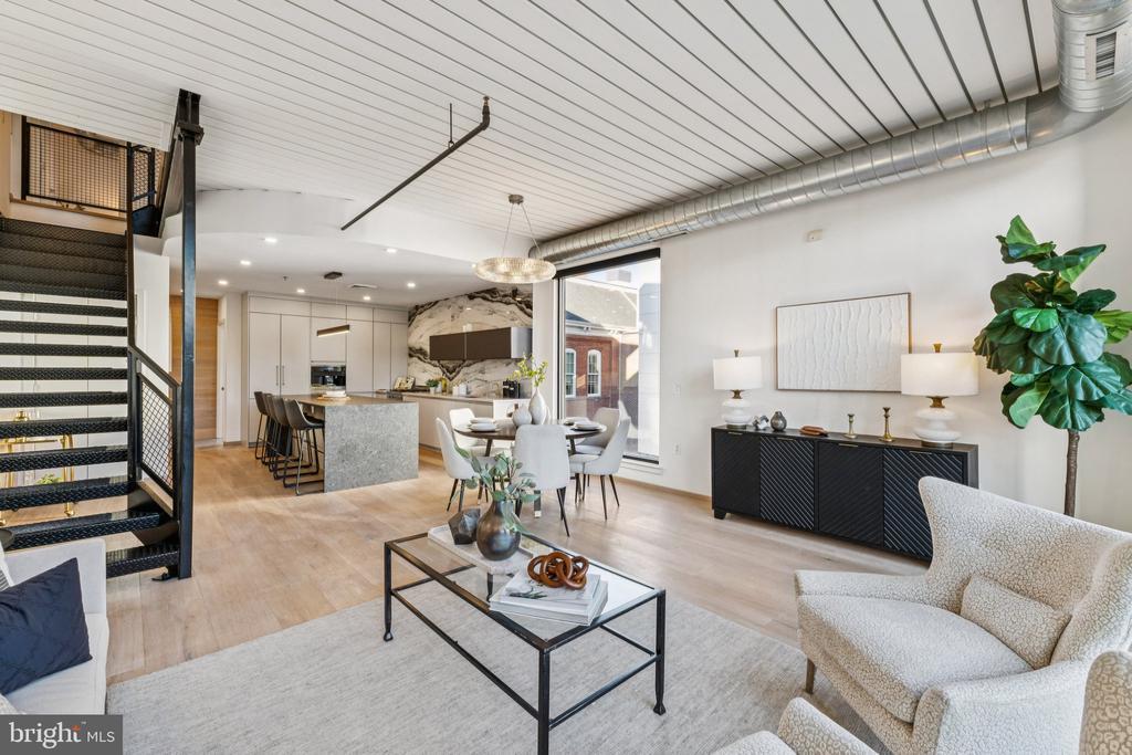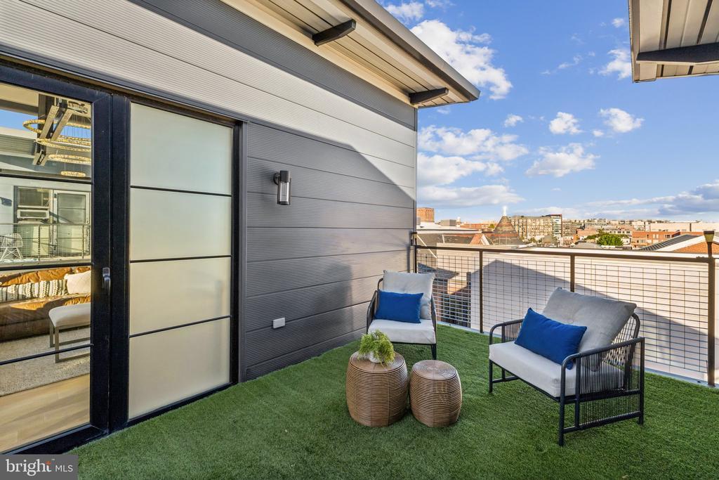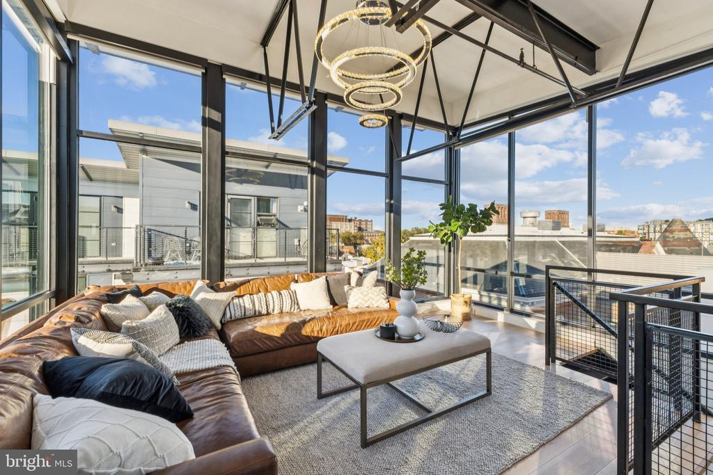 Truly spectacular! The trophy unit in the Warehouses at Union Row, this expansive 3 bedroom 3 bathroom penthouse is the epitome of luxury city living. The nearly 2200 sqft of living space coupled with an additional 471 sqft of private outdoor space combines the interior space of a single family home with the natural light, expansive views, and convenience of a penthouse condo to create a one-of-a-kind living experience. A perfectly located guest bedroom with full spa bathroom near the front door allows guests to come and go with ease. A chef’s kitchen features large slab backsplash, a Bertazzoni range and a built-in Mielle espresso machine. The seamless transition from kitchen, to dining and living areas creates an immersive space defined by open-concept living at its finest. An entertainer’s dream the floor-to-ceiling windows, open layout, and two distinct outdoor spaces are perfect for large or intimate gatherings. Take the party upstairs to the third floor “Sky Box” complete with wet bar, mounted tv, motorized shades and 360 degree views of the city. On the second floor you will find 2 bedrooms and 2 baths including a 2 story owner’s suite with loft space that connects to a second outdoor terrace and the third floor Sky Box. Make the loft into an office, reading nook, yoga studio, the possibilities are endless. Walk-in closets include custom built-ins. Luxury designer finishes complete the upgrades to both second floor bathrooms. In-unit washer and dryer, central air-conditioning and a handicapped garage parking space (Space #41) provide all the modern conveniences. This is the largest and most unique unit in Union Row. Perfectly situated at the intersection of Logan Circle and U ST, the location is unbeatable. Sample the eclectic lineup of award-winning restaurants and bars along 14th or U Street. Easily run every day errands with Whole Foods and CVS just outside your door. Enjoy all of the unique small businesses and shops that both 14th St and U ST have to offer. Reach other notable DC destinations within minutes on foot or by Metro. A home that has the best in both luxury and location, this penthouse is proof that your next investment can truly have it all.