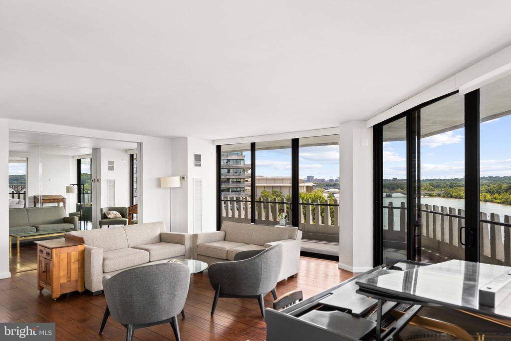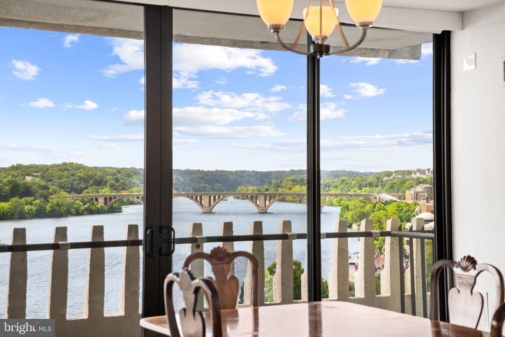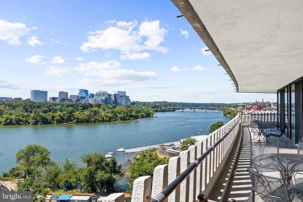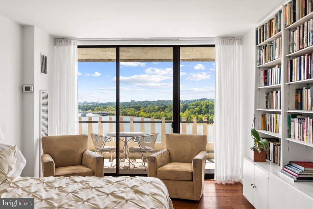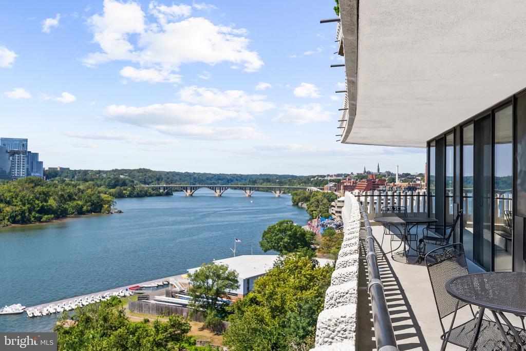 Sweeping, unobstructed views of the Potomac River, Key Bridge, Roosevelt Island, Georgetown Waterfront, the Kennedy Center, and spectacular sunsets surround this stunning residence. With 2,690 square feet of interior space and over 500 square feet of balcony, the home is wrapped in floor-to-ceiling windows that offer breathtaking vistas up and down the river from every main room. This rare and highly desirable floor plan flows naturally with the contours of the river, creating a seamless connection between indoors and out. The layout includes 4 bedrooms, with one converted to a library/den featuring a custom-designed bar area. The spacious, open-concept living and dining room is perfect for both everyday living and elegant entertaining. A large chef’s kitchen offers ample space for culinary creativity. The smaller bedroom is thoughtfully separated from the others, making it ideal for a private guest suite or a quiet home office. The monthly fee covers all-inclusive living—property taxes, all utilities, HVAC maintenance, basic cable, internet. Watergate amenities are second to none: 24-hour front desk and doorman, outdoor saltwater pool with grilling area, newly renovated fitness center and community room, rooftop terrace, dog spa, beautifully landscaped gardens, and on-site shops and dining. Unbeatable location with a high Walk Score—steps to the Foggy Bottom Metro, Kennedy Center, Whole Foods, Georgetown Waterfront, and more!