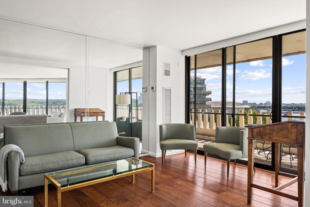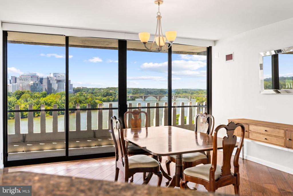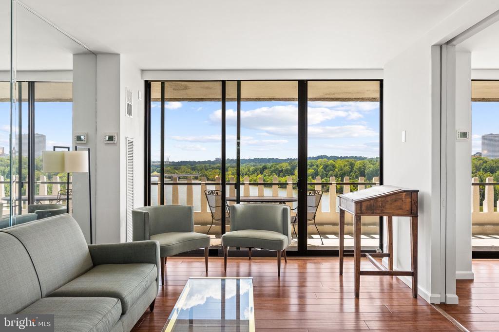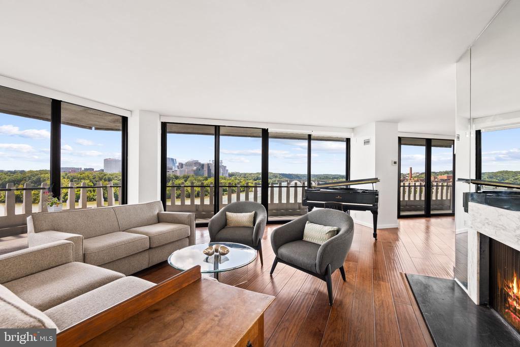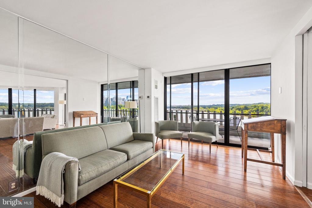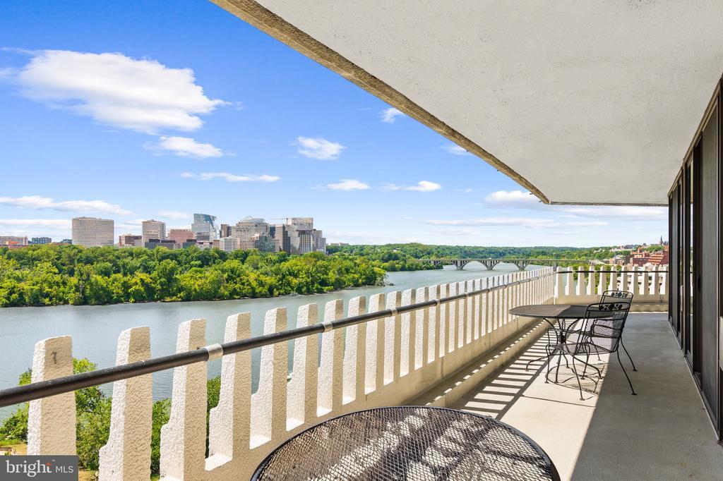 Sweeping, unobstructed views of the Potomac River, Key Bridge, Roosevelt Island, Georgetown Waterfront, the Kennedy Center, and spectacular sunsets surround this stunning residence. With 2,690 square feet of interior space and over 500 square feet of balcony, the home is wrapped in floor-to-ceiling windows that offer breathtaking vistas up and down the river from every main room. This rare and highly desirable floor plan flows naturally with the contours of the river, creating a seamless connection between indoors and out. The layout includes 4 bedrooms, with one converted to a library/den featuring a custom-designed bar area. The spacious, open-concept living and dining room is perfect for both everyday living and elegant entertaining. A large chef’s kitchen offers ample space for culinary creativity. The smaller bedroom is thoughtfully separated from the others, making it ideal for a private guest suite or a quiet home office. The monthly fee covers all-inclusive living—property taxes, all utilities, HVAC maintenance, basic cable, internet. Watergate amenities are second to none: 24-hour front desk and doorman, outdoor saltwater pool with grilling area, newly renovated fitness center and community room, rooftop terrace, dog spa, beautifully landscaped gardens, and on-site shops and dining. Unbeatable location with a high Walk Score—steps to the Foggy Bottom Metro, Kennedy Center, Whole Foods, Georgetown Waterfront, and more!