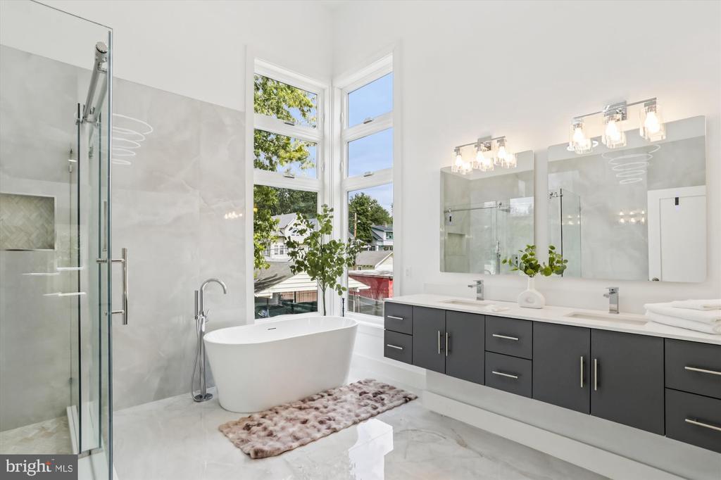 Welcome to 1341 Ingraham Street NW, a completely redesigned and expanded Craftsman Bungalow—where everything is brand new! This extraordinary home offers an unparalleled opportunity to live in style and comfort within an idyllic, park-like setting in the coveted 16th Street Heights neighborhood, with easy access to all its wonderful amenities. Designed for both entertaining and everyday living this residence highlights fine architectural details, including gorgeous wood flooring, recessed lighting, porcelain-tile bathrooms, a magnificent quartz chef’s kitchen, 4.5 baths and inviting outdoor space. The front exterior offers a welcoming covered porch with a tongue-and-groove ceiling, synthetic decking, and a stamped paver walkway. Inside, the main level boasts a convenient mudroom area with cubbies and hooks, a light-filled living room with a striking gas fireplace, and a professional-grade kitchen with an expansive center island that opens to the dining and family room area, complete with two sliding doors leading to the rear yard. The outstanding kitchen includes exquisite quartz counters with intricate veining, LG stainless-steel appliances, a French door refrigerator, Shaker cabinetry with soft-close drawers, textured subway tile backsplash, ample prep space, a pantry, a gas range with a built-in griddle, and an exhaust hood. The main level is complete with a powder room featuring fluted wood tile and an elegant transom window. The second level offers three bedrooms and three full bathrooms (two of the bedrooms are en-suite), as well as the convenience of an upper-level laundry room. The luxurious primary suite includes a large walk-in closet with an organizing system, serene backyard views, and a spa-inspired bathroom with porcelain tile walls, chevron tile accents, a free-standing tub, floating double vanity with a smart mirror, and a glass-enclosed walk-in shower with a niche. The secondary bathrooms are equally impressive, featuring refined wood vanities and porcelain tile design. The third level features a versatile bonus room / den with wood flooring and treetop views. The lower level includes a bright recreation room with recessed lighting, abundant natural light, and a quartz wet bar. A full bathroom and under-stair storage complete this level. Unparalleled quality craftsmanship and refined finishes—all on a picturesque lot! The fenced backyard offers green space and access to the stamped paver parking surface. Tucked between the energy of downtown D.C. and the natural beauty of Rock Creek Park, 16th Street Heights offers the best of both worlds. This welcoming neighborhood is known for its tree-lined streets, spacious front porches, and strong sense of community. Residents enjoy a peaceful, residential atmosphere without sacrificing proximity to city life—plus, they’re just moments from outdoor escapes like the Fitzgerald Tennis Center and Rock Creek Parks scenic trails. It’s a neighborhood that feels like home the moment you arrive.