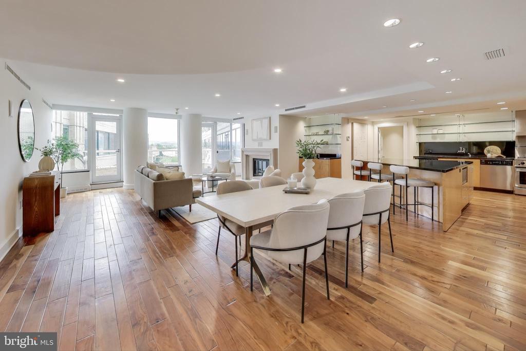 Incredible value and price reduction in this one of a kind building - Come make this beautiful condo yours! Rare luxury boutique residence. This condominium offers a blend of refined style and effortless livability, set within Washington Harbour’s iconic waterfront setting. Step inside to a vast, light-filled living and dining space anchored by a beautiful fireplace, the perfect spot to gather on cool evenings or enjoy a quiet glass of wine by the fire. The huge chef’s kitchen is designed for both grand entertaining and daily ease, with expansive counters, large kitchen island with seating, high-end appliances, and a natural flow that keeps you connected to your guests. The kitchen opens seamlessly to a light filled living and dining area, creating an airy flow perfect for large dinner parties or quiet evenings. Here you will also find one of the two balconies to enjoy a morning coffee and fresh air. The main level primary suite is a serene retreat with a spa-caliber bath and two large closets with custom organizers. The dramatic loft serves as the second bedroom and a fully appointed office. Outfitted with built-in shelves, a Murphy bed, and a private full bath. The loft also boasts its own balcony, a convenient mini bar and refrigerator, and a striking vaulted ceiling with uplighting and a skylight that bathes the space with sunlight. This boutique building delivers white-glove service and concierge standards that appeal to the most particular buyers: discreet staff, meticulous common areas, and a level of attention that elevates everyday life. Located at Washington Harbour, you’re minutes from waterfront dining, waterfront promenades, and the best shops and cultural offerings of Georgetown — a true combination of urban sophistication and serene riverside charm.