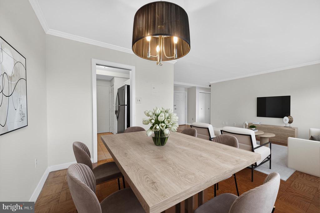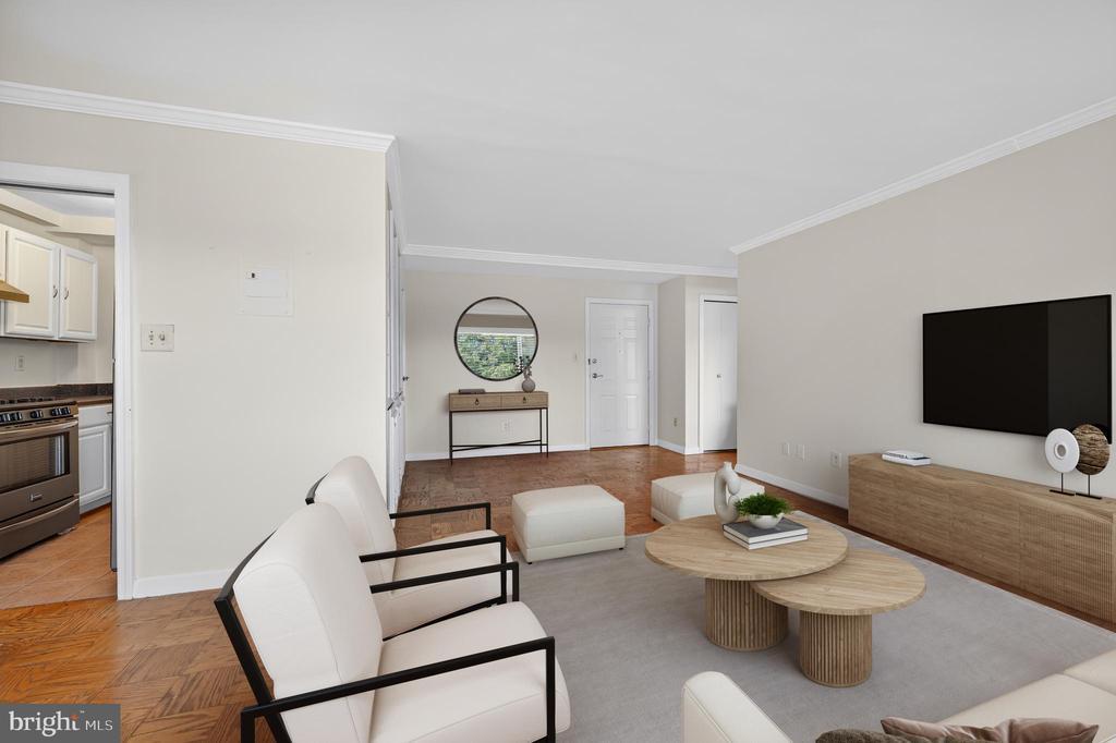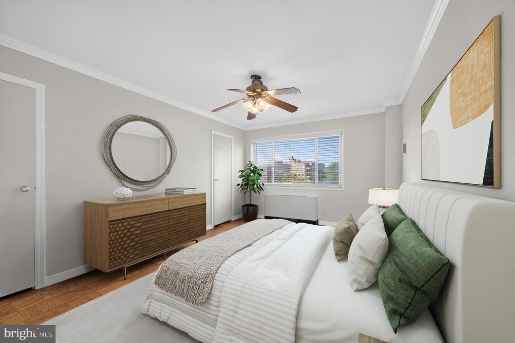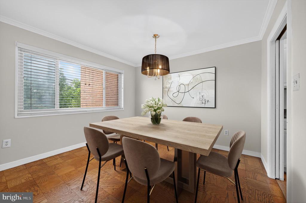 Beautiful top-floor 1-bed, 1-bath coop unit in Glover Park featuring fresh paint (2025) and presented with elegant parquet flooring throughout the living, dining and bedroom areas. Updated kitchen boasts newly painted white cabinets (2025), generous storage, gas cooking, and stainless steel appliances. The spacious living room is complemented by attractive built-in shelving, providing both character and practicality with adjoining dining area. Along the hall lies a well-proportioned bedroom, enjoying ample natural light and benefitting from two closets, one of which is a sizeable walk-in. The tiled bathroom, complete with bath and overhead shower, is conveniently positioned, with additional hallway storage close by. The property further includes a basement storage unit and an allocated garage parking space (#22). Residents benefit from a range of amenities including a fitness room, communal laundry (currently being upgraded with new machines), bicycle storage, and a roof terrace boasting superb views across Washington, D.C. Pet-friendly community with number and size restrictions. Coop fee includes property tax, all utilities, underlying mortgage, building amenities, management, and master insurance. Perfectly located, this residence combines a peaceful setting to enjoy the serene tree-lined views and nearby paths. Easy access to the shops and restaurants of Wisconsin Avenue, and only moments from Georgetown, the Naval Observatory, the National Cathedral and more!