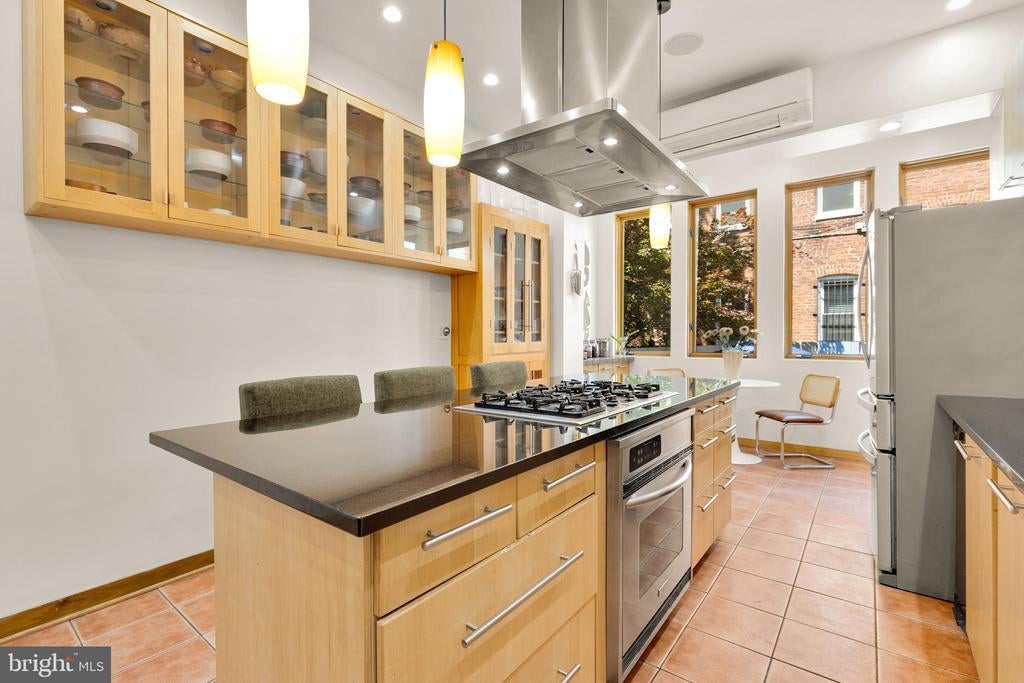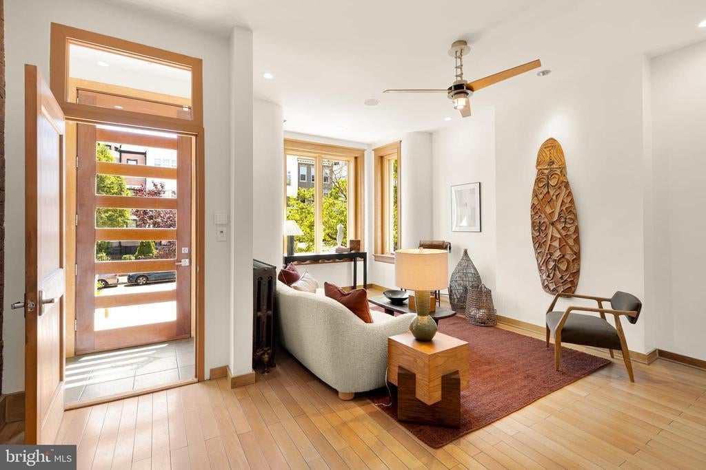 Mediterranean-Inspired Designer Residence with Timeless Elegance. This meticulously maintained and elevated four-level home seamlessly blends historic character with modern luxury across 3,825 square feet. High ceilings and abundant natural light enhance the smart layout, creating effortless flow throughout. The main level welcomes you with a spacious foyer that opens to generous living and dining areas. The gourmet chef’s kitchen features hand-painted Spanish tile, oversized island, and bespoke cabinetry, leading to a serene hardscaped patio. Find your way to the second floor where two sun kissed bedrooms await, including one with large living area and walk-in closet. Down the hall is a spa-like bathroom with soaking tub and standing shower that leads out onto a private balcony. The upper level is a dream, a stunning penthouse primary suite with vaulted ceilings, sitting area, and private rooftop deck boasting panoramic neighborhood views. Across the hall is a multifunctional room that could be an additional bedroom, office, studio, or fitness area. The finished basement offers endless possibilities — nanny / in-law suite, fifth bedroom, media room, or gym with dual walkout access to private garden patio. Truly a prime Washington DC location steps from acclaimed dining, boutique shopping, parks and grocery. Highlights: • Mediterranean-inspired architecture • 3,825 SF across four levels • Chef’s kitchen with multiple dining areas • Penthouse primary with vaulted ceilings • Finished basement with dual egress • Expansive rooftop deck with 360 city views What’s Nearby .4 Mi | Meridian Hill Park .4 Mi | Maydan .5 Mi | Streets Market .6 Mi | Whole Foods .9 Mi | Lost City Books