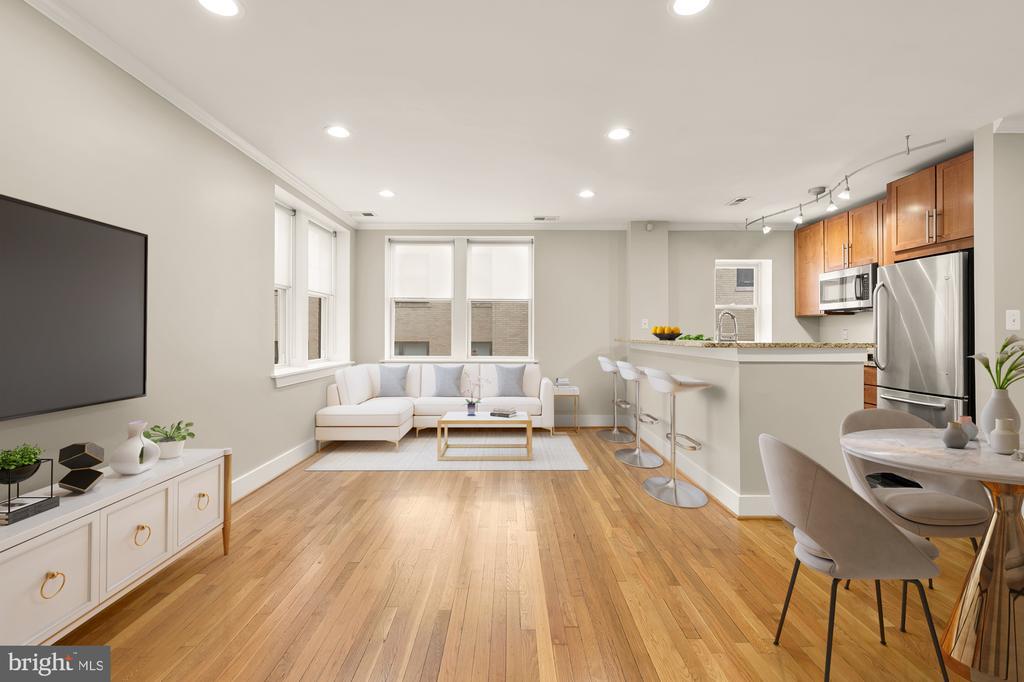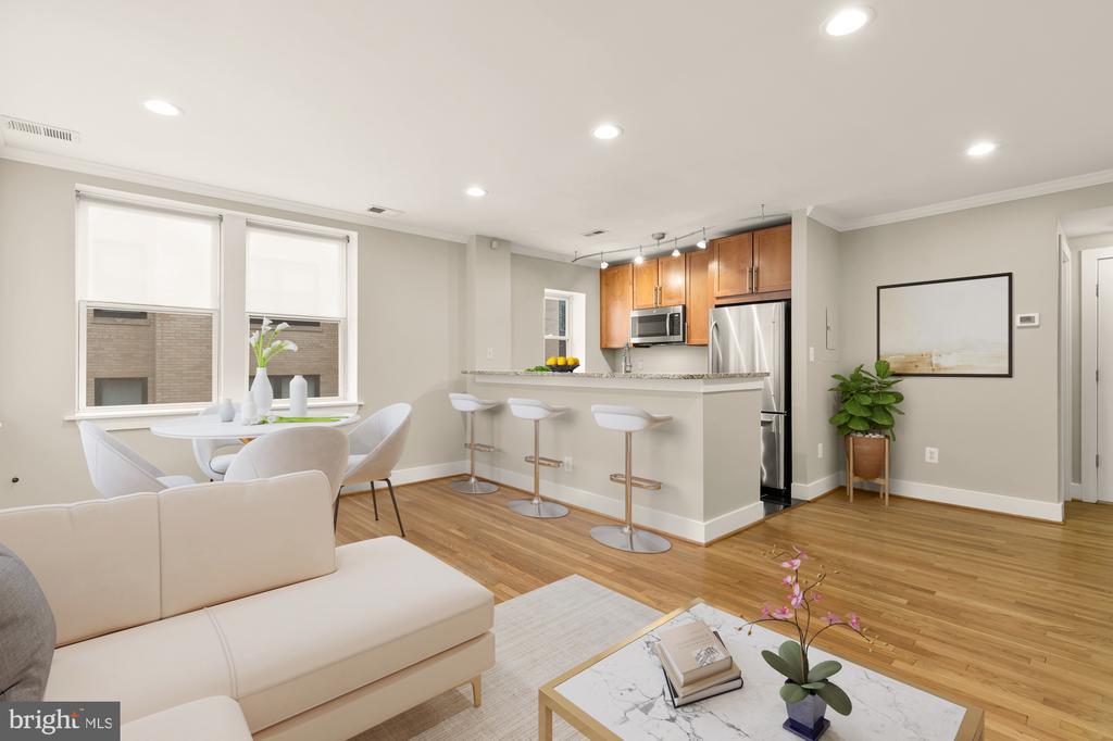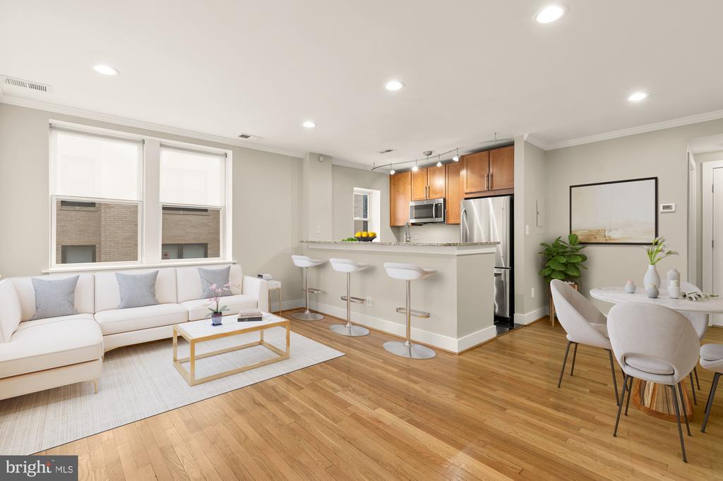 Price improvement! Stylish and spacious condo perfectly positioned between Adams Morgan and Columbia Heights. Designed for modern living, this open-concept residence features gleaming hardwood floors, abundant natural light, and a seamless flow from the living and dining area into the sleek gourmet kitchen. Outfitted with granite countertops, stainless steel appliances, and a breakfast bar, the kitchen is equally suited for quiet nights in or hosting friends. The bedroom offers comfort and convenience with a large walk-in closet, while the spa-inspired bath provides a touch of luxury. Enjoy the ease of in-unit laundry, generous storage, and access to a rooftop deck showcasing panoramic city views. From your doorstep, explore neighborhood amenities including Meridian Hill Park, Harris Teeter, and beloved dining destinations like Federalist Pig, Tail Up Goat, Maydan, and Lapis. Michelin-starred restaurants, vibrant nightlife, and the energy of Adams Morgan, U Street, and the 14th Street Corridor are just minutes away. With Metro only blocks from home, every part of the city is within reach.
