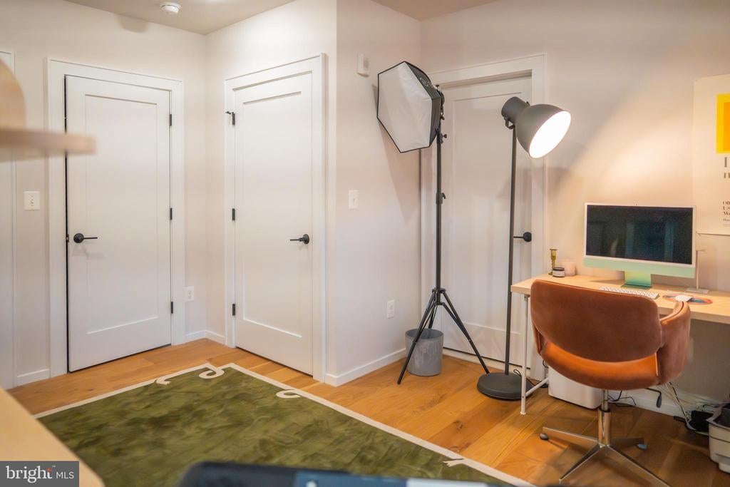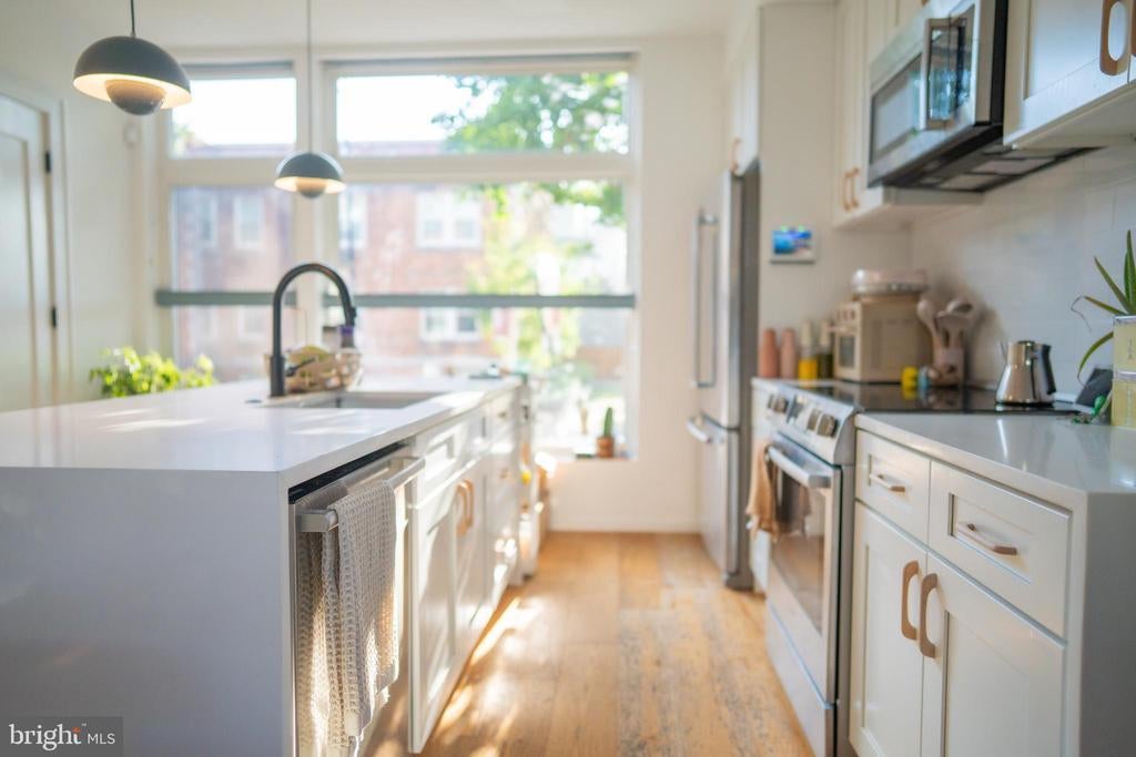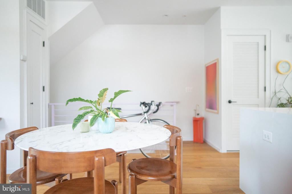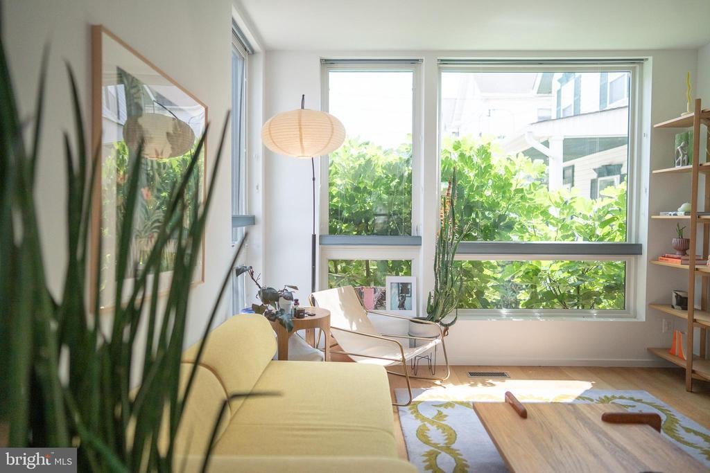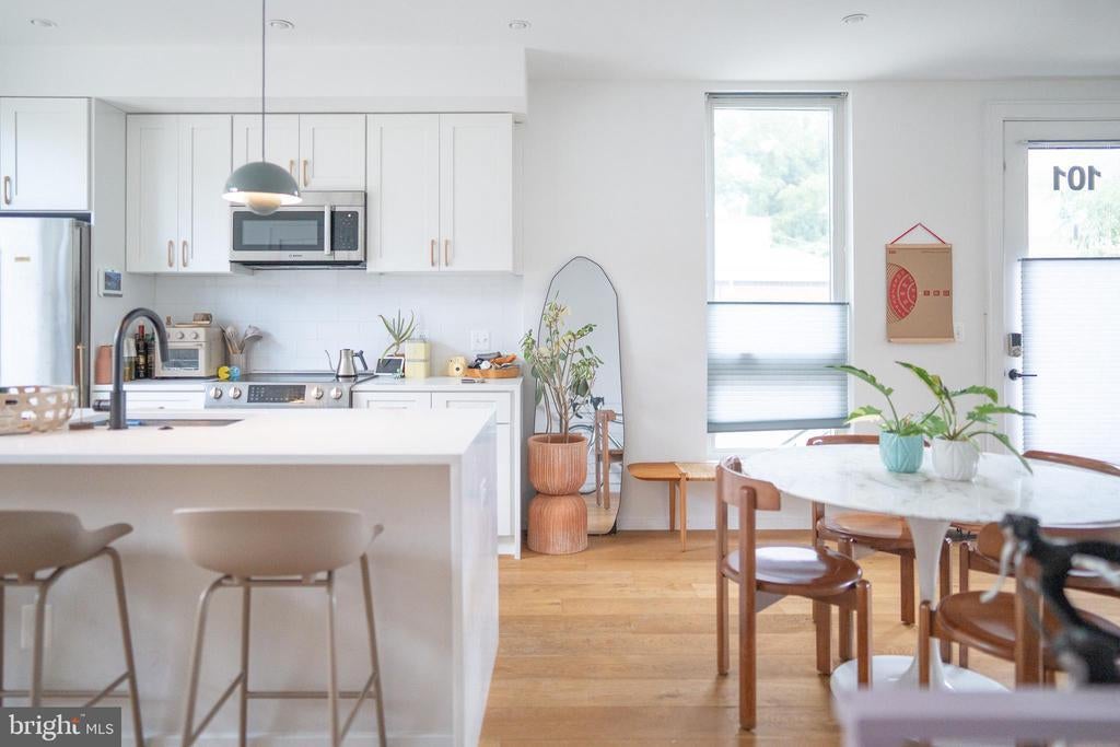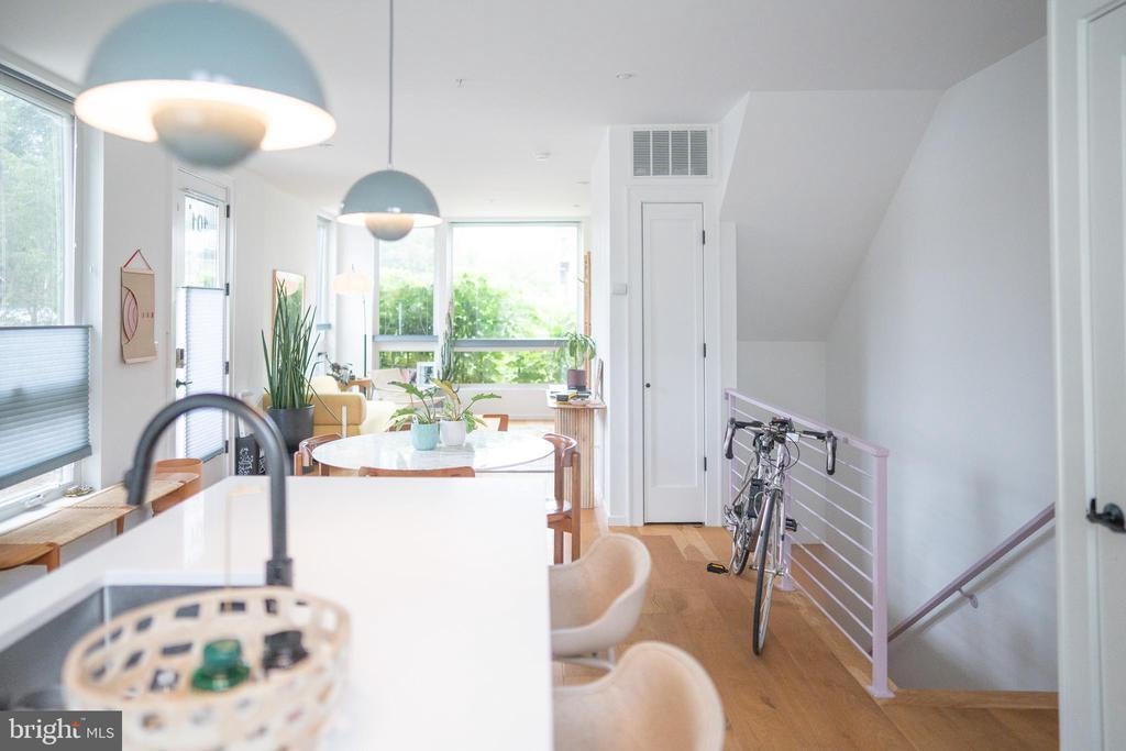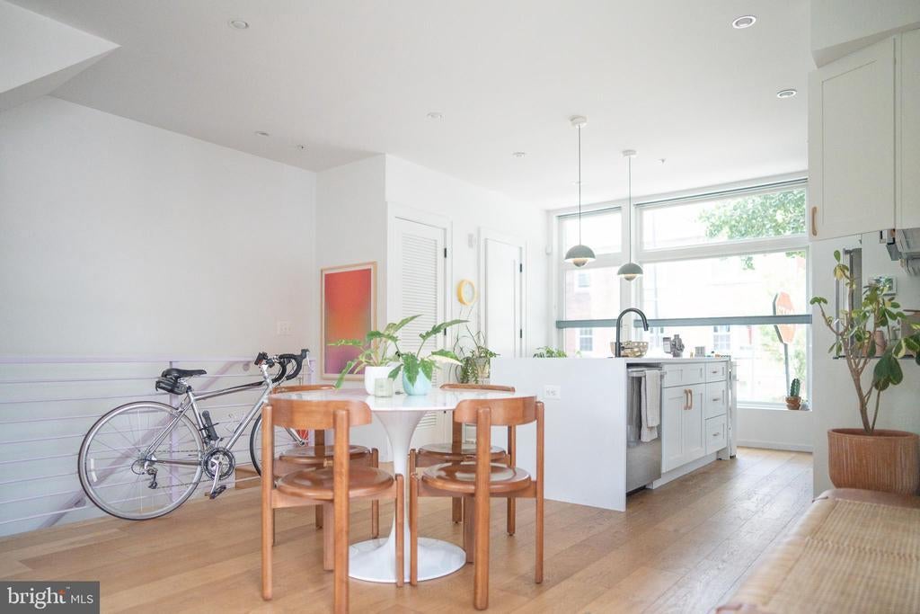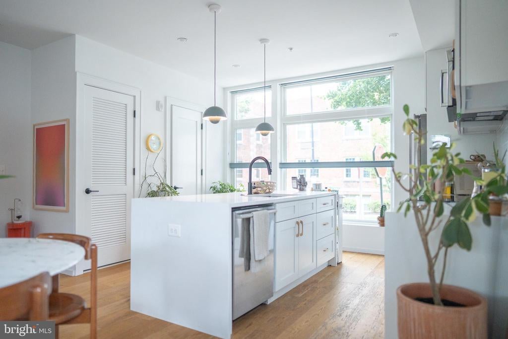 Welcome to this modern, light-filled condo offering an open-concept layout and sleek finishes throughout. The spacious living area is framed by oversized windows that bathe the home in natural light, complemented by warm hardwood floors. The contemporary kitchen features a large island, quartz countertops, stainless steel appliances, and ample cabinetry—perfect for cooking and entertaining. Downstairs, both bedrooms include custom closet systems for optimal storage, while the primary suite boasts an en-suite bath with premium fixtures. The second bedroom is equally inviting and ideal for guests, a home office, or flex space. Additional highlights include in-unit laundry, two stylishly appointed full baths, and a convenient half bath. Located just steps from the vibrant Brookland neighborhood’s shops, restaurants, parks, and Metro, this home combines modern comfort with unbeatable convenience.
