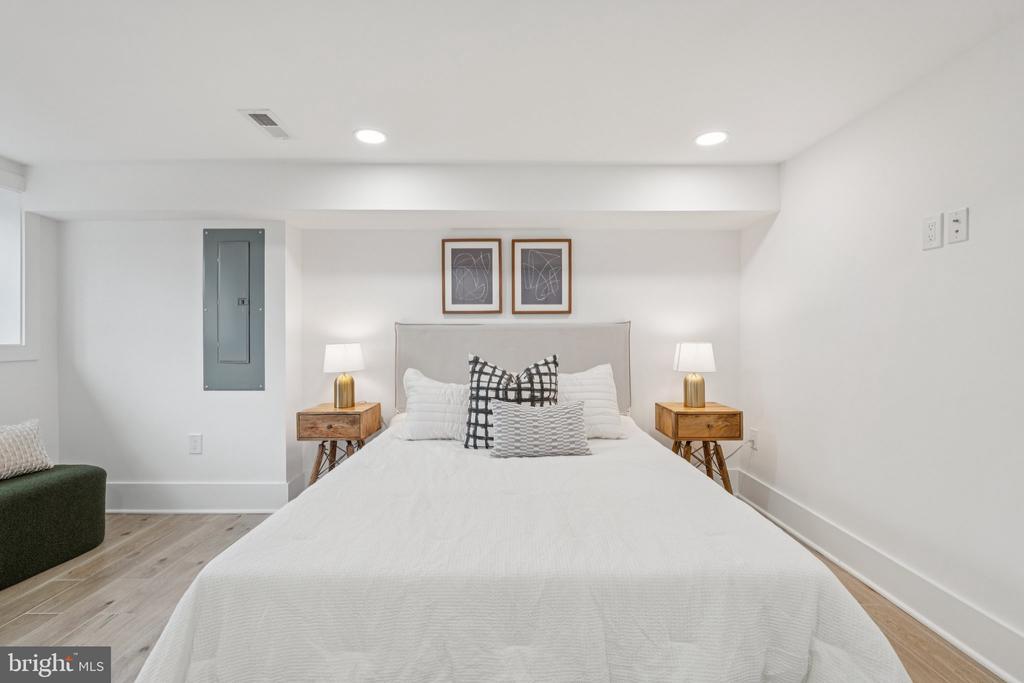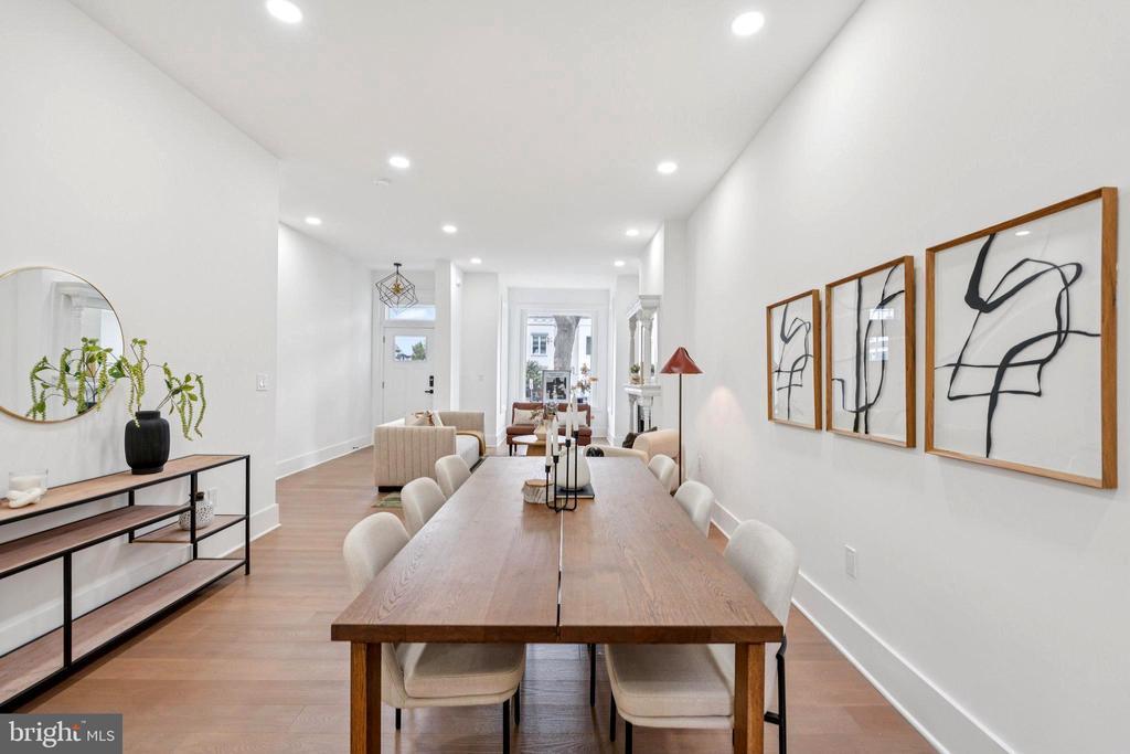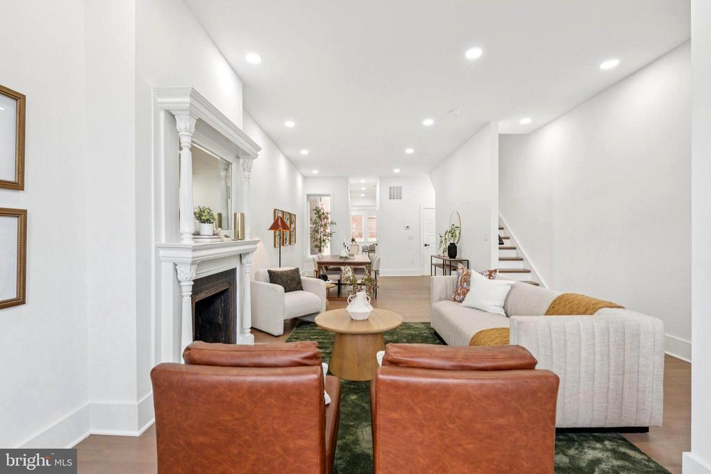 Welcome to 1827 North Capitol! This exquisite 5-bedroom, 3.5-bath row home has been fully renovated and customized with top-of-the-line finishes throughout. Everything is new from plumbing to eletrical! Step inside to discover wide-plank flooring, soaring ceilings, recessed lighting, and oversized original-framed windows that preserve the historic charm of the home while offering modern elegance. The gourmet kitchen features a stunning quartz waterfall island, floor-to-ceiling cabinetry for abundant storage, designer gold fixtures, custom quartz accents, and premium stainless-steel appliances. Upstairs, the primary suite is a true retreat with an elongated walk-in closet, a private balcony, and a spa-inspired en-suite bathroom showcasing a walk-in shower, gold fixtures, and a luxurious standalone soaking tub. Two additional guest bedrooms on this level are generously sized and beautifully finished with ample storage. The lower level offers incredible versatility, including two more bedrooms, a full bath, and a spacious open area perfect for a home office, media room, fitness studio, or flex space to suit your lifestyle.