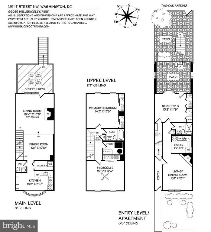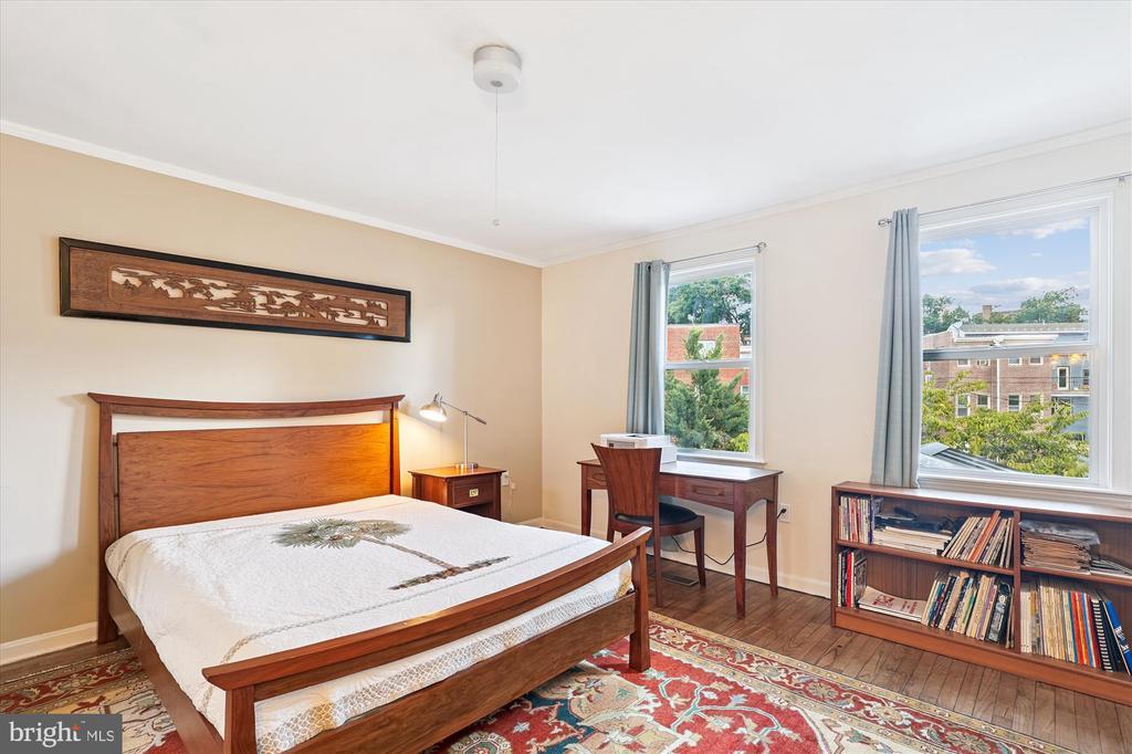 Welcome to this fantastic 2-unit townhome, built by Barrett Linde in 1977, located in Dupont Circle. This property features 2-car parking, a unique and expansive private covered porch, and a spacious fenced-in terrace/patio area. You have the option to rent one unit or use all three levels (DC Certificate of Occupancy included). Enter through the main front door into a foyer that provides access to both residences. The first-floor apartment includes a living/dining room with a fireplace, a full kitchen, a renovated bathroom, and a bedroom with a wall of closets (with stackable washer/dryer), plus a bonus walk-in closet . There is also an exit door leading to the backyard/patio. The upper-level apartment features a large living room with a cozy fireplace, a separate dining room, a powder room, and a walk-in laundry/storage closet with a stackable washer/dryer. The kitchen boasts a bay window and a breakfast area. A French door from the living room leads to the fabulous 12’x16’ covered porch that has skylights and a copper/metal roof. Stairs from the porch lead to the backyard terrace/patio, with a gate providing access to the 2-car parking spaces (#C & #D) accessible from the alley on 19th Street. The third level offers two spacious bedrooms with ample closet space, a full bathroom, and a walk-in storage/utility closet. Additional amenities and upgrades include gorgeous hardwood flooring, recessed lighting throughout, a new roof (2025), two separate HVAC systems (2018), electric water heaters, and Anderson & Pella replacement windows and doors (including bay windows in the upper-level kitchen and lower-level bedroom installed in 2019). This property is ideally located on a quiet one-way street, steps away from the shops, restaurants, and nightlife of Dupont Circle and Adams Morgan, as well as the Dupont Circle Metro. Don't miss out on this spectacular opportunity!