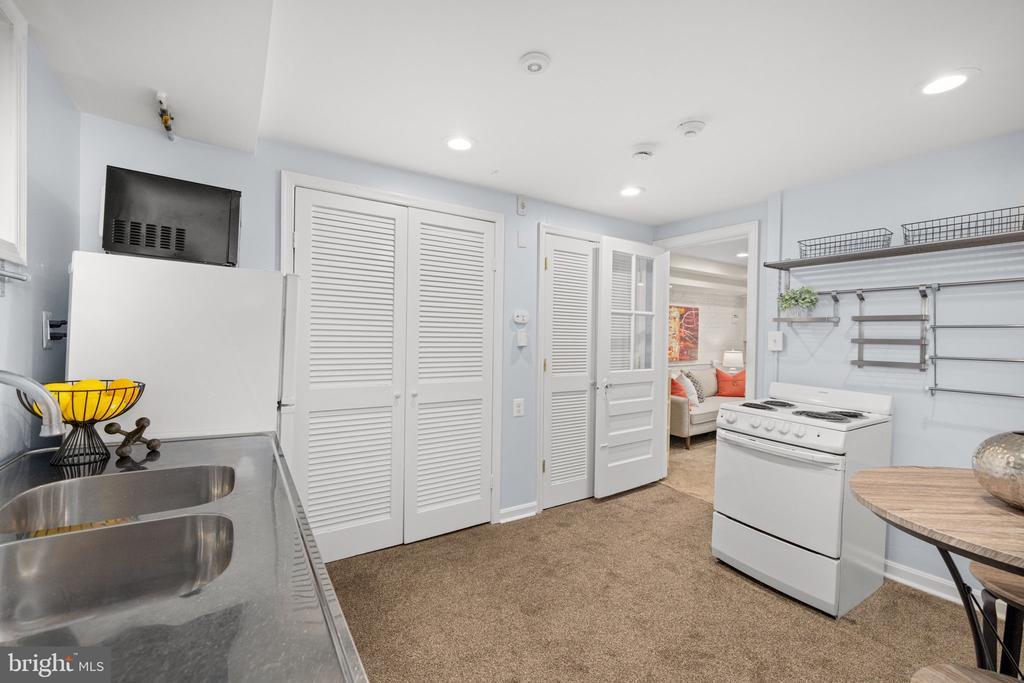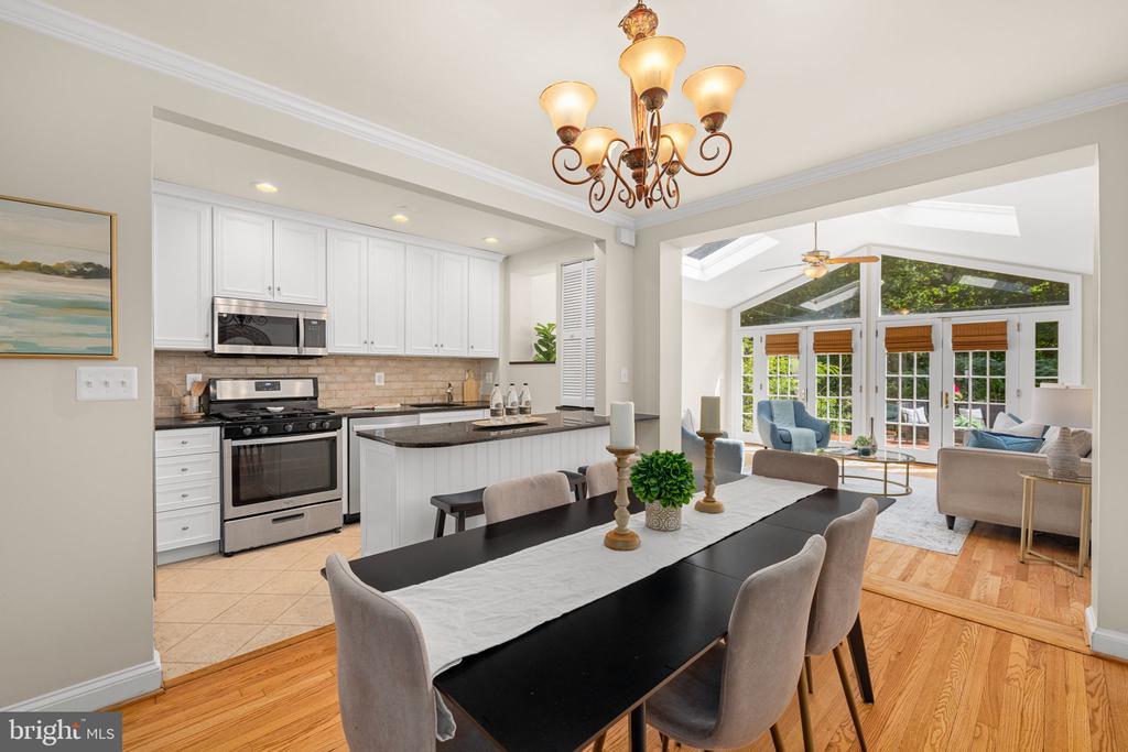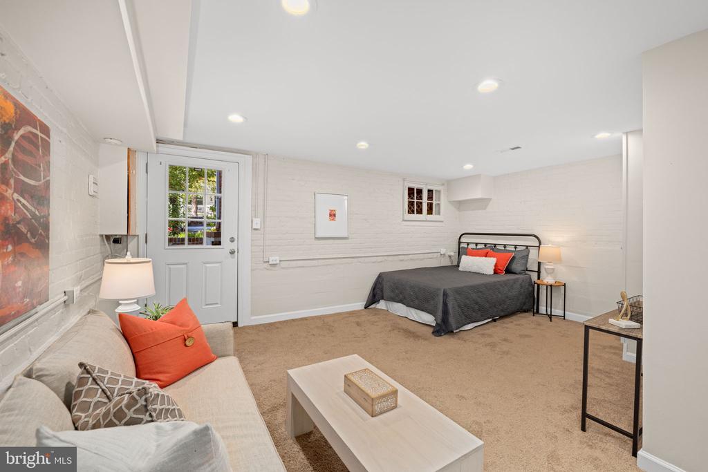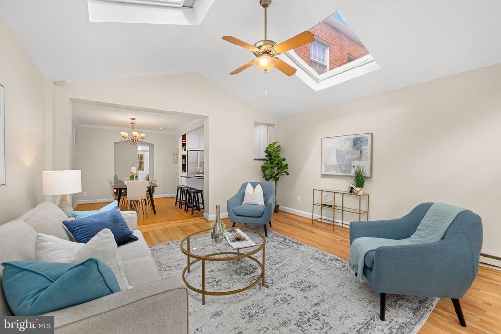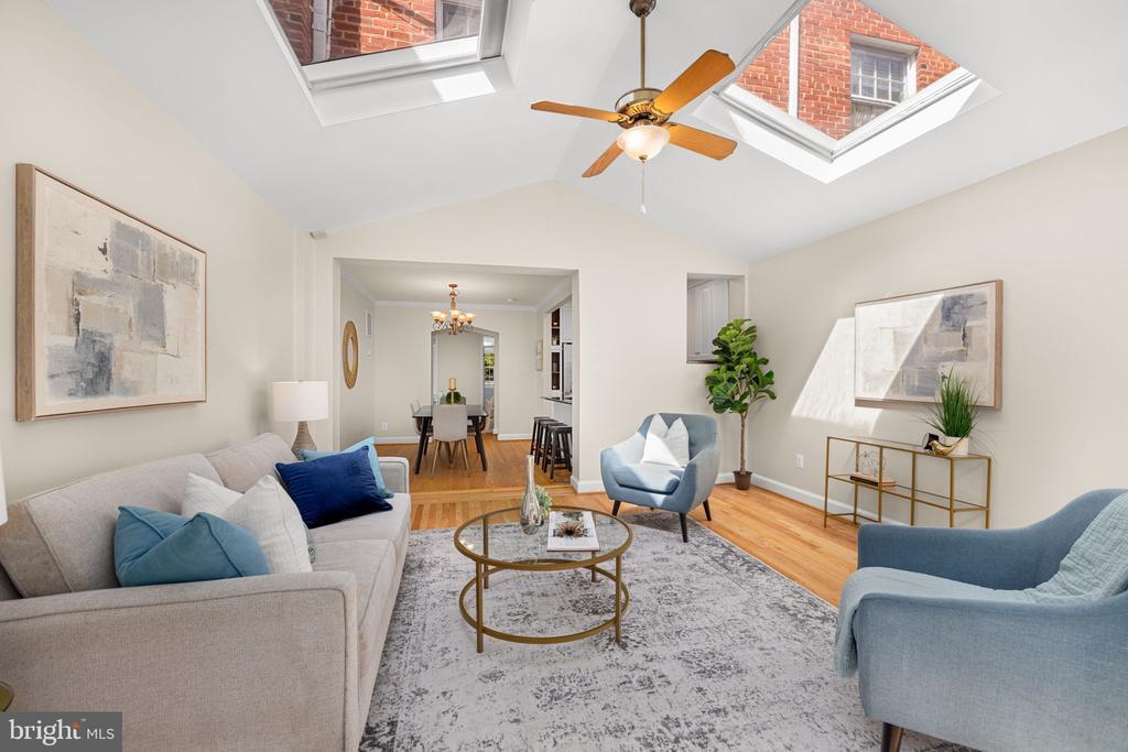 On a picturesque block of W Street in Glover Park, this inviting four-bedroom home offers exceptional style and value. The main level offers a spacious living room that opens into the dining room and modern kitchen with breakfast bar. The stunning family room with cathedral ceilings, skylights, and walls of windows, provides easy access to the private deck, kitchen and dining room. Upstairs are three bedrooms and a shared full bathroom, all with wood floors. The finished basement suite with private access, boasts a second kitchen and additional living space. Practical amenities include laundry in both the lower level and on the landing to the bedroom level, plus paved off-street parking for two cars, freshly painted and newly refinished floors. <br> <br> Living in Glover Park places you near Whitehaven Park and Stoddert Recreation Center, and the bustling Wisconsin Avenue shopping and dining corridor, with proximity to major transportation options that make commuting easy. Residents enjoy a strong neighborhood spirit, as well as easy access to Trader Joe's, Whole Foods and Safeway, a variety of independent shops, and the peaceful trails and green spaces around the nearby C&O Canal and reservoir.