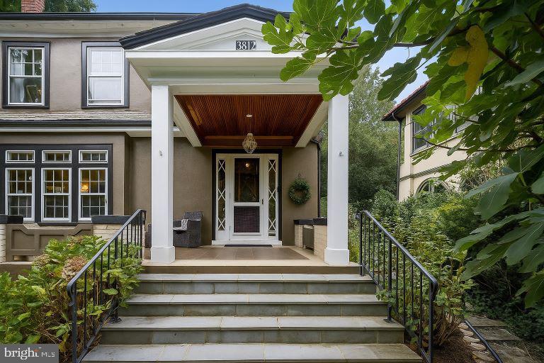 3812 Military Road NW — Grand Stucco Home with Wrap-Around Porch Perched above the street on an elevated lot, this gracious stucco residence pairs classic charm with modern comfort. A stately wrap-around front porch welcomes you to spacious, light-filled rooms with high ceilings and timeless details. On the main level, a renovated chef’s kitchen—complete with ample cabinetry, a wet bar and a large island with seating—opens directly to the family room and mudroom for effortless everyday living and entertaining. A generous living room with custom built-ins and a wood-burning fireplace offers the perfect spot to unwind, while a formal dining room and convenient powder room complete the floor. Upstairs features four generous bedrooms and two beautifully renovated full baths. The finished attic level serves as a flexible 5th bedroom/primary suite with its own spa like 3rd full bath and abundant closet space. The lower level adds a recreation room, dedicated laundry, and a 4th full bath—ideal for play, fitness, movie time or visitors. Outdoors, enjoy 2 private patios, plus off-street parking and a garage. With easy access to public transit and moments to neighborhood restaurants and shops, this home delivers both ease and elegance in a prime, walkable location.
