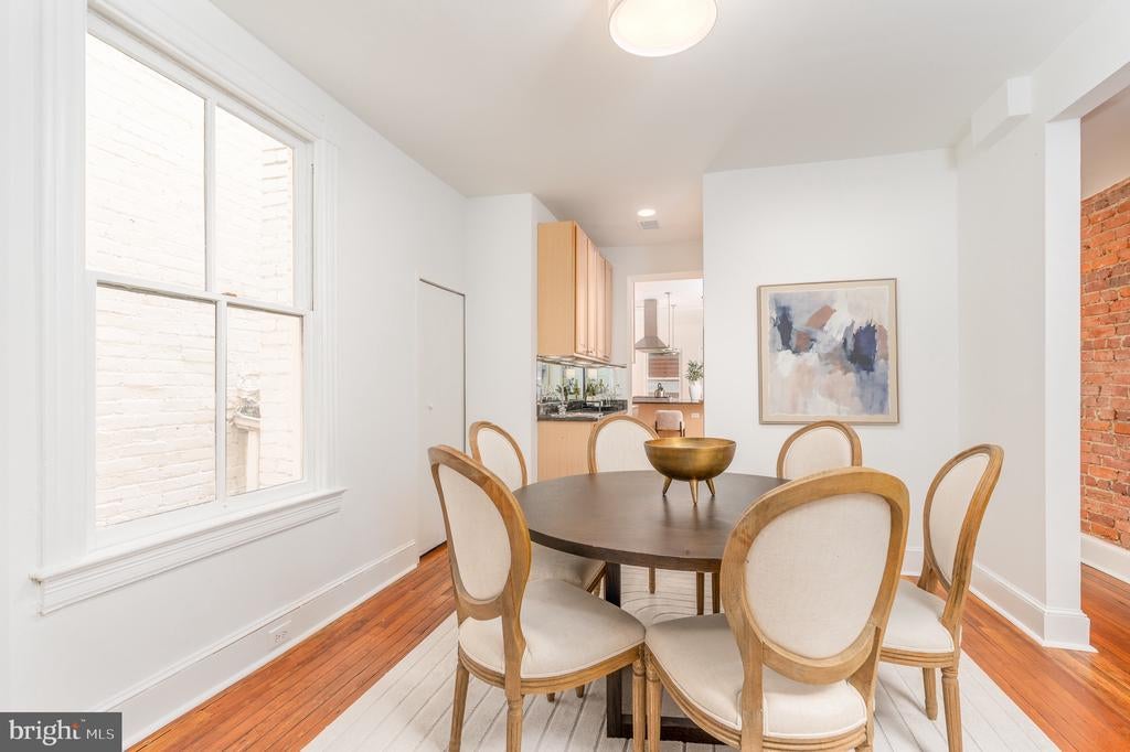 Presenting an exceptionally maintained Federal-style townhome in the heart of Georgetown, offering 6 bedrooms, 5.5 bathrooms, and more than 3,680 square feet of finished living space. Elevated from the street with views of the Ellington School, the home welcomes you with soaring ceilings, gorgeous hardwood flooring, and timeless architectural details that blend seamlessly with modern conveniences. The main level features a gracious foyer, an expansive living room, formal dining room, wet bar, and a large eat-in kitchen with center island and updated appliances, plus a convenient powder room. Upstairs, four spacious bedrooms include the primary suite with an ensuite bath and sauna, complemented by two additional full baths, a laundry closet, and ample storage throughout. The lower level, with its own Certificate of Occupancy and private entrance, offers a full kitchen, living room, two sizable bedrooms, two baths, and laundry - perfect for guests, extended family, or rental income. A wine cellar completes the package. Out back, a tidy private patio doubles as parking, while a separate one-car garage (offered for an additional $95,000) provides rare Georgetown convenience. Energy-efficient solar panels help keep utility costs low, and all of this is just steps from dining, shopping, nightlife, and parks. This remarkable home blends classic architecture with modern comfort - and is ready for you to pen its next chapter.