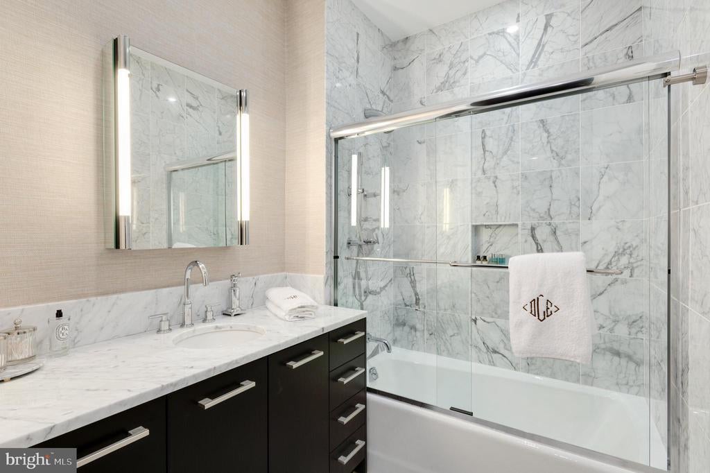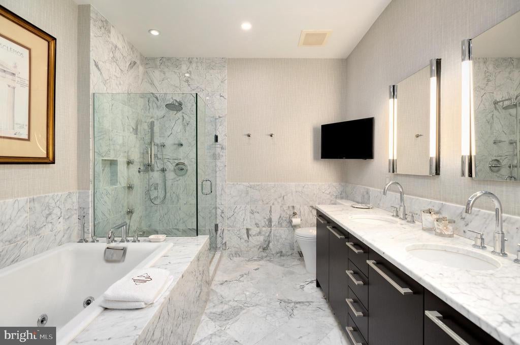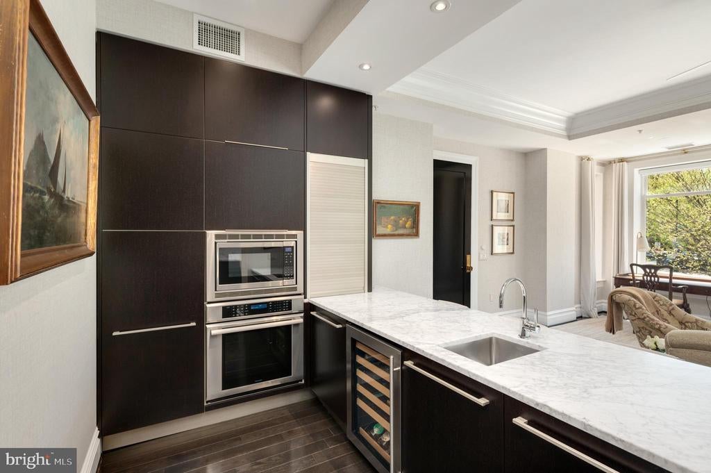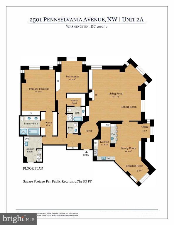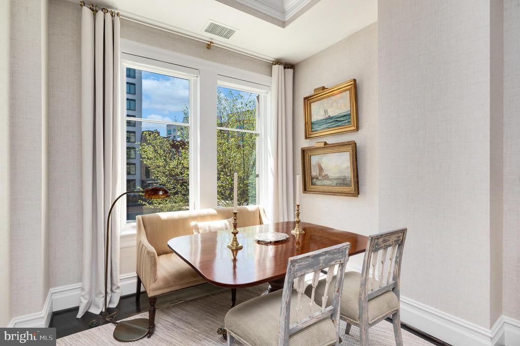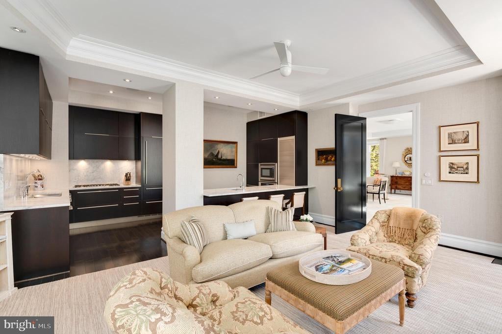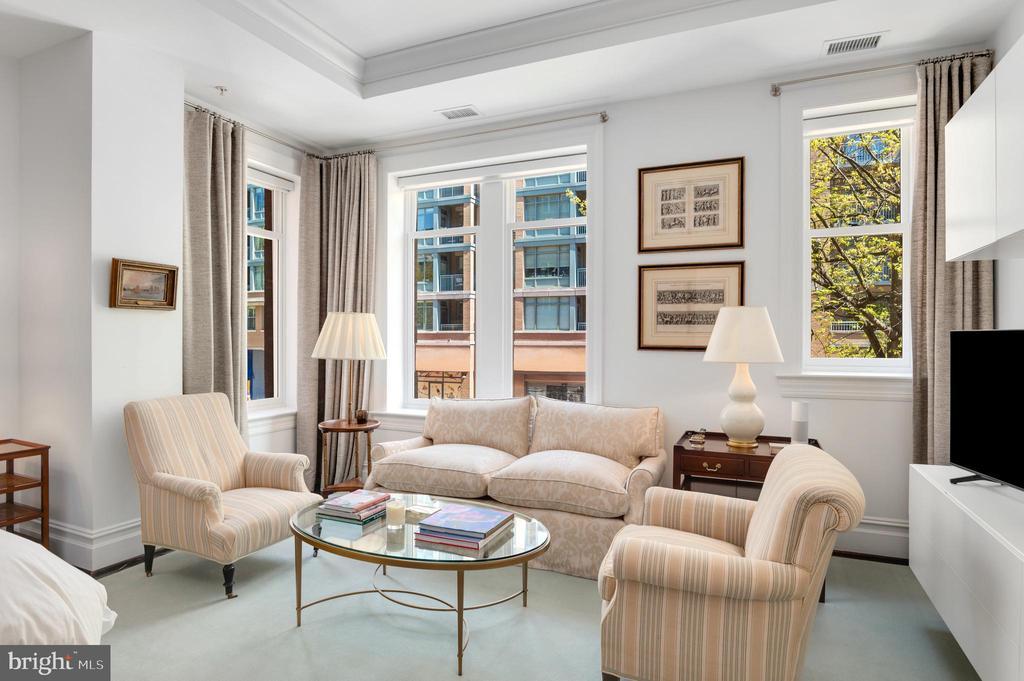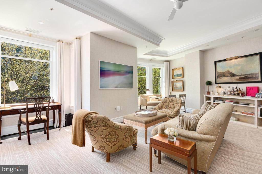 Nestled at the intersection of Georgetown and the vibrant West End neighborhood of Washington, D.C., 2501 Pennsylvania Ave NW #2A epitomizes sophisticated luxury paired with city conveniences. This expansive residence offers over 2,700 square feet of exquisite living space, featuring 2 Bedrooms and 2.5 Bathrooms. The unit is bathed in natural light and showcases elegant finishes alongside designer fixtures. Designed for both entertaining and comfortable daily living, the open floor plan enhances functionality without sacrificing opulence. Upon entry, a circular foyer ushers you into the expansive living room, highlighted by 10-foot tray ceilings, an electric fireplace, and abundant windows. The dining room flows effortlessly into the gourmet kitchen, which is a chef's dream, equipped with marble countertops, top-tier appliances, and custom cabinetry. Adjacent to the kitchen are the family and breakfast rooms, as well as a sun-drenched office space, making everyday living a breeze. The private suites are situated in the west wing, offering lavish comfort. The spacious primary suite features 10-foot tray ceilings, a built-in media console, a generous dressing area, and a spa-like ensuite bathroom adorned in marble with a dual vanity, soaking tub, and walk-in shower. The second ensuite bedroom is equally impressive, with high tray ceilings, built-in storage, a dressing area, and a marble bathroom with a tub shower. A sizable laundry room with a service entrance completes this exceptional offering. Situated in a boutique condo building established in 2009, residents enjoy unparalleled security and convenience, including a 24/7 concierge service, two underground parking spaces, and a large storage room. The building's prime location offers incredible access to local grocers, esteemed dining venues, and premier retail destinations in Georgetown, Dupont Circle, and Foggy Bottom.
