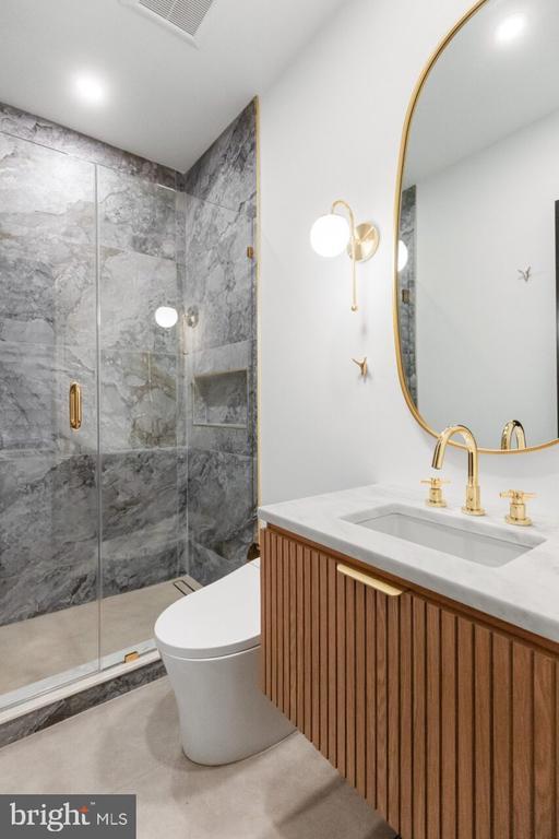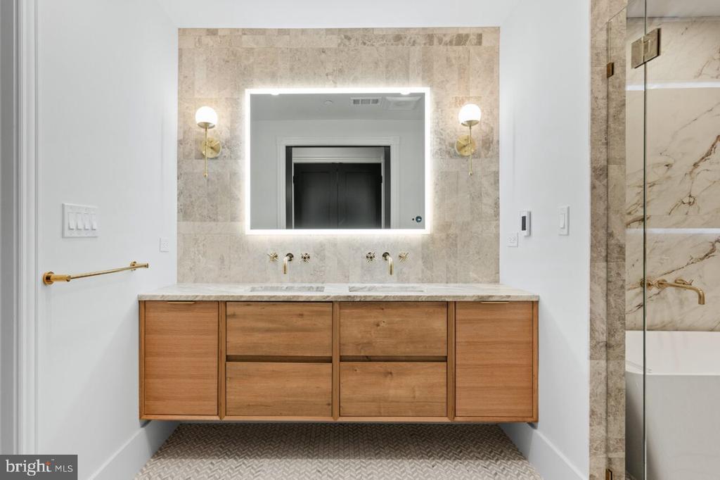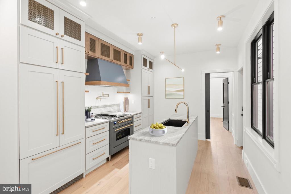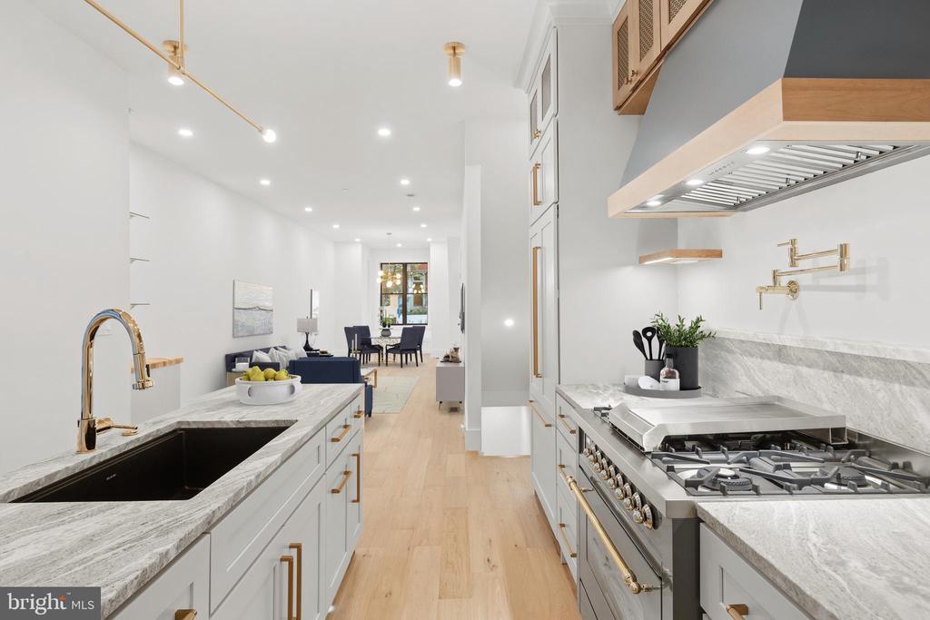 Welcome to The Chelsea at 441 Q Street NW! A stunning 3BR/3BA two-level residence offer-ing approximately 1,750 SF of luxury living in the heart of the city. This brand-new home blends timeless architectural charm with high-end modern finishes and smart design through-out. Step inside to soaring ceilings, Pella solid wood windows, and custom pocket doors. The expansive living space flows into a chef’s kitchen featuring an Ilve Italian range, Fisher & Paykel paneled refrigerator, Bosch paneled dishwasher, custom painted cabinetry with automated waste/recycling cabinet, wall-mounted pot filler, Signature Hardware faucets, and natural quartz countertops. A dedicated bar includes a chevron wood top, 36-bottle custom paneled beverage fridge, and glass shelves with vintage brass hardware. Each bathroom features solid wood vanities with natural quartz counters, Phylrich unlacquered brass faucets (living finish), and Anzzi bidet toilets. The spa-like primary bath boasts a pro-grammable heated floor, triple shower heads, LED mirror, built-in laundry hamper in custom cabinetry, chevron wood floating shelves, and a private water closet. Additional highlights include lighting by Illuminate Vintage and Boho Creations in unlac-quered brass, and top-tier craftsmanship throughout. Located at the crossroads of Shaw and Bloomingdale and a short distance from Logan Circle and Mount Vernon Triangle, this residence offers unparalleled access to restaurants, shops, and the best of city living in this boutique 2-residence building with low monthly fees. A rare offer-ing, don’t miss it! Secure EV Parking space offered for 2 years with direct access to the home!