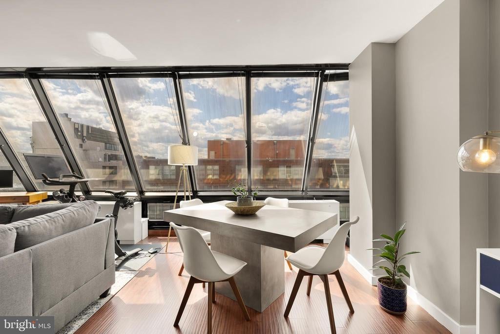 Welcome to 1245 13th St NW #1012 - Sun soaked penthouse level one bedroom one bathroom residence featuring west facing floor-to-ceiling slanted windows. Meticulously maintained turn-key property with an open concept layout that delivers just the right amount of space for living, working and entertaining. Rooftop deck offers breathtaking DC views and courtyard for a quiet reprieve. Walk to everything Logan Circle has to offer - restaurants, nightlife, and transit. In-unit washer/dryer plus dedicated underground and coveted parking space included with elevator in the building. ALL utilities and ameneties included in the condominium fee. What you'll love: 660 SF of living space | Open concept living | Floor to ceiling windows | ALL utilities and amenities - elevator, rooftop, courtyard - included in condo fee | Separately deeded, assigned garage parking What's Nearby: .2 Mi - Logan Circle | .2 Mi - Streets Market | .4 Mi - Whole Foods, CVS, Call Your Mother Deli, Van Leeuwen Ice Cream, Studio Theatre, Le Diplomate | .5 Mi - Vida Fitness | .5 Mi - McPherson Square Metro Station (Orange, Blue, Silver Line) | .6 Mi - Shaw / Howard University Metro Station (Green Line) | .8 Mi - Trader Joes | 1 Mi - Downtown DC
