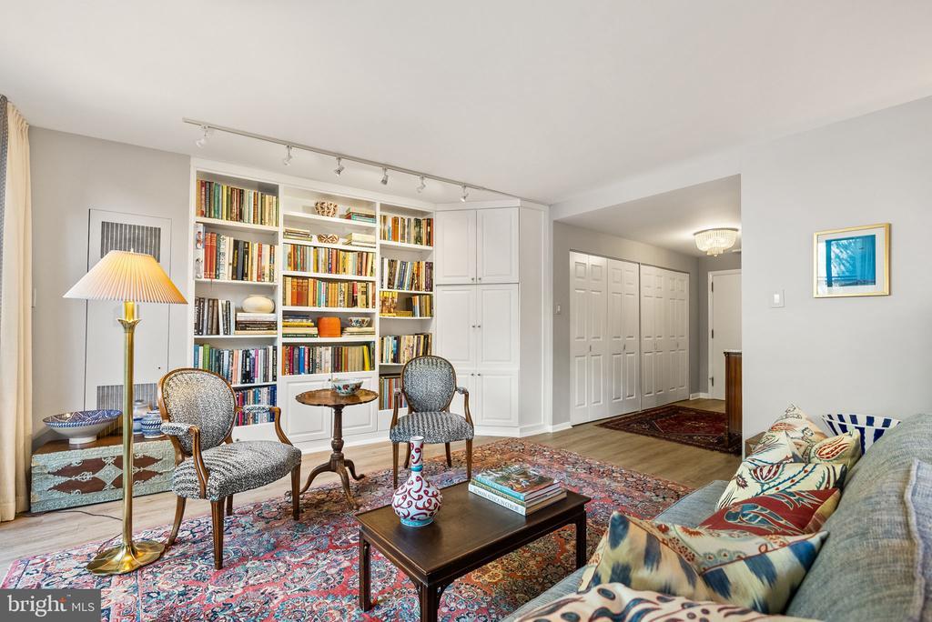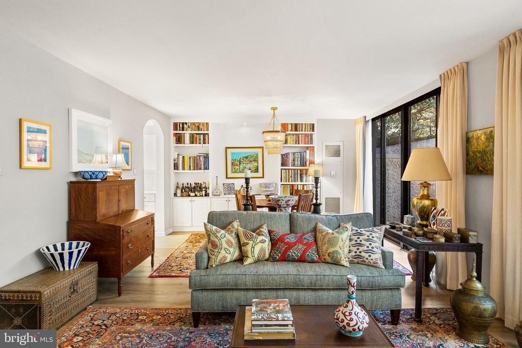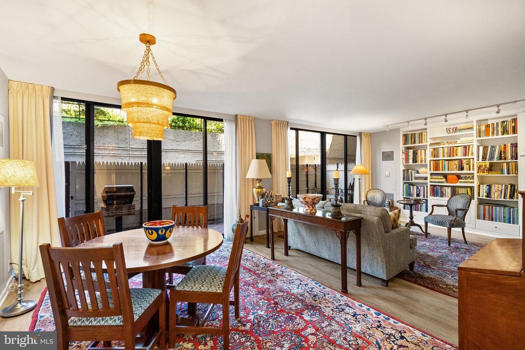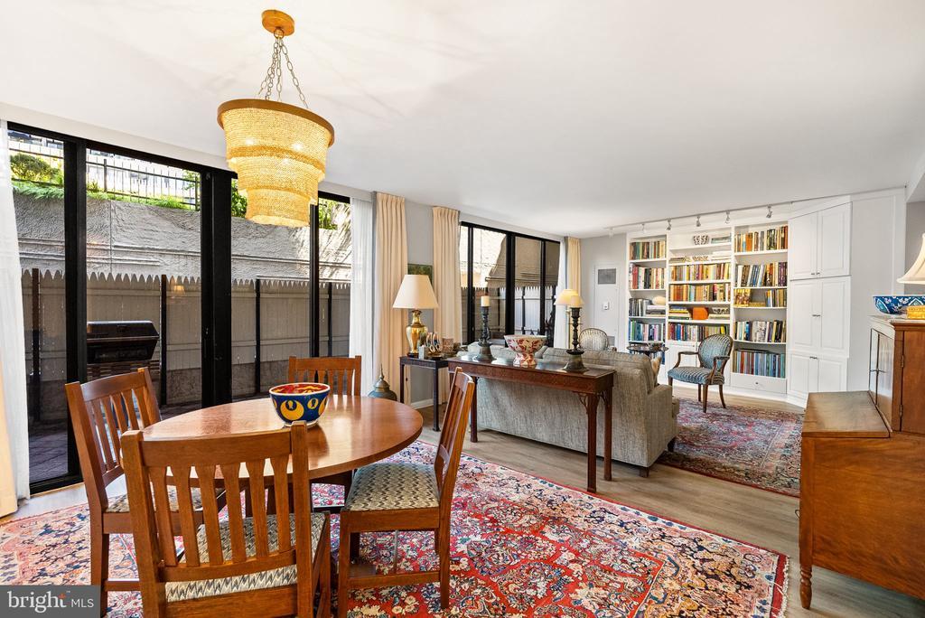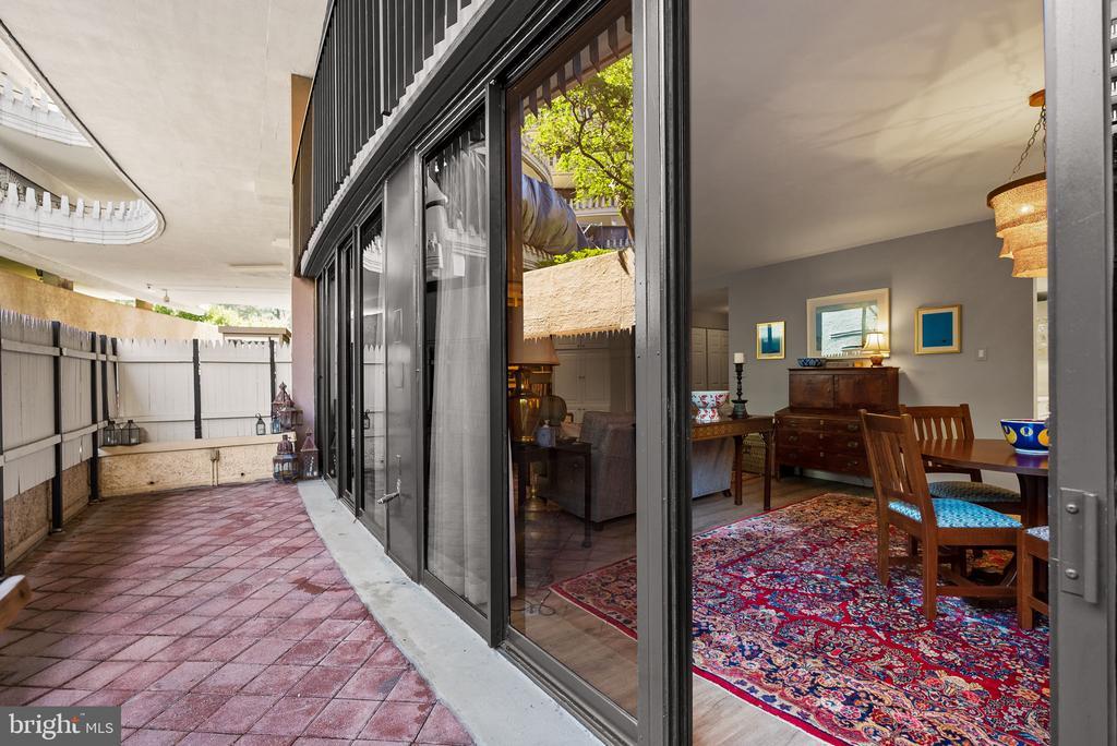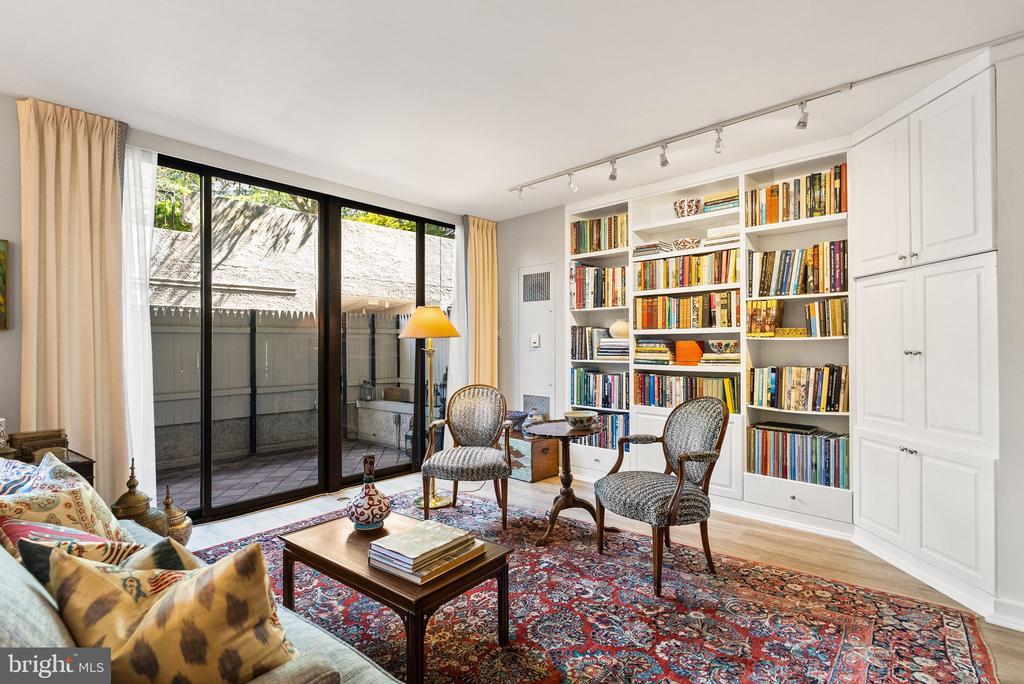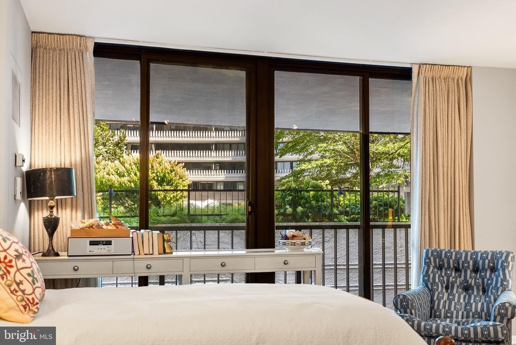Have the Best of Both Worlds! Beautiful 1697 sq ft interior space- two bedrooms & den, 2.5 baths "townhouse-style" floor plan. Dine al fresco on your private patio/terrace with gas grill, convenient second entrance, and built-in planter. Spacious living room and dining area with entry onto the terrace. The interior is a booklover's dream with beautiful custom buil tins for books or display art. Floor-to-ceiling windows throughout . Juliet balconies on the second level. Bright kitchen with quartz countertops, extra large undermount sink, Kohler faucet, fine cabinetry with designer hardware, pantry storage and top appliances. Updated baths with Kohler fixtures. Master bath a has large vanity, with soaking tub and separate walk-in shower with glass enclosure. Tiled surround second full bath with large walk in shower and features a laundry space with storage/ shelving area, washer/dryer in laundry space Fantastic open den area on the upper level: approx. 400+ square foot work area with built-in shelving Superior custom closet space throughout, including a large below-stairs storage space, plus additional storage room. Convenient ground-level entry with no waiting for an elevator. The gate entrance from your terrace making it easy to bring in groceries, or take a walk! One underground garage space included. Fee includes property taxes, utilities, maintenance of HVAC, basic cable, internet, and parking. Watergate South amenities include 24-hour front desk & doorman service, outdoor saltwater pool & grill, newly renovated fitness center, newly renovated community room, beautifully landscaped gardens, roof terrace, dog spa room, plus on-site shops & restaurants. Walk to Foggy Bottom Metro, Kennedy Center, Whole Foods, and Georgetown Waterfront. High walk score near shopping, restaurants, Watergate Hotel, and many more conveniences.