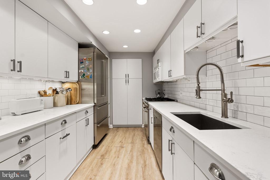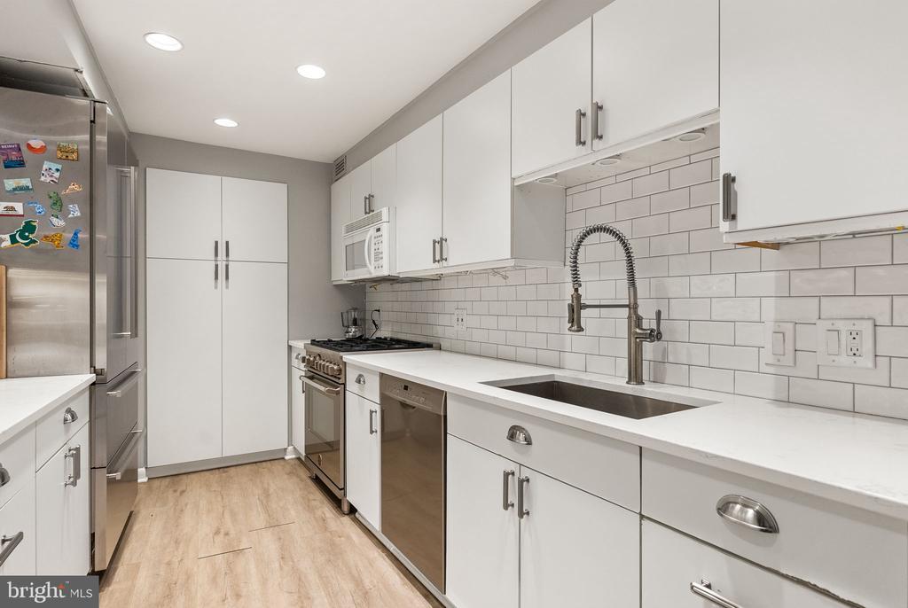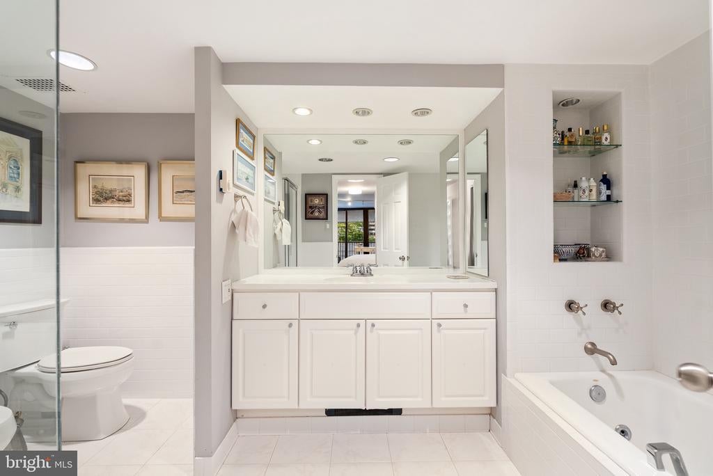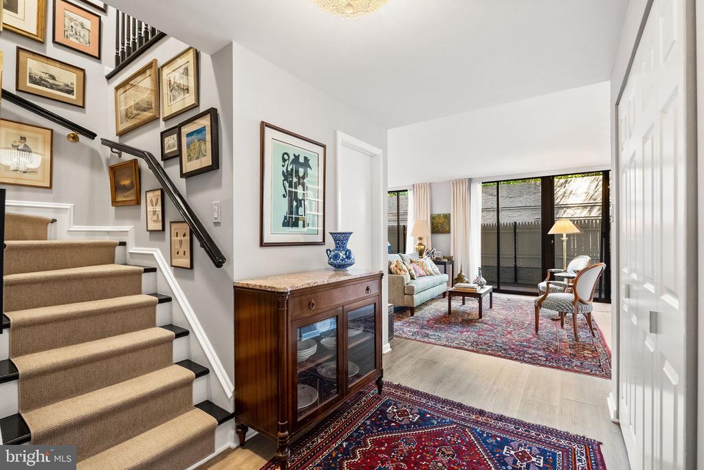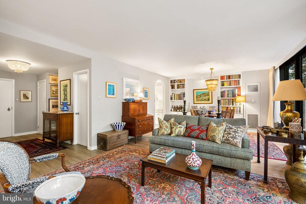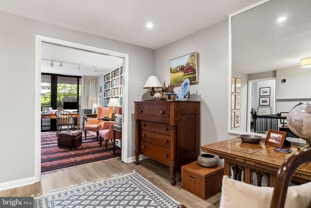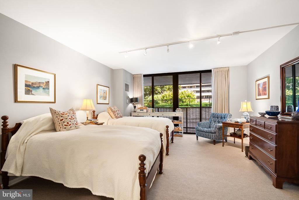 Have the Best of Both Worlds! Beautiful 1697 sq ft interior space- two bedrooms & den, 2.5 baths "townhouse-style" floor plan. Dine al fresco on your private patio/terrace with gas grill, convenient second entrance, and built-in planter. Spacious living room and dining area with entry onto the terrace. The interior is a booklover's dream with beautiful custom buil tins for books or display art. Floor-to-ceiling windows throughout . Juliet balconies on the second level. Bright kitchen with quartz countertops, extra large undermount sink, Kohler faucet, fine cabinetry with designer hardware, pantry storage and top appliances. Updated baths with Kohler fixtures. Master bath a has large vanity, with soaking tub and separate walk-in shower with glass enclosure. Tiled surround second full bath with large walk in shower and features a laundry space with storage/ shelving area, washer/dryer in laundry space Fantastic open den area on the upper level: approx. 400+ square foot work area with built-in shelving Superior custom closet space throughout, including a large below-stairs storage space, plus additional storage room. Convenient ground-level entry with no waiting for an elevator. The gate entrance from your terrace making it easy to bring in groceries, or take a walk! One underground garage space included. Fee includes property taxes, utilities, maintenance of HVAC, basic cable, internet, and parking. Watergate South amenities include 24-hour front desk & doorman service, outdoor saltwater pool & grill, newly renovated fitness center, newly renovated community room, beautifully landscaped gardens, roof terrace, dog spa room, plus on-site shops & restaurants. Walk to Foggy Bottom Metro, Kennedy Center, Whole Foods, and Georgetown Waterfront. High walk score near shopping, restaurants, Watergate Hotel, and many more conveniences.